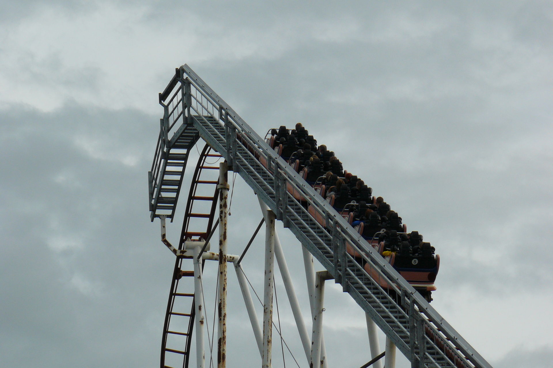 First Drop noch fahrbar, wird einem nach dem ersten Schlag kurz darauf klar, dass es schmerzhafte Minuten bis in die Schlussbremse werden. Mein Fazit der Bahn: Sehr schmerzhaft. Wollte ich meinem Rücken trotz Wristband nicht noch einmal antun.
