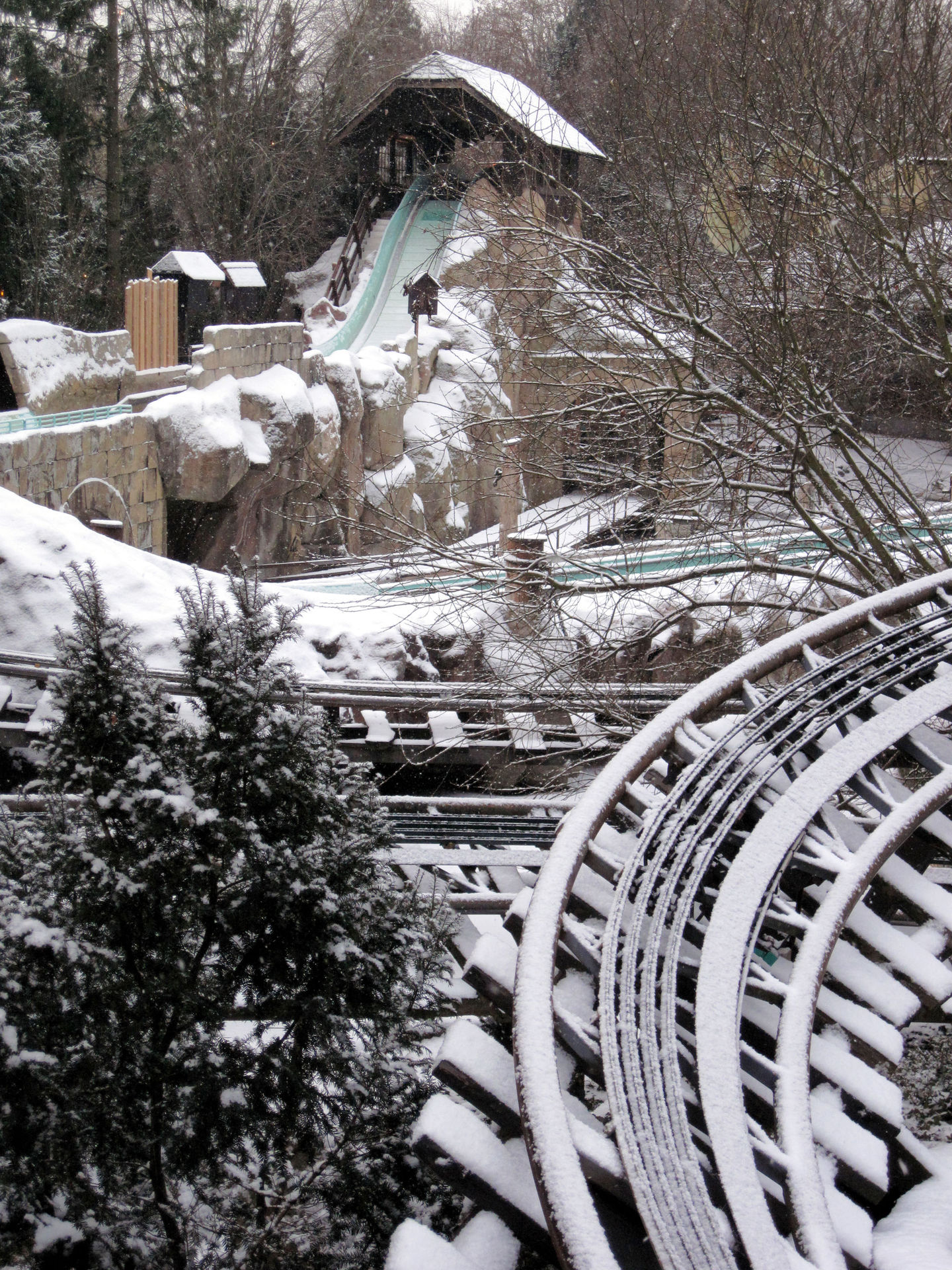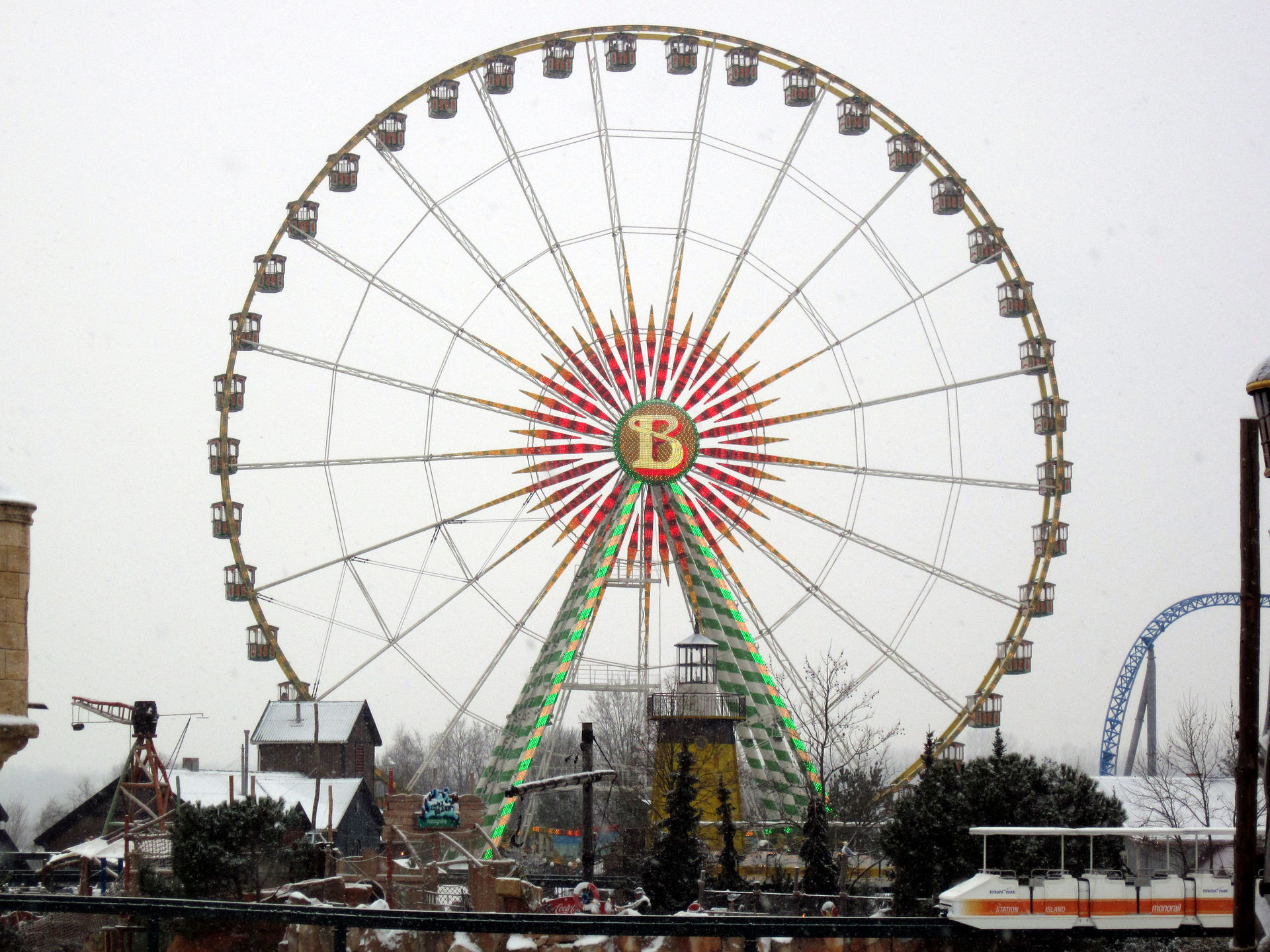 Der Park war, wohl wegen dem ungemütlichen Wetter, sehr leer. Bei den Attraktionen die geöffnet waren konnte man fast immer direkt einsteigen. Leider waren das natürlich nicht besonders viele. Das meiste war wegen dem ganzen Schnee geschlossen. Trotzdem lohnte sich der Besuch, und wenn es nur wegen der Stimmung war. Zusätzlich gab es ja auch noch das Bellevue Rad welches man sich nach einer Fahrt am liebsten für immer im EP wünschen möchte...