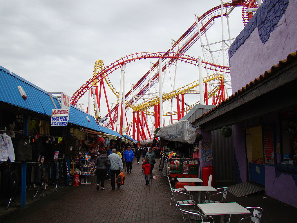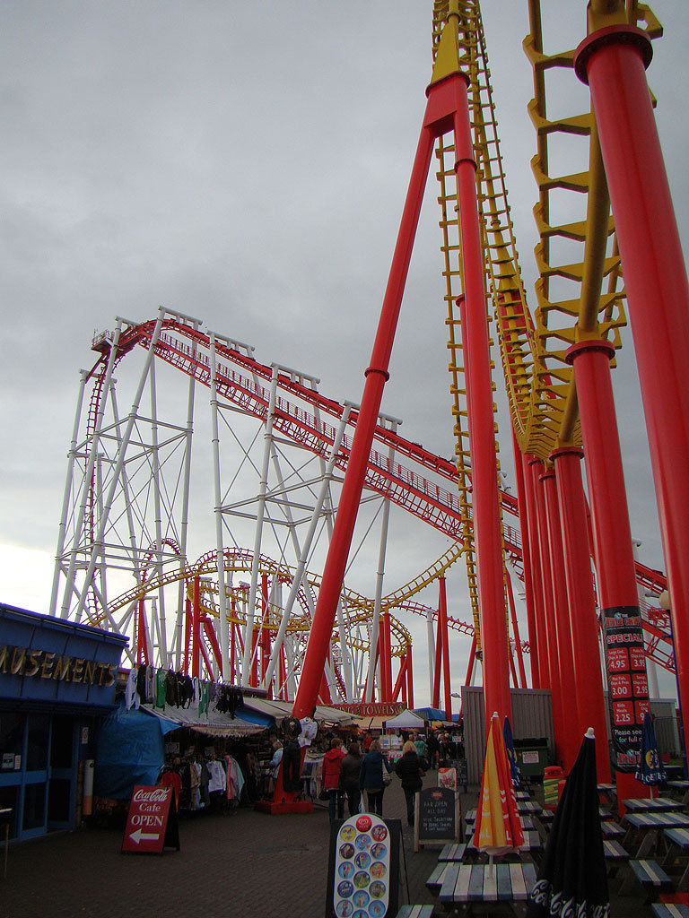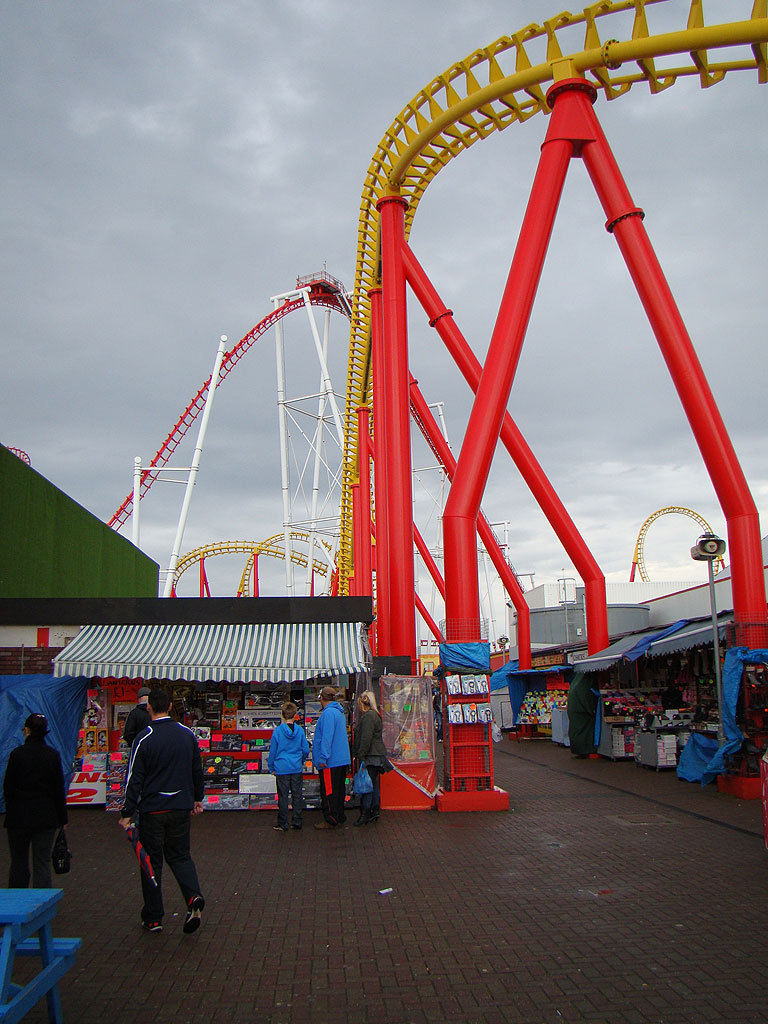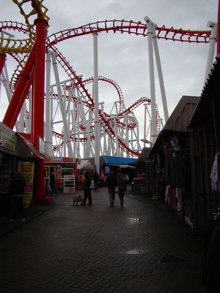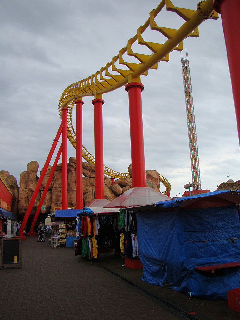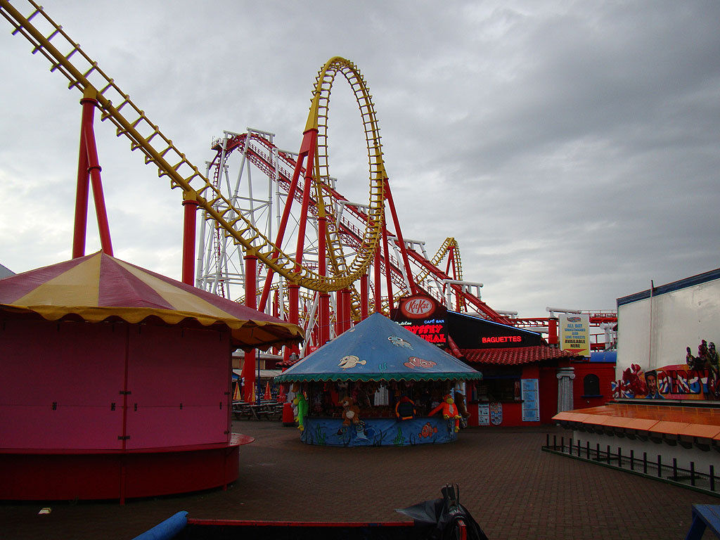Pünktlich um 12Uhr öffneten dann die Tore vom Pleasure Beach und ich habe mir ein Wristband gekauft und die Coaster, Riesenrad und Darkride abgeklappert. Eigentlich hätte ich gerne auf Jubilee Odyssey in Fantasy Island meinen 400. Count gefeiert, aber das ging hald so nicht, so musste Rock'n Roller dafür herhalten. Und ich muss sagen, das Teil hatte den totalen Drehwurm und es war doch noch ein würdiger 400. Bei Queen Bee fehlte leider nicht nur ein Stück Schiene sondern auch gleich der ganze Zug. Schade, ich wäre gerne mal einen Inverted Big Apple gefahren.