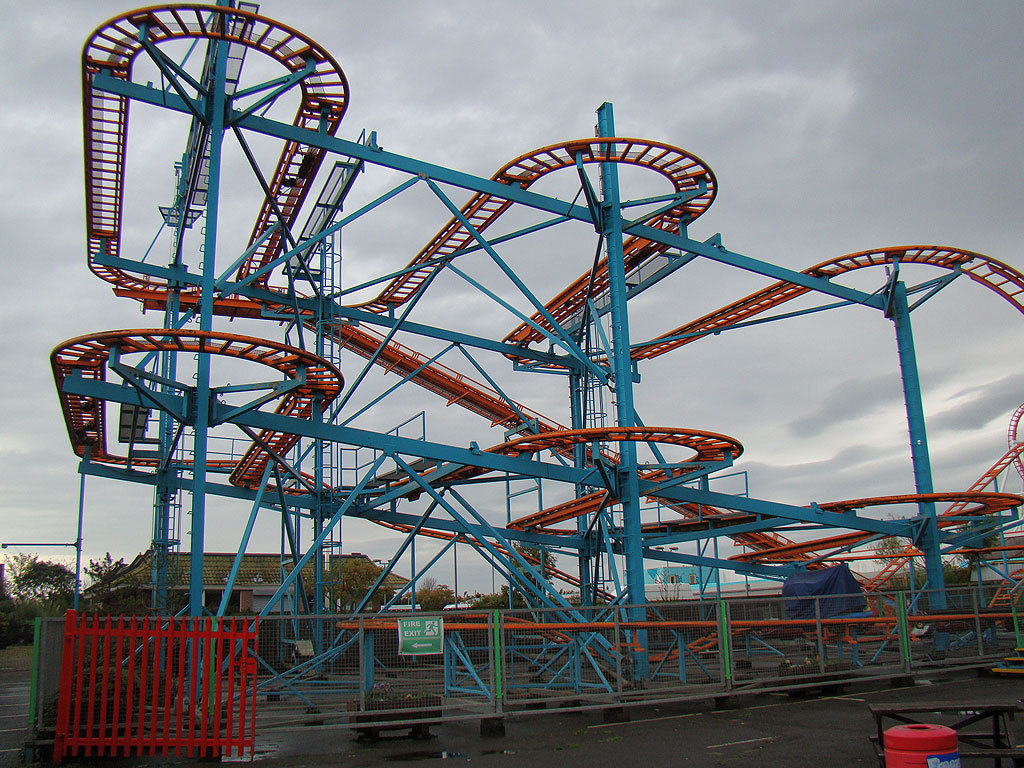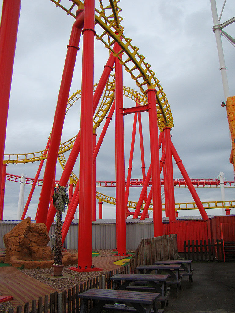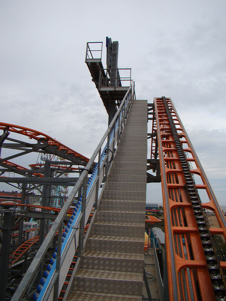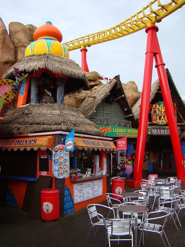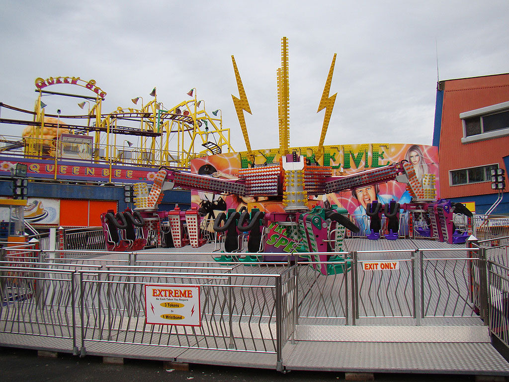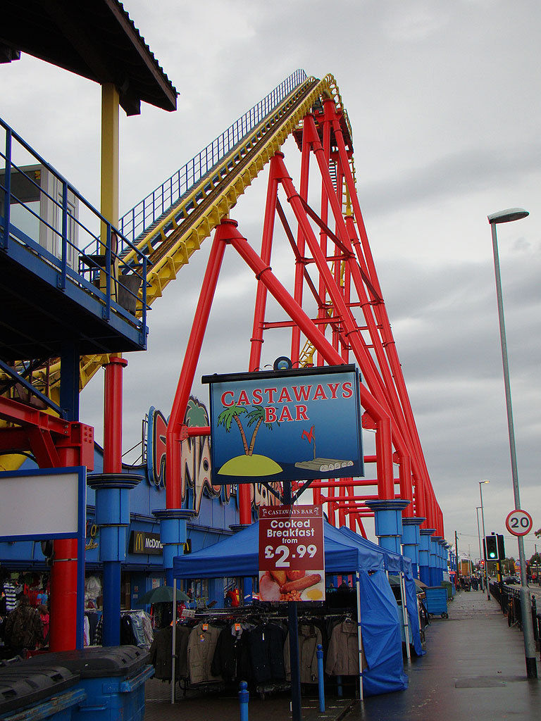 Pünktlich um 12Uhr öffneten dann die Tore vom Pleasure Beach und ich habe mir ein Wristband gekauft und die Coaster, Riesenrad und Darkride abgeklappert. Eigentlich hätte ich gerne auf Jubilee Odyssey in Fantasy Island meinen 400. Count gefeiert, aber das ging hald so nicht, so musste Rock'n Roller dafür herhalten. Und ich muss sagen, das Teil hatte den totalen Drehwurm und es war doch noch ein würdiger 400. Bei Queen Bee fehlte leider nicht nur ein Stück Schiene sondern auch gleich der ganze Zug. Schade, ich wäre gerne mal einen Inverted Big Apple gefahren.