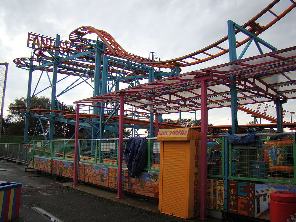fantasyisland.co.uk . Die unzähligen Verkaufsstände haben um 10Uhr geöffnet, die Rides sollten dies allerdings erst um 12Uhr tun. Da ich kurz nach 10Uhr schon da war, habe ich die Zeit genutzt, um mir erst mal einen Überblick zu verschaffen. Gottseidank regnete es nicht mehr, so war ich guter Dinge, dass die Rides auch alle öffnen würden. Nur schon der Anblick der beiden grossen Achterbahnen ist fantastisch, die müssen einfach gut sein.