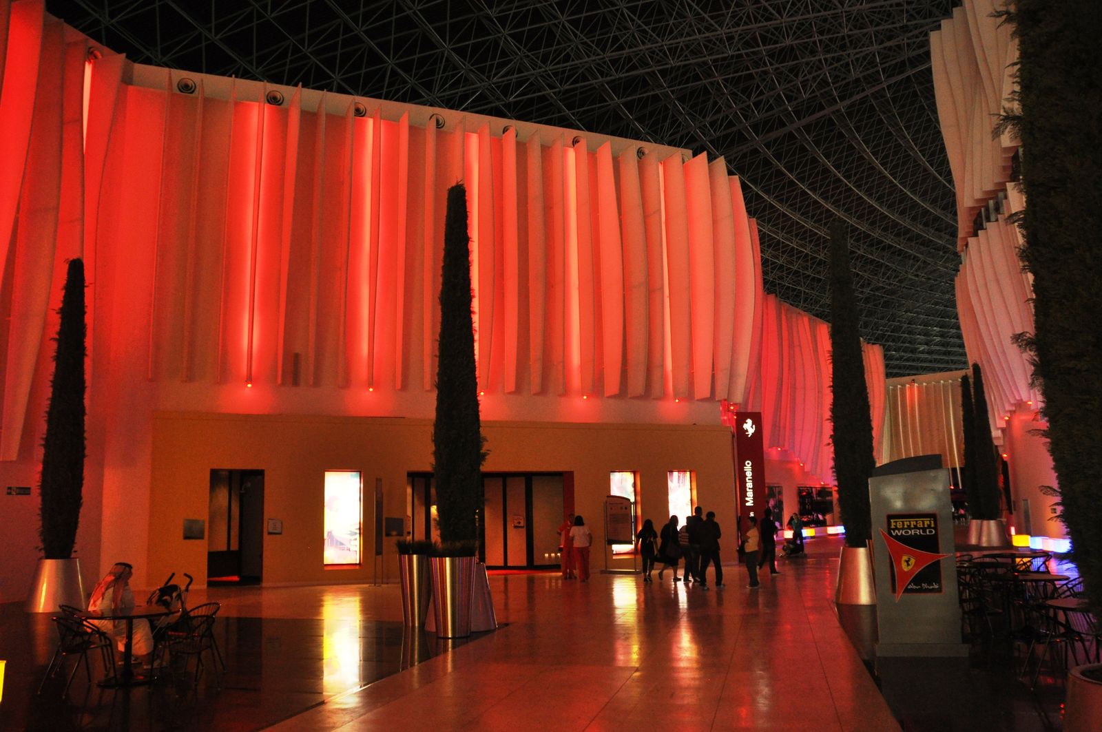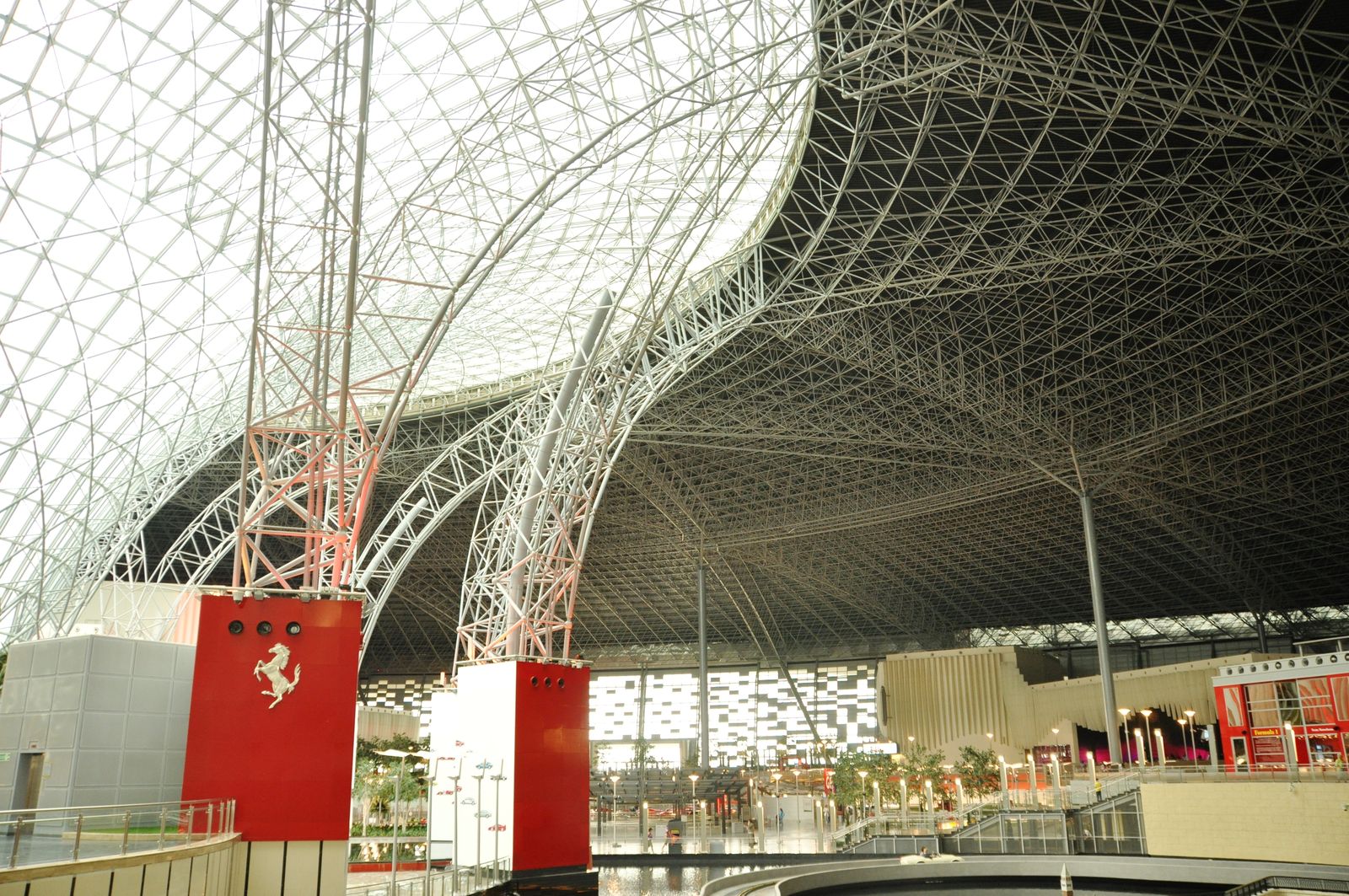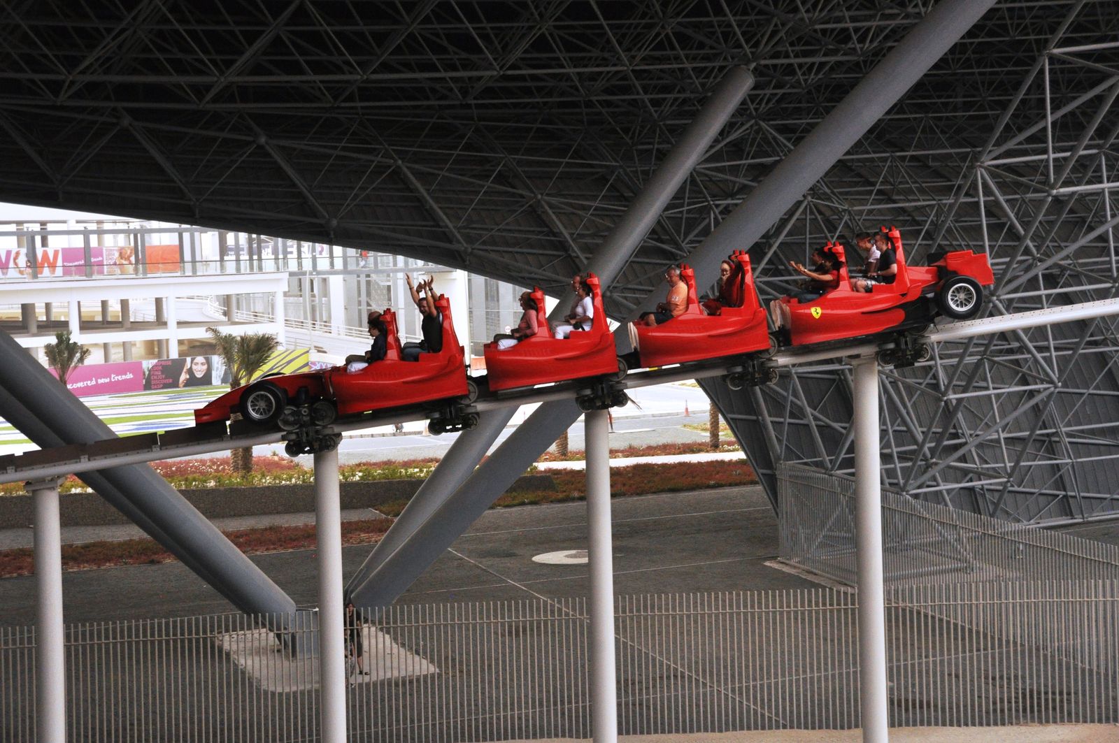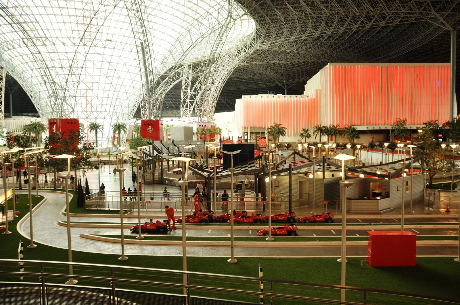 Die Ferrari World ist zum grössten Teil überdacht und stellt den grössten Indoor-Freizeitpark dar. Das riesige rote Dach, welches von dem Ferrari-Logo geziert wird, ist das grösste zusammenhängende Dach der Welt. Unter dem Dach findet man - abgesehen von den beiden Coastern - einige Darkrides, eine Wasserbahn und einige Themenfahrten für Kinder, bei denen sich komplett alles entweder über Ferrari, den Motorsport oder Italien dreht.