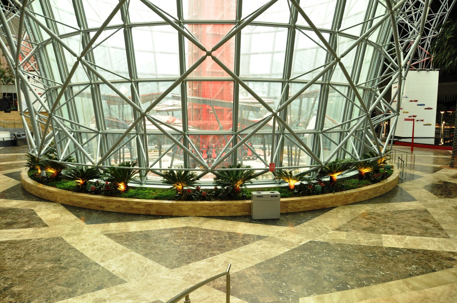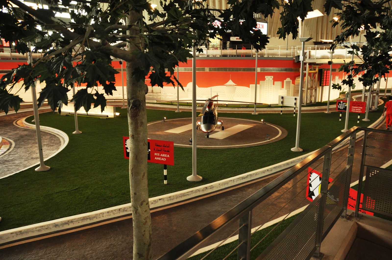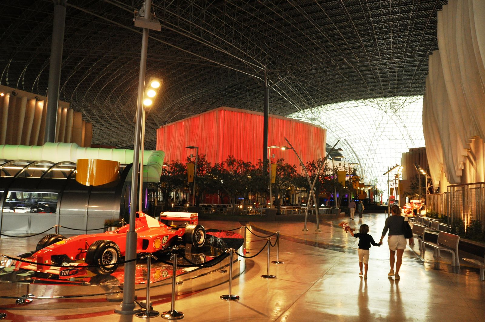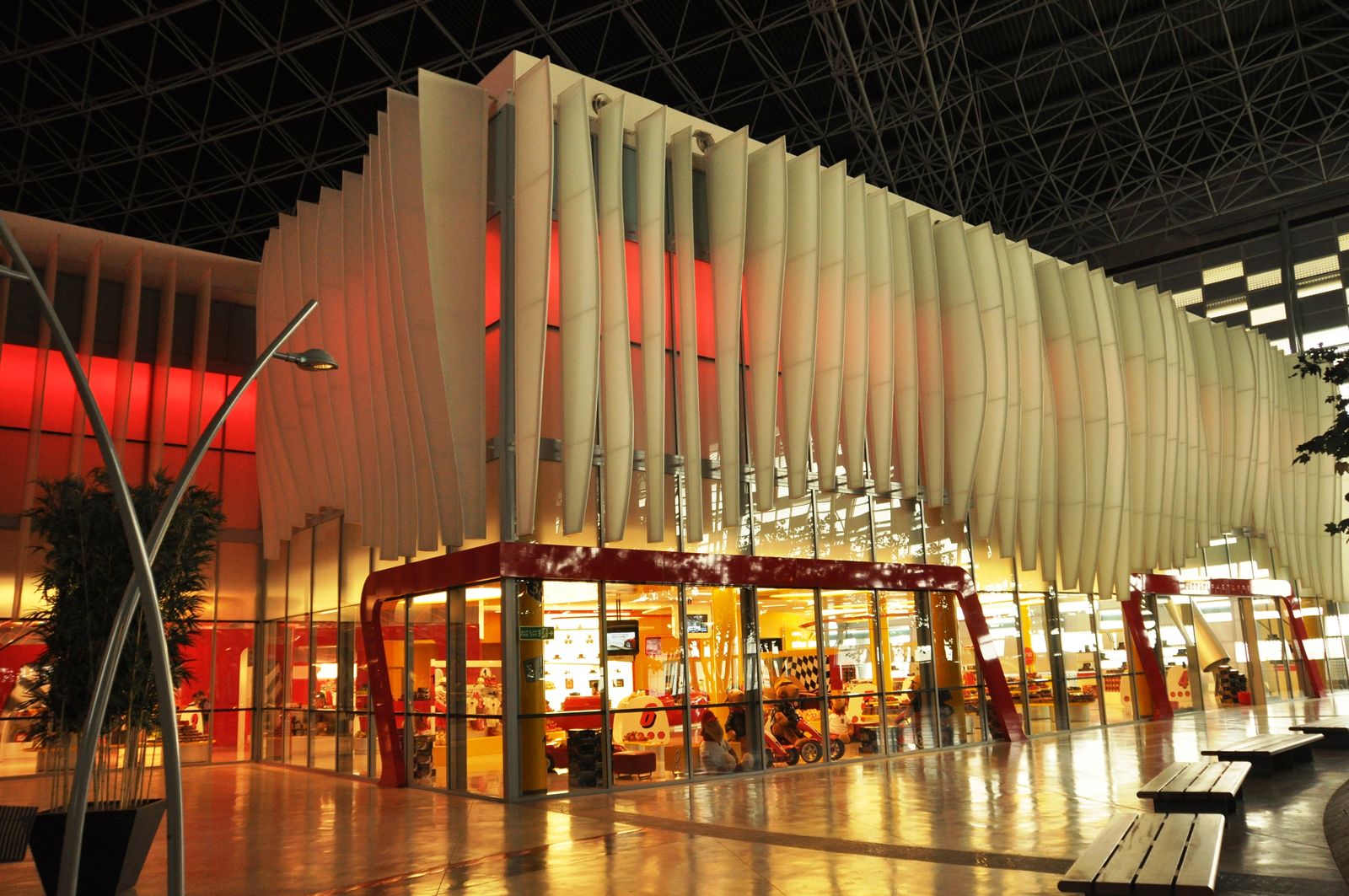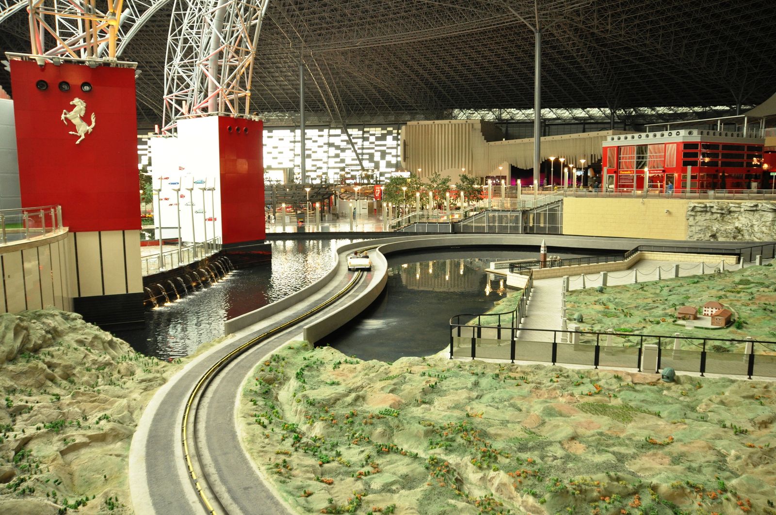 Die Ferrari World ist zum grössten Teil überdacht und stellt den grössten Indoor-Freizeitpark dar. Das riesige rote Dach, welches von dem Ferrari-Logo geziert wird, ist das grösste zusammenhängende Dach der Welt. Unter dem Dach findet man - abgesehen von den beiden Coastern - einige Darkrides, eine Wasserbahn und einige Themenfahrten für Kinder, bei denen sich komplett alles entweder über Ferrari, den Motorsport oder Italien dreht.