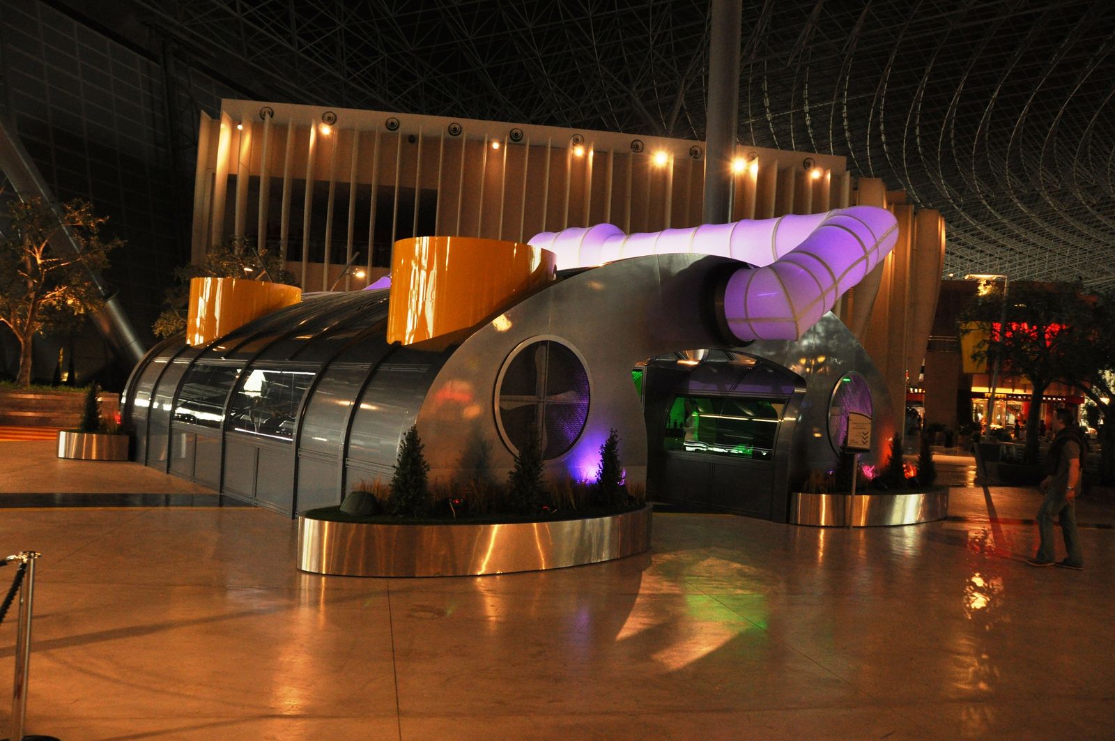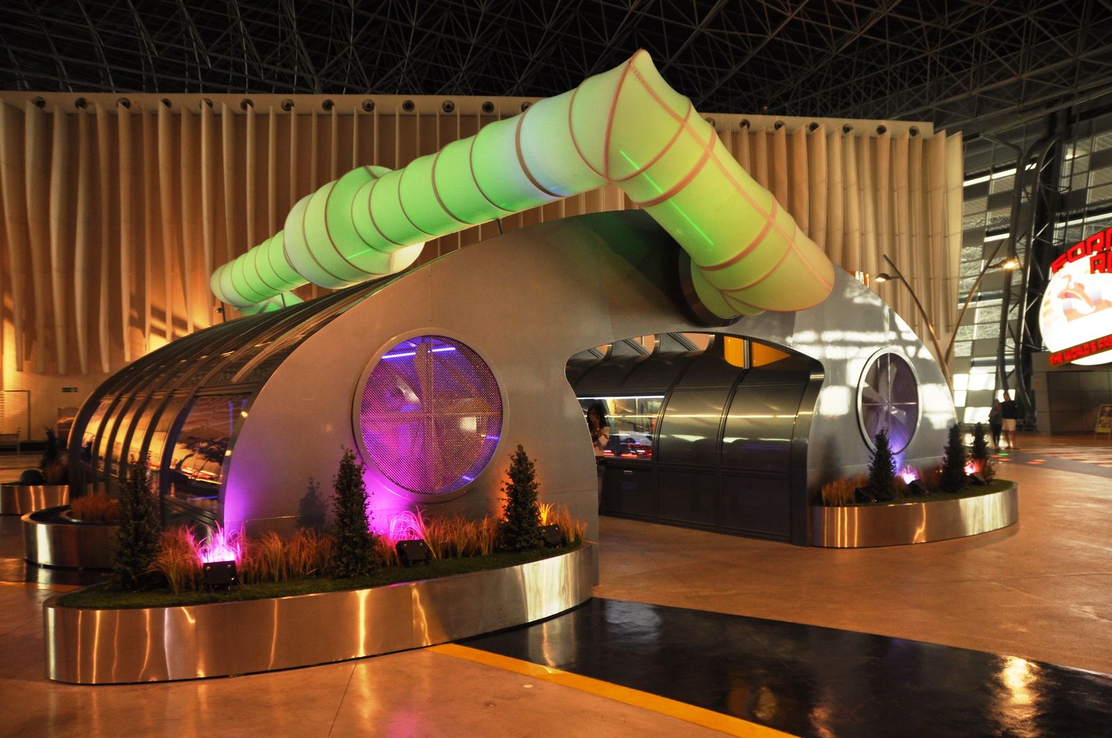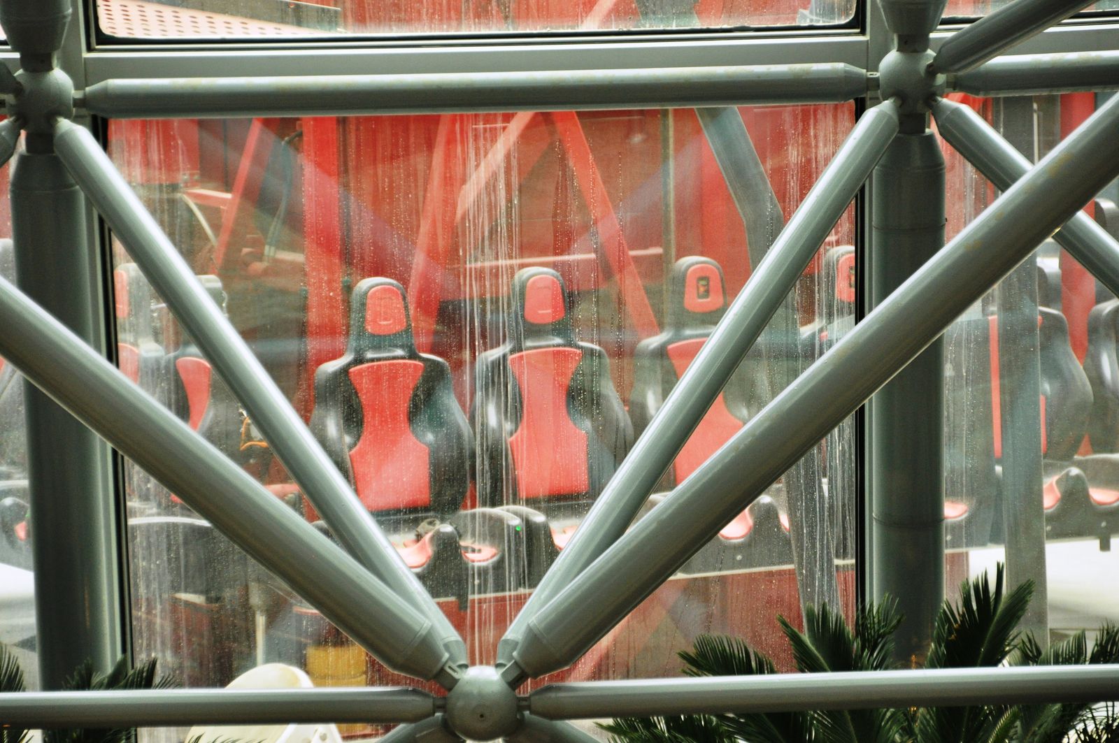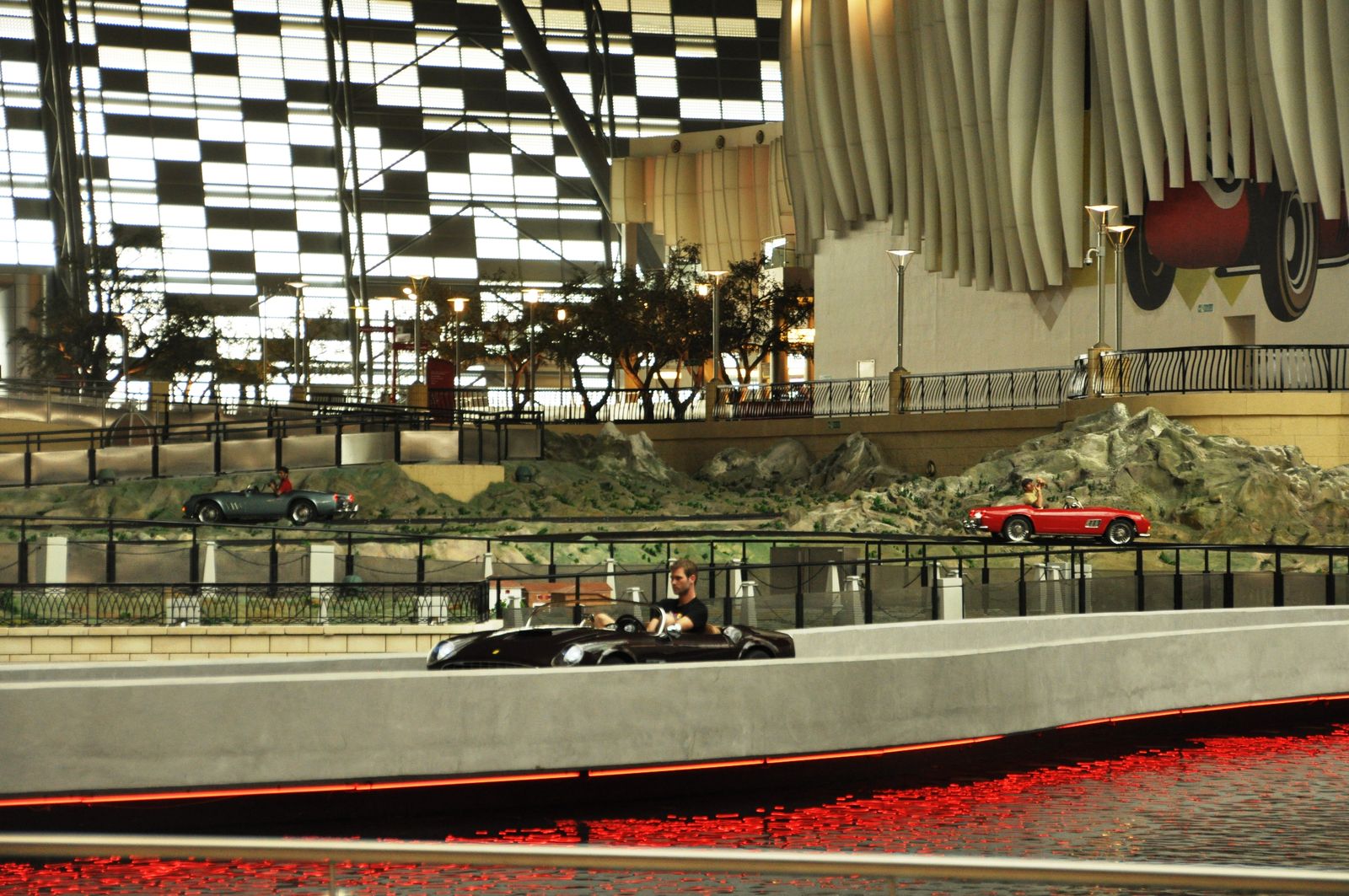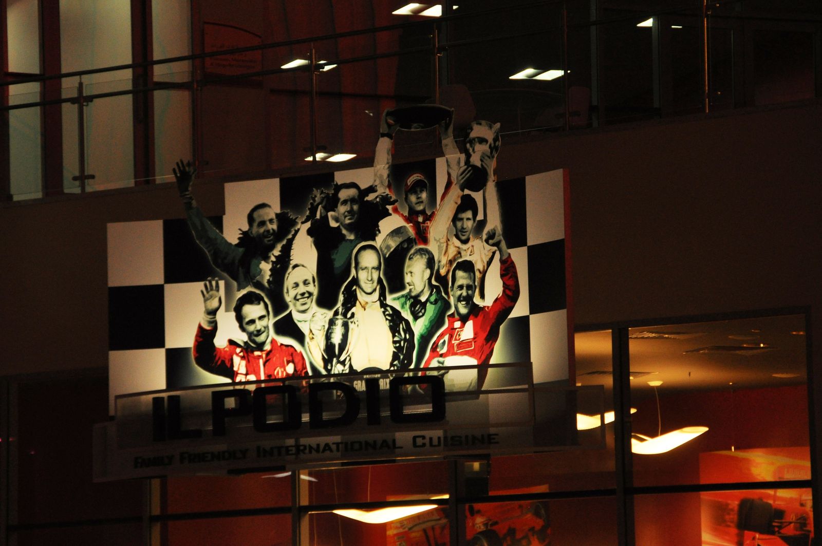 Hier bekommt man einen einigermaßen witzigen Film gezeigt, in welchem ein Angestellter, welcher heute seinen ersten Arbeitstag bei Ferrari in Maranello hat, zu einer Testfahrt mit Fernando Alonso eingeladen wird, der natürlich ordentlich Gas gibt. Dabei bewegen sich die Sitze, damit man den Speed und die Kurven mitfühlen kann. Allerdings neigen sich die Sitze in die falsche Richtung. Meiner Meinung nach müssten sich diese in einer Rechtskurve nach links bewegen, aber sie folgen eher der Bewegung der Mitfahrer und schwenken ebenfalls nach rechts.