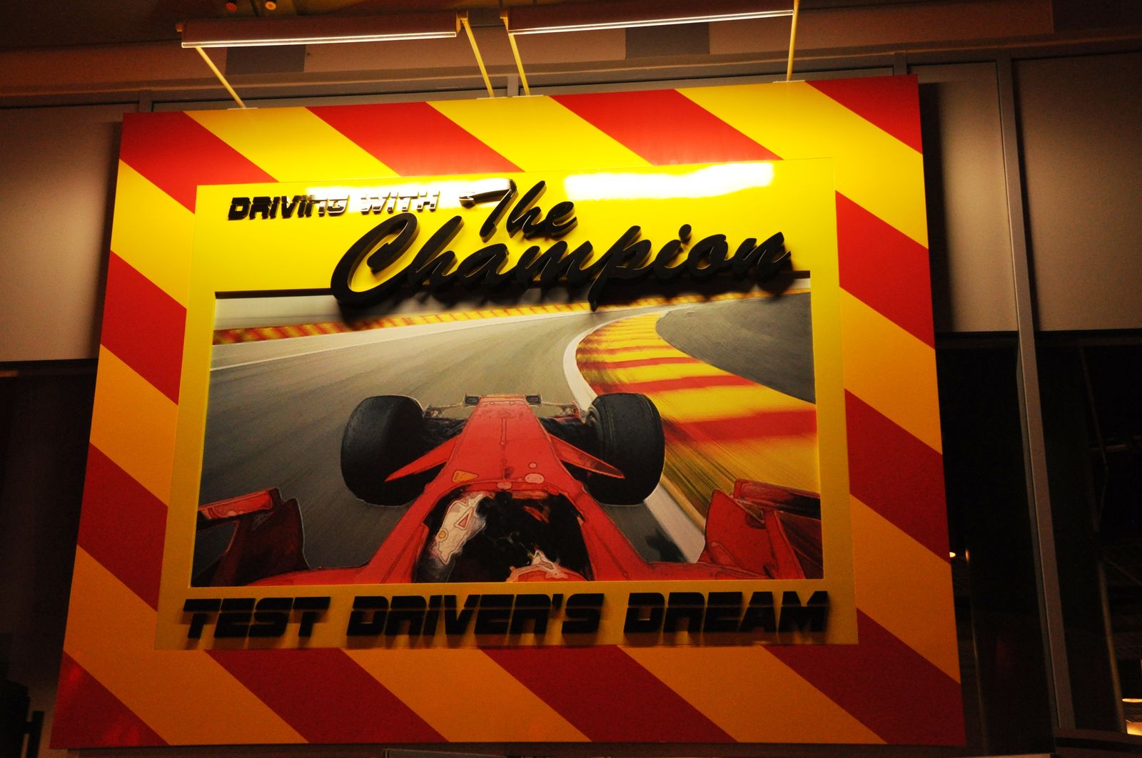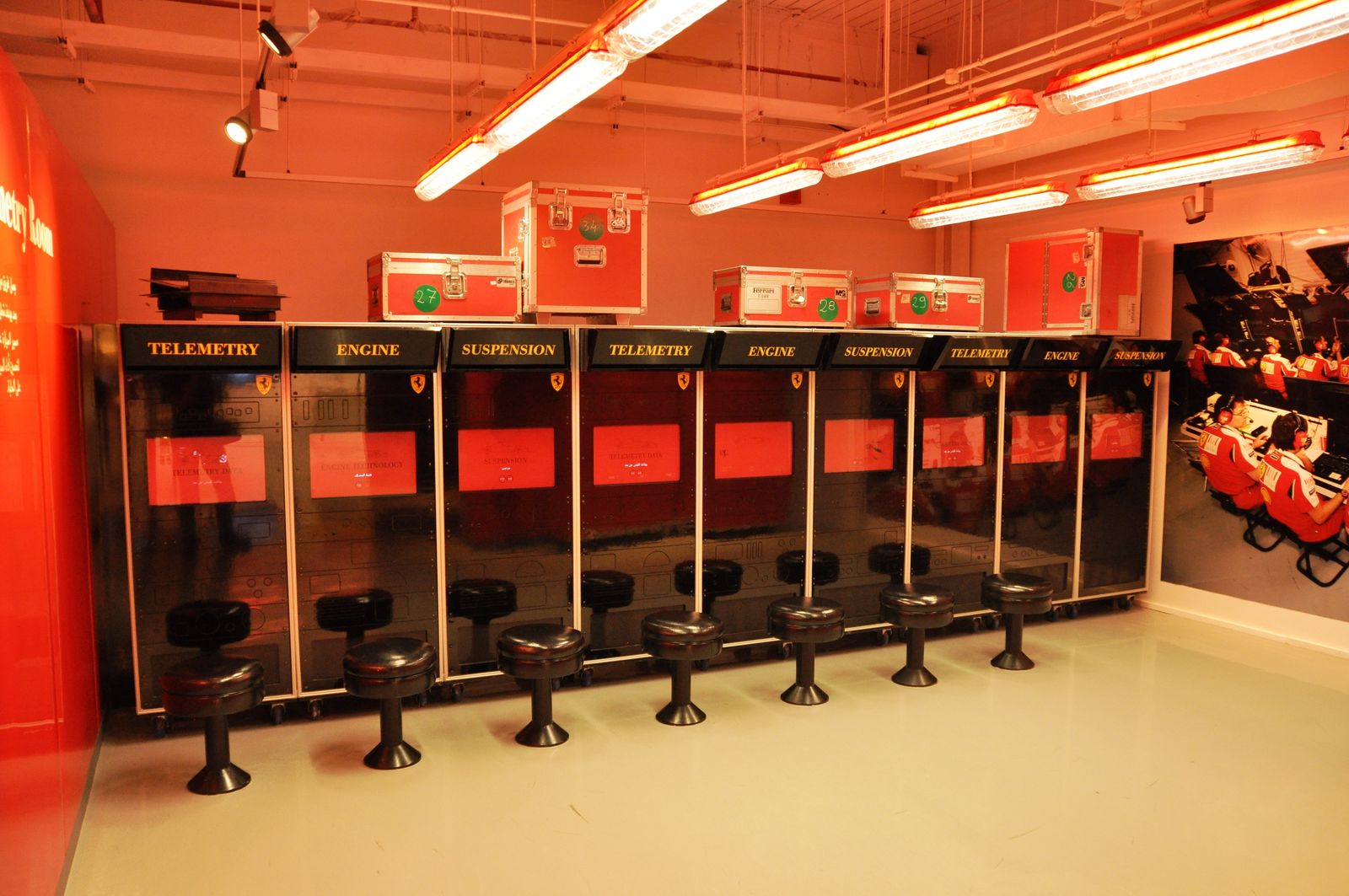 Nachdem man den Raum betreten hat, blickt man auf den Kommandostand des Ferrari-Teams. Ein Moderator (mit einigen seltsam klingenden englischen Aussprüchen) führt durch die Show, und auf der Leinwand laufen kurze Filme, die sich um die Formel 1 handeln. Danach bekommt man Fragen mit 3 Lösungsvorschlägen zu den Kurzfilmen gestellt. Die Antworten gibt man mit drei Knöpfen ein, die sich an jedem Sitz befinden. Man bekommt zwar eine Auflösung, welche Antwort richtig war, ideal wäre natürlich noch die Präsentation eines Gewinners.