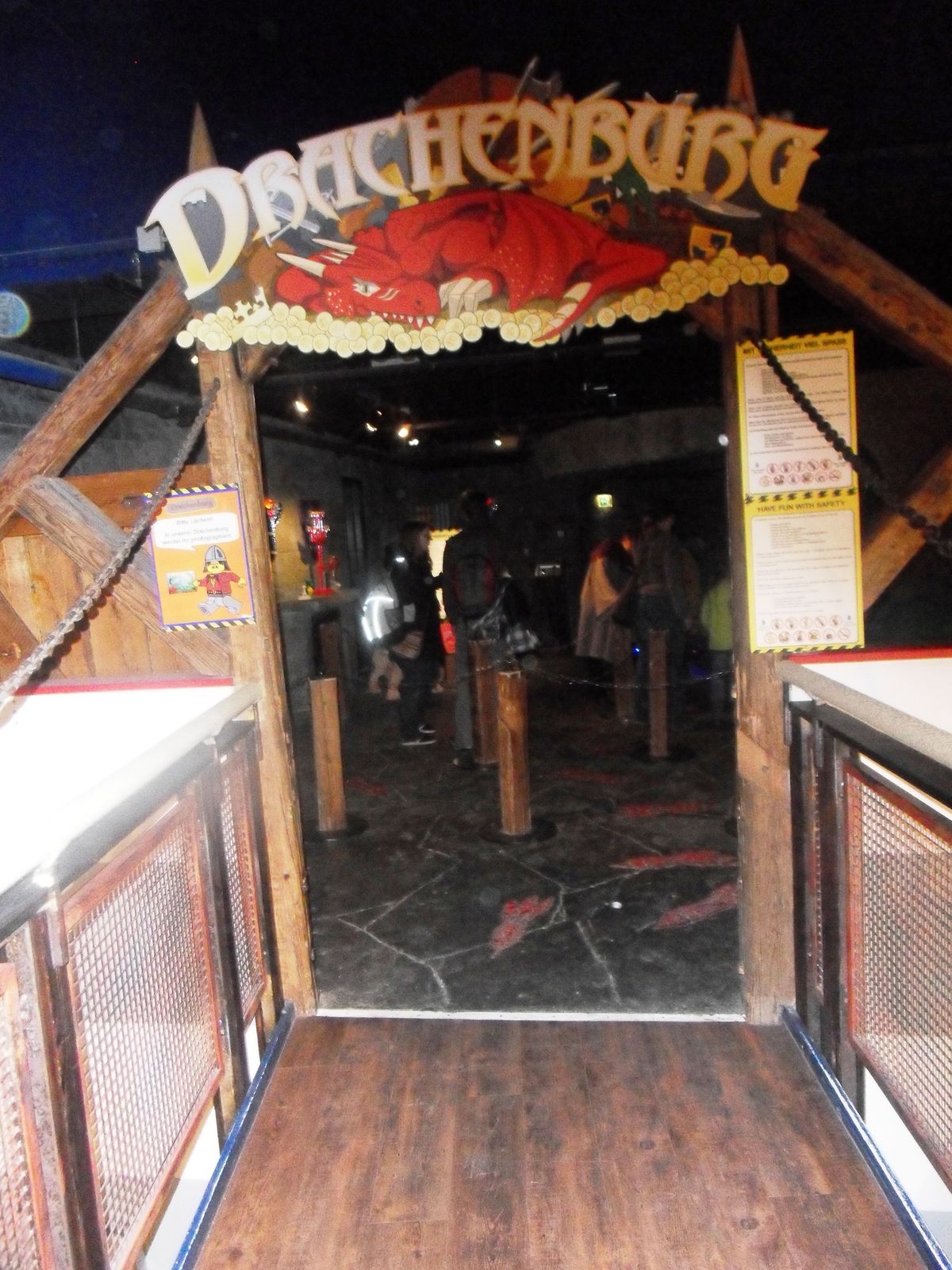 In Sichtweite, nur wenige Meter weiter, geht es von den Piraten zu den Rittern. In der Drachenburg wartet eine kleine, aber feine Themenfahrt mit hübschen Drachengondeln auf die Besucher. Alle Figuren, und es sind nicht wenige, bestehen selbstverständlich aus Lego. Dazu gibt es eine ohrwurmverdächtige Musik und nette Licht- und Wassereffekte.