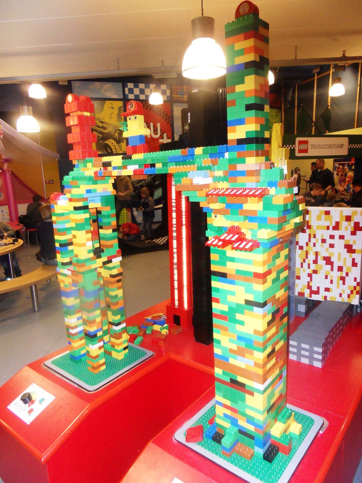 später) schon oft genug gemacht haben dürfte, sondern bot mit Erdbebenplattformen und Autostrecken viel Platz zum Spielen. Bei uns herausgekommen ist dann diese nette, etwa zwei Meter hohe Turmkonstruktion: