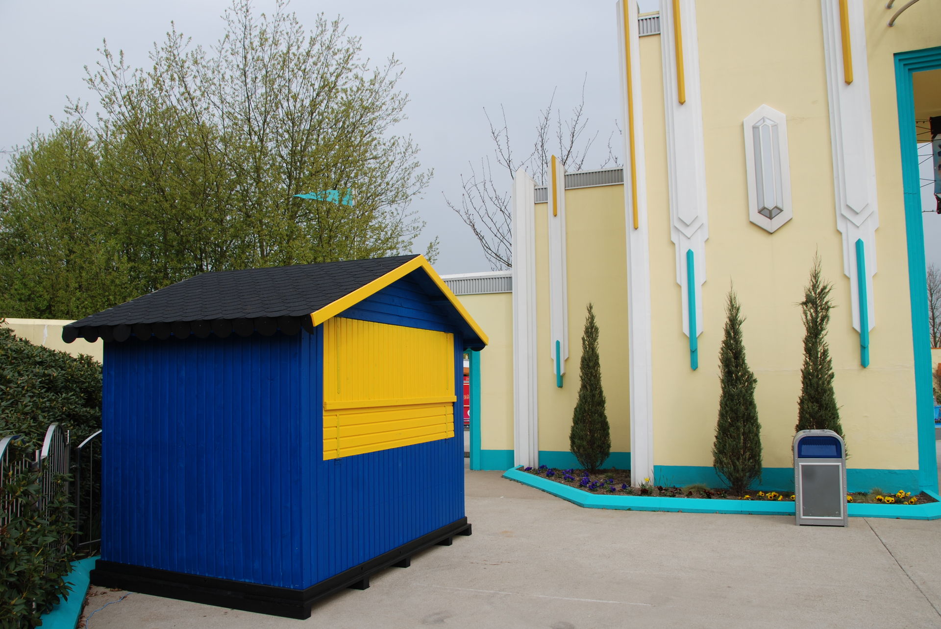 Also wenn ich sehe, wie knapp zur Eröffnung die Außenfassade und der Club fertig gestellt wurden, so glaube ich nicht, dass die Achterbahn wochenlang fertig rumstehen wird, um die Besucher zu ärgern. Das wird wohl zeitlich ähnlich eng werden.