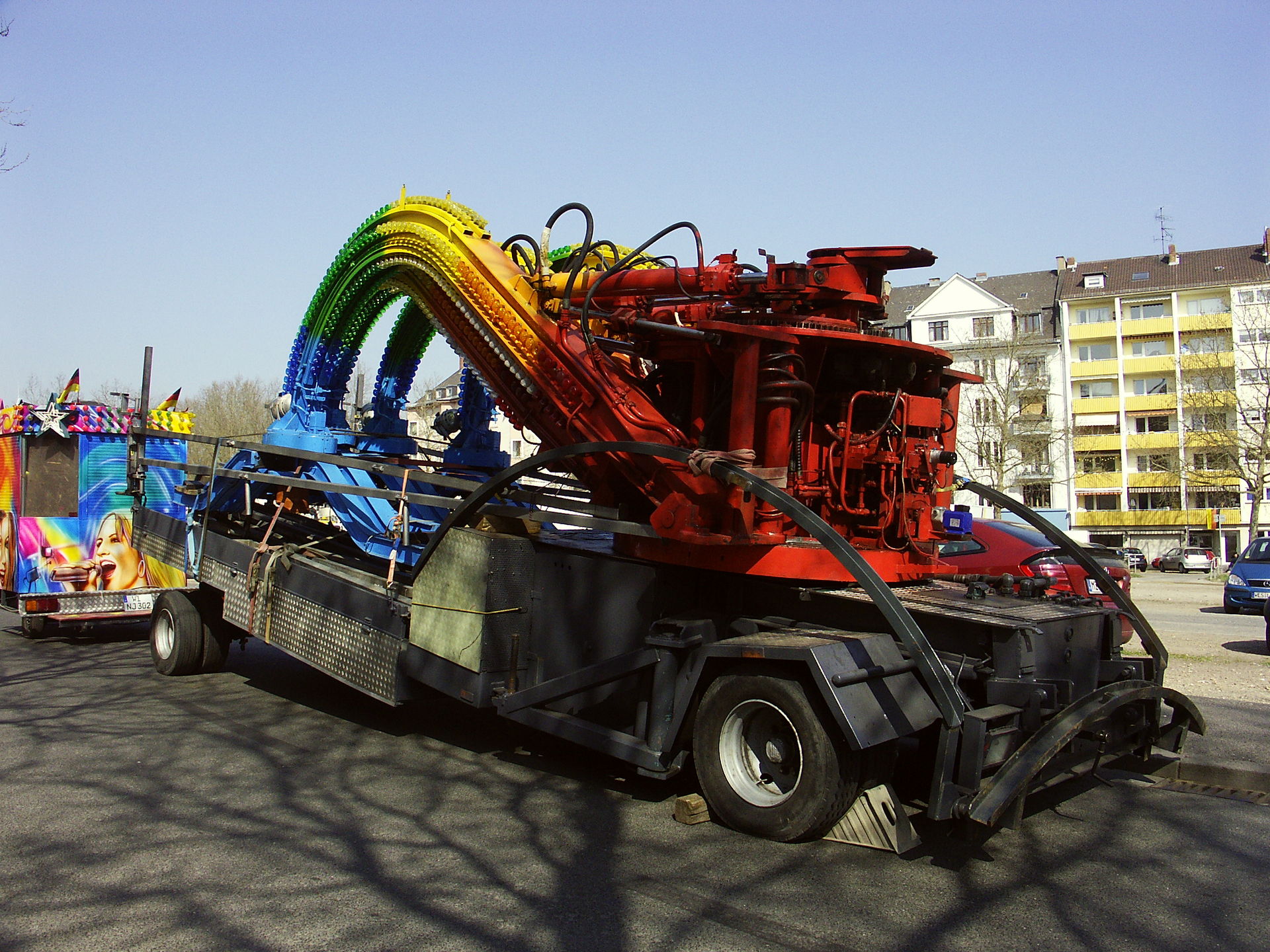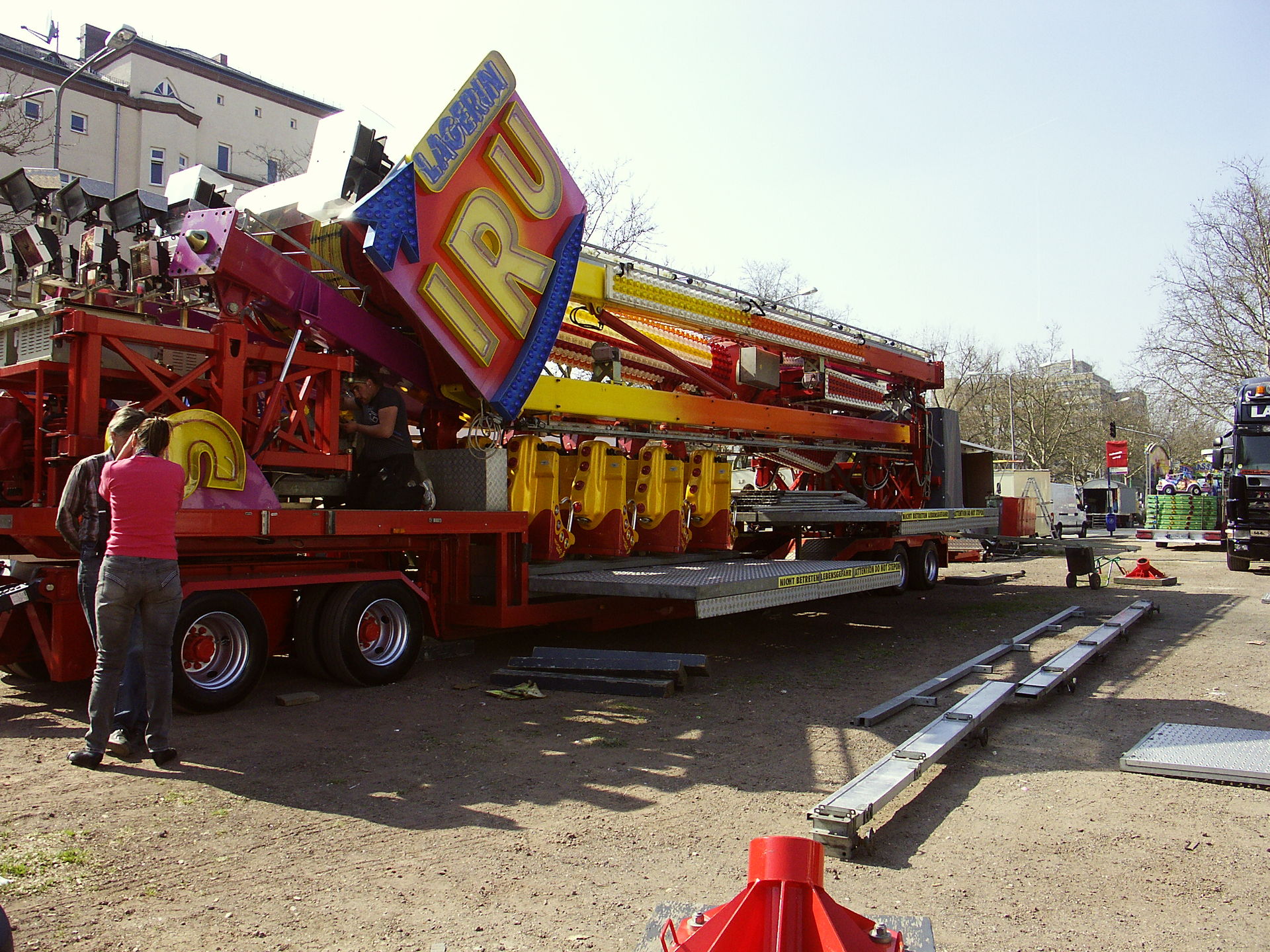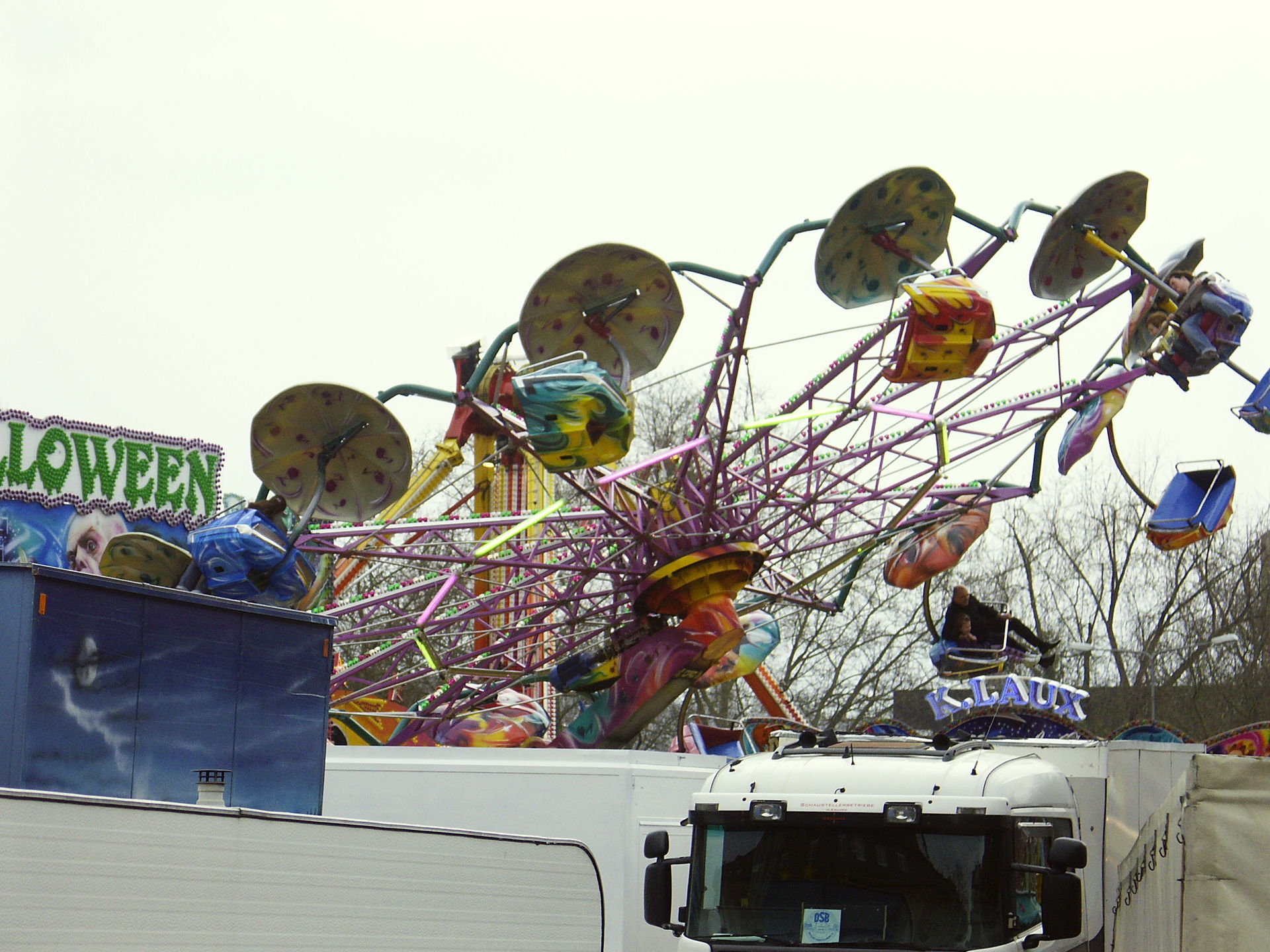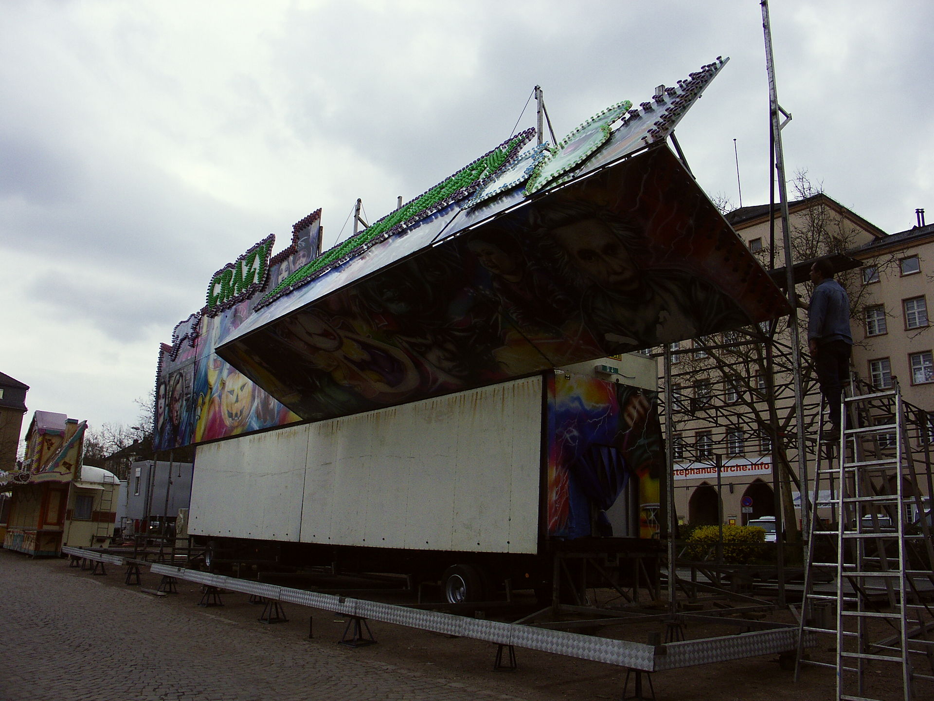 Die vor der Inbetriebnahme durchgeführte Sonderprüfung und TÜV-Abnahme waren ohne Beanstandung. Somit konnte der Premiereplatz angefahren werden, auch ohne Kugel und Polyp. In absehbarer Zeit wird auf die Mitte was neues kommen. Wichtig ist, er ist fahrbereit und die vertraglichen Plätze können angefahren werden. Die Familie Nickel hat hier eine ware Meisterleistung vollbracht.