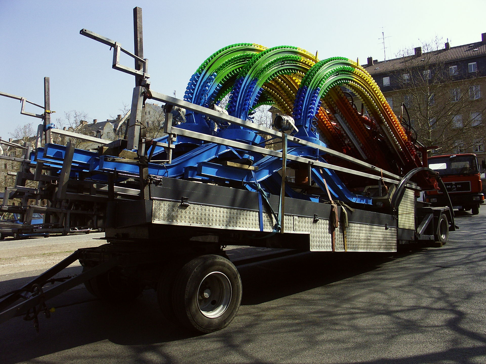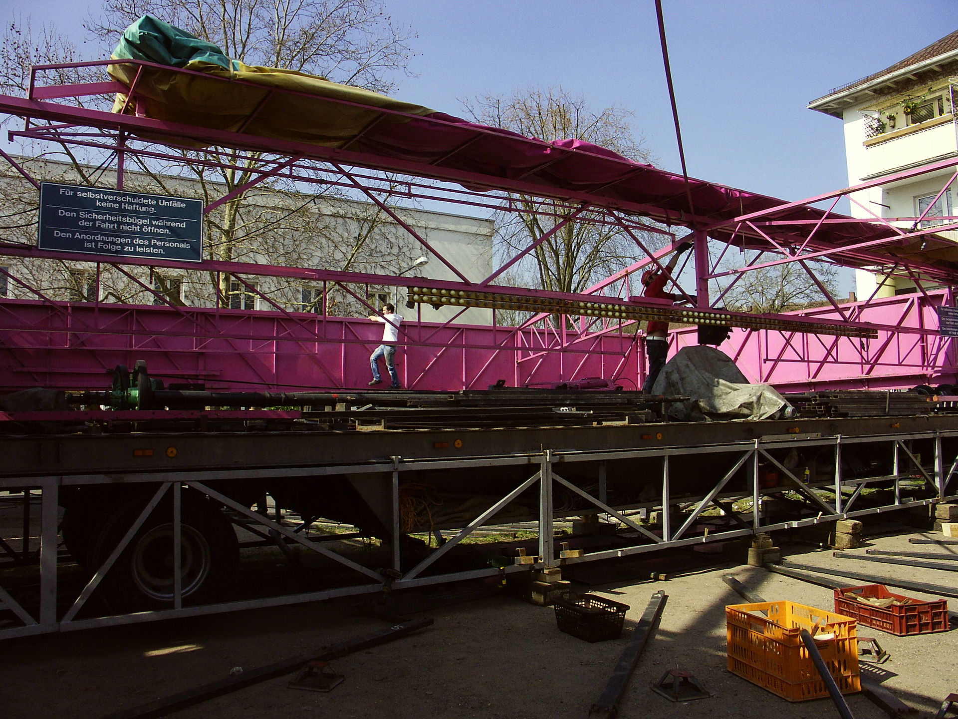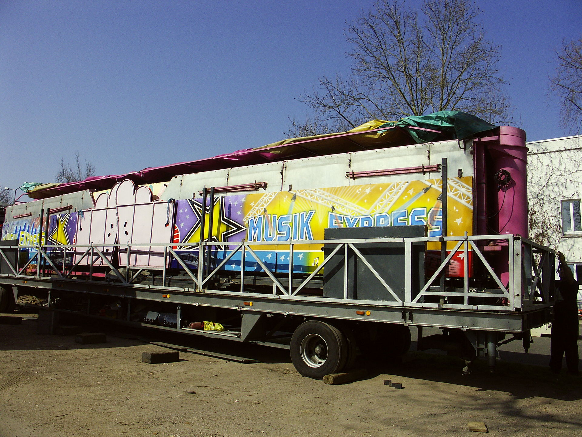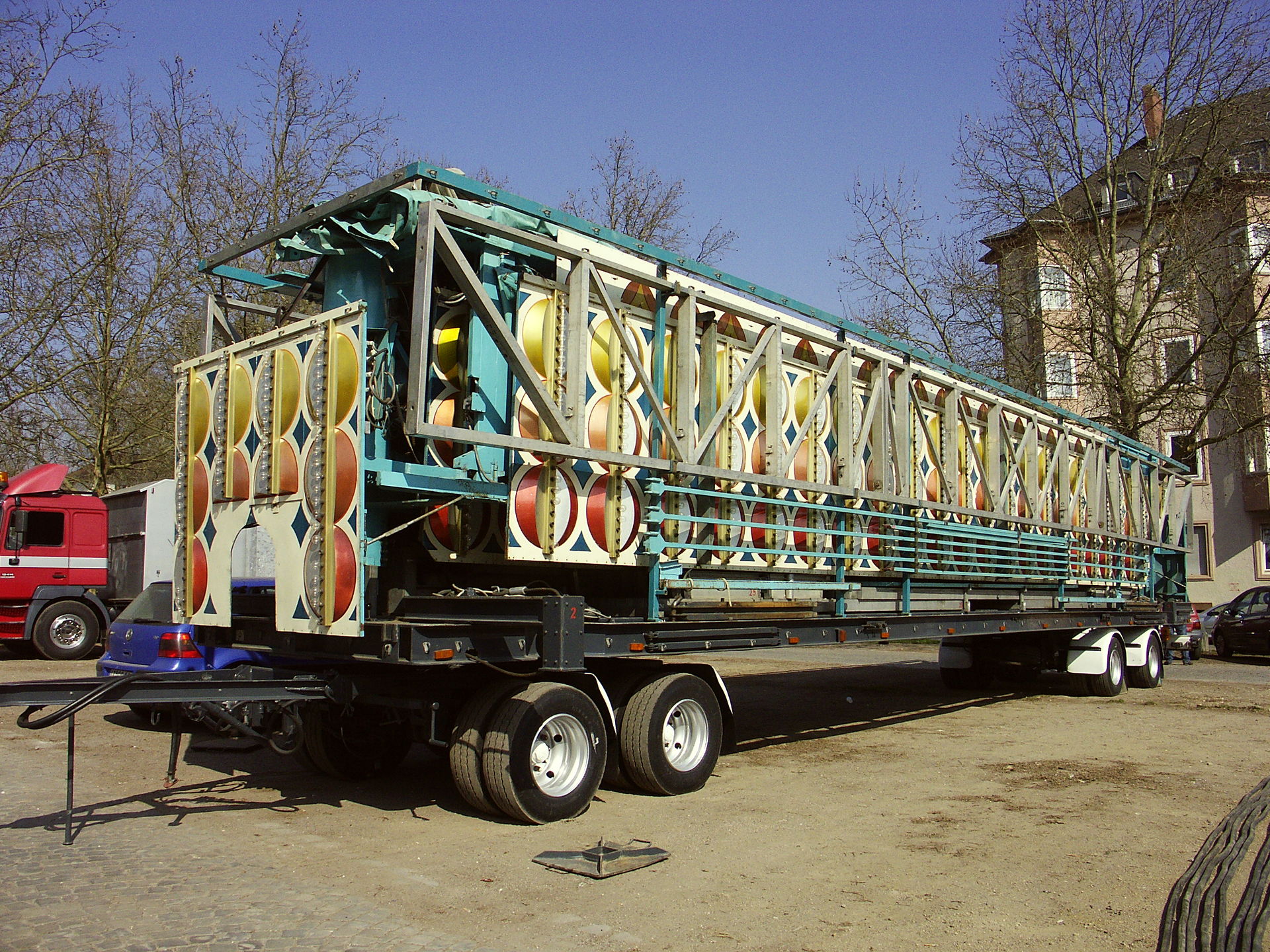 Die traditionelle Kugel mit dem Polypen, auf dem Mittelteil, sind durch den Transportunfall so stark beschädigt, daß sie nicht mehr verwendet werden können. Eine kurzfristige Erneuerung war nicht möglich, da die Familie Nickel ihren Schwerpunkt auf die Überarbeitung der Technik gelegt hat. Insbesonders wurden alle Motoren und Lager erneuert. Auch ein neuer Packwagen mußte gebaut werden, da Levy den eigentlichen Packwagen für seinen Flipper im Einsatz hat.