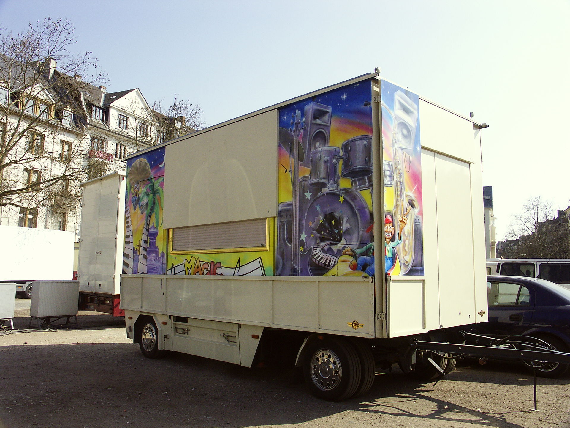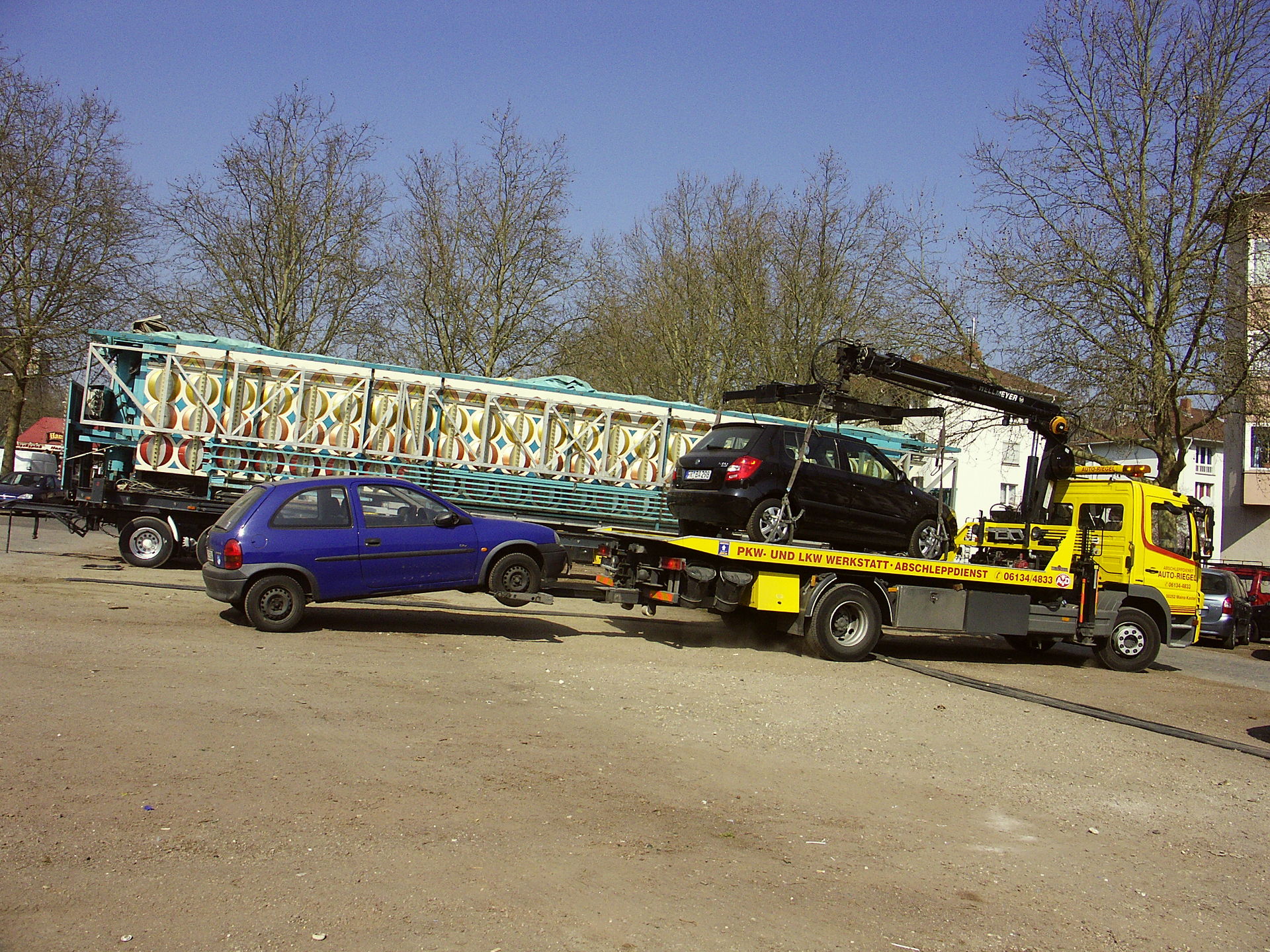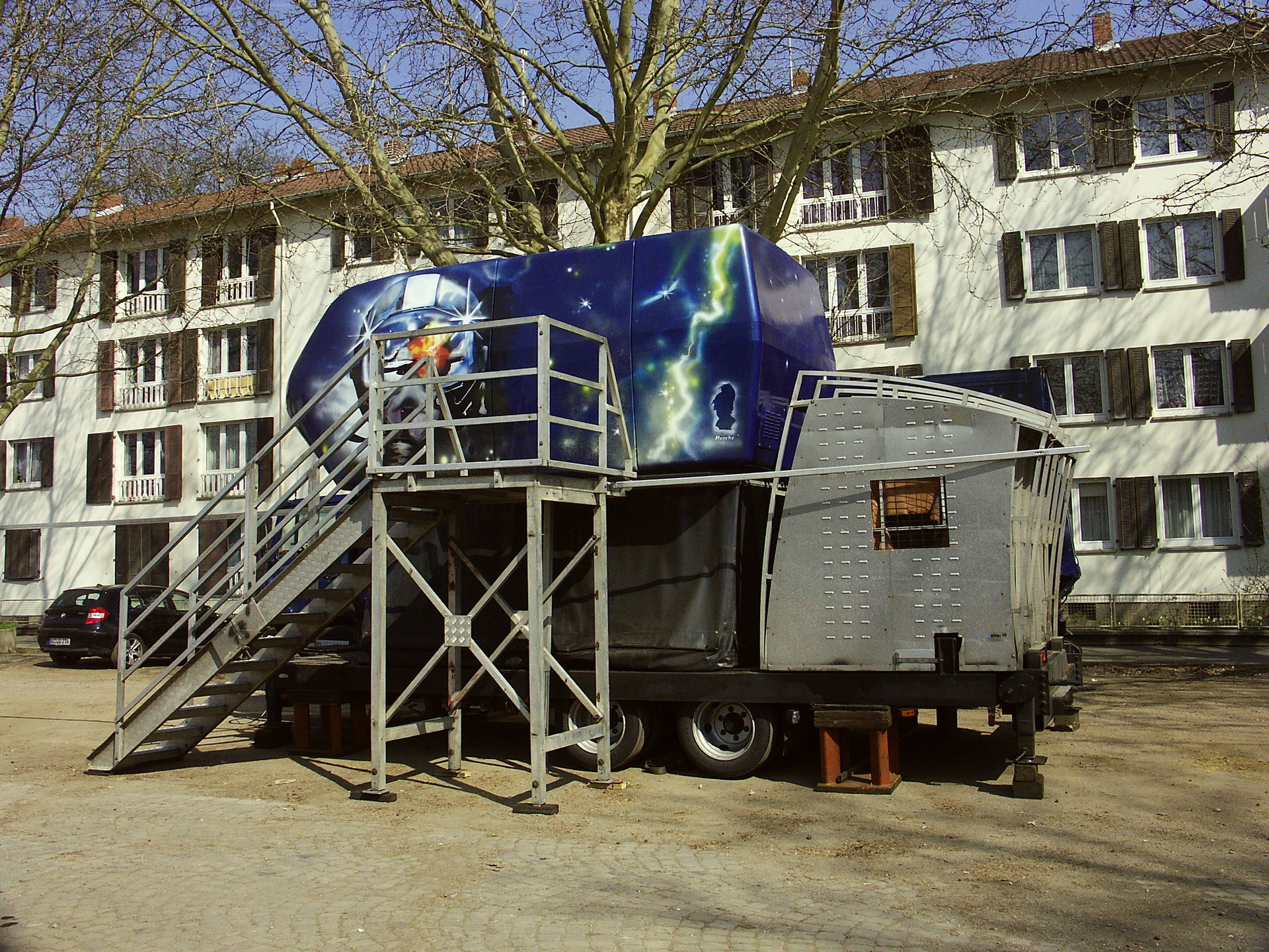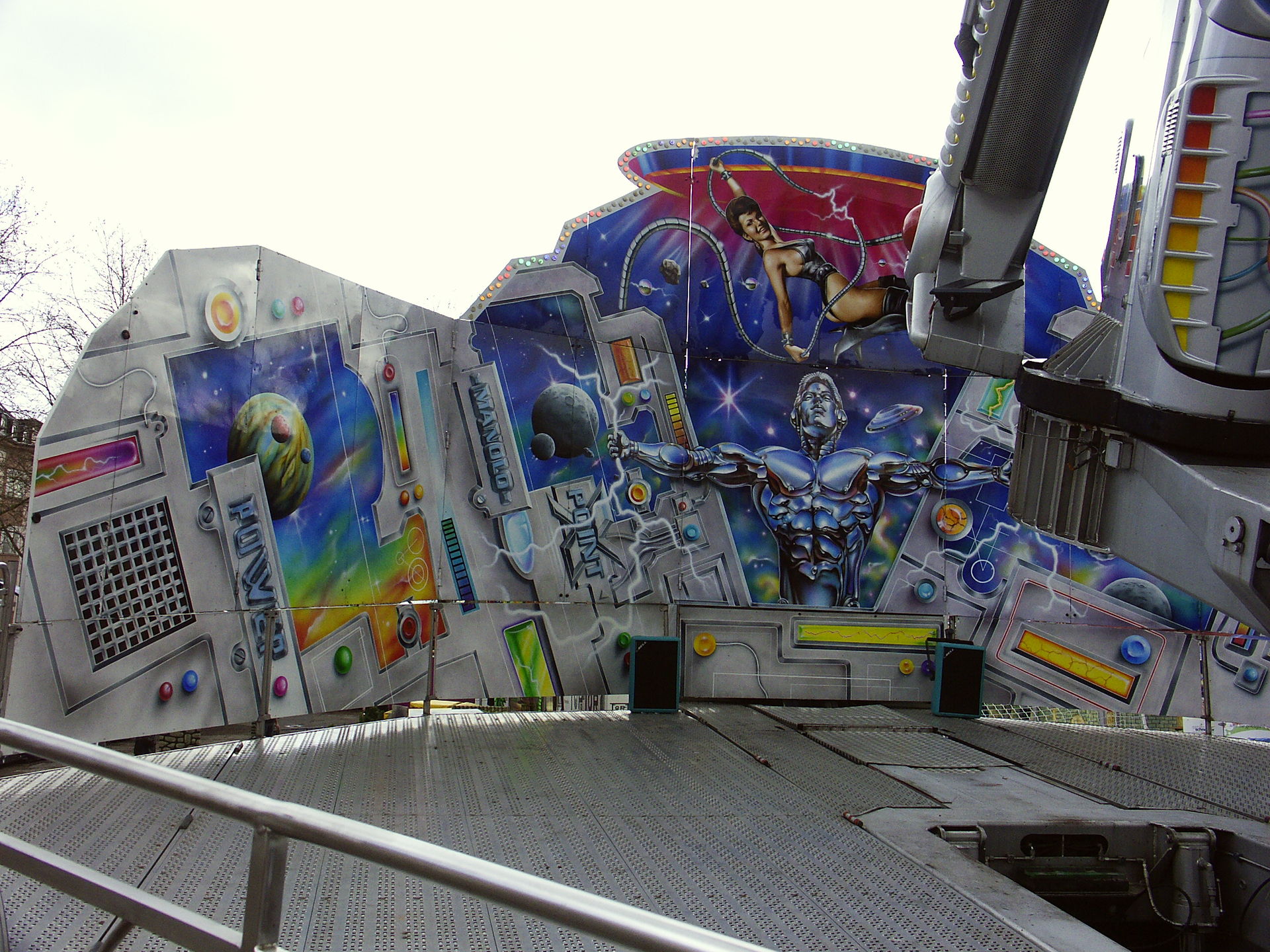 Die traditionelle Kugel mit dem Polypen, auf dem Mittelteil, sind durch den Transportunfall so stark beschädigt, daß sie nicht mehr verwendet werden können. Eine kurzfristige Erneuerung war nicht möglich, da die Familie Nickel ihren Schwerpunkt auf die Überarbeitung der Technik gelegt hat. Insbesonders wurden alle Motoren und Lager erneuert. Auch ein neuer Packwagen mußte gebaut werden, da Levy den eigentlichen Packwagen für seinen Flipper im Einsatz hat.