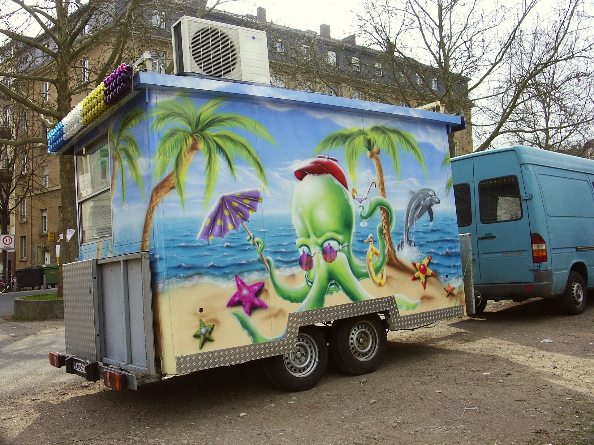 Nach langem hin und her, ist der alte Namen *Beach Polyp* doch beibehalten worden. Ursprünglich sollte er nur Polyp heißen. Der Name *Beach Polyp* steht über der Kasse. Auf die Rückwand kommt noch ein weiterer Schriftzug.