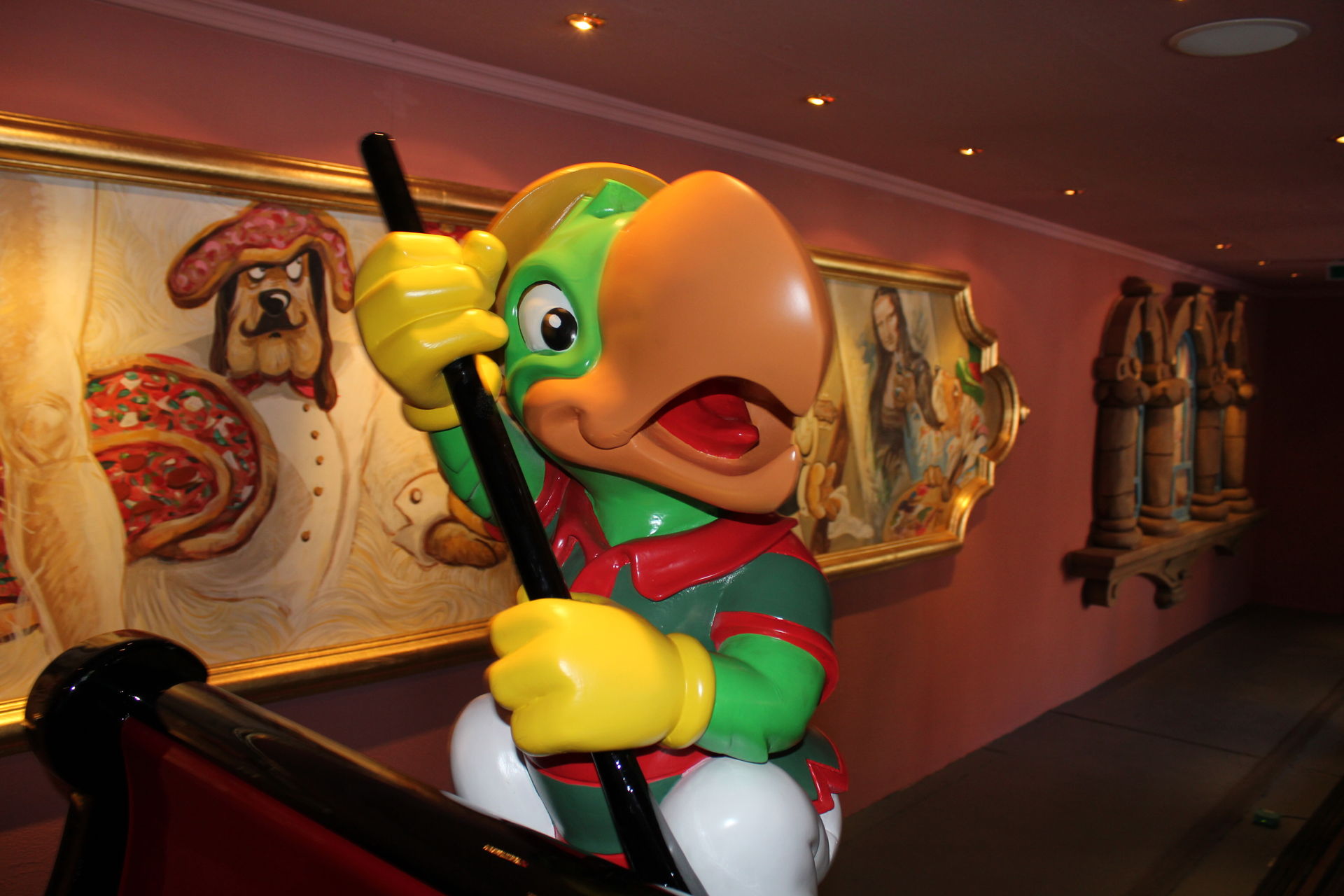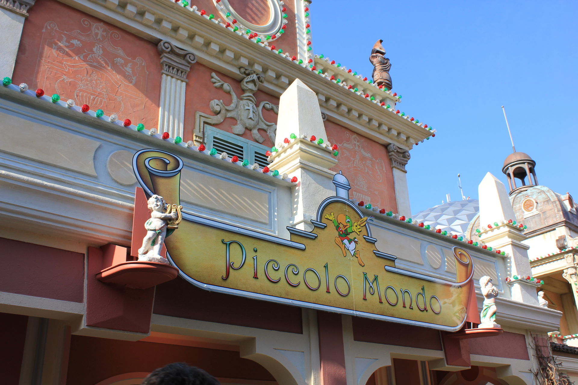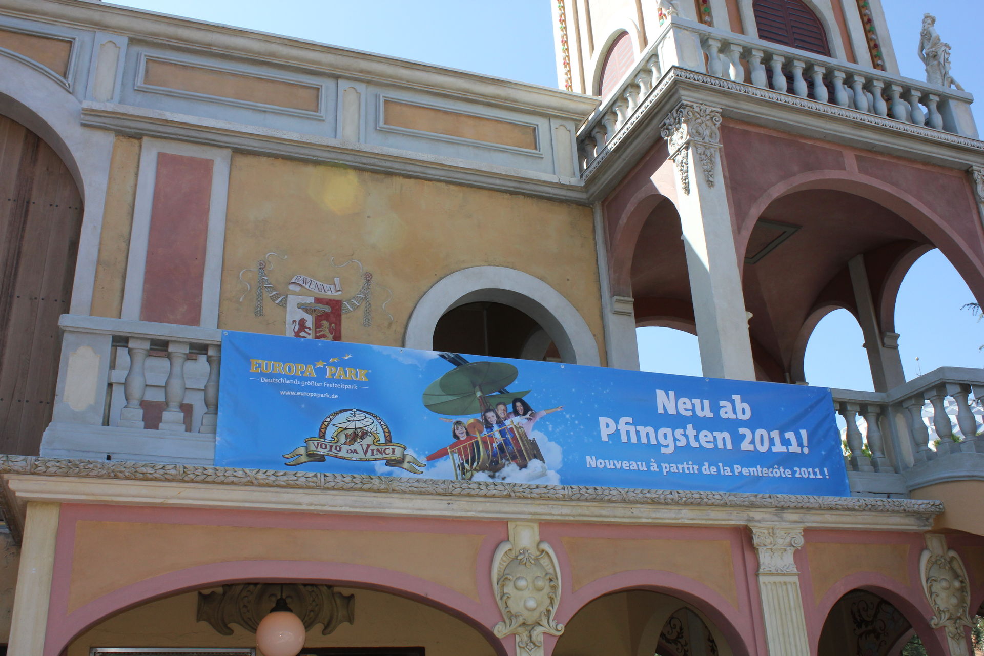 Nach den Eindrücken aus dem Märchenwald gingen wir nach Italien. Dort schauten wir auf die Neuheit Volo da Vinci, die ab Pfingsten öffnen soll. Auch die neue Show im Teatro dell?Arte "Luminocity" musste sein. Dort gibt es neue Artisten zu sehen wie die Frau in der Kugel Emilia Arata vom RTL Supertalent 2010. Nach der Show fuhren wir dann den ersehnten Piccolo Mondo. Dort wurden wir erst einmal von Holly begrüßt.