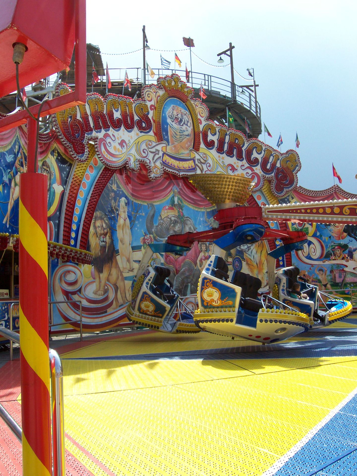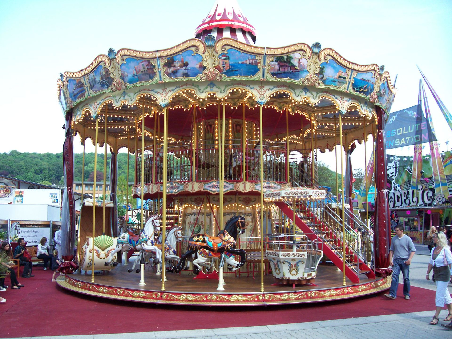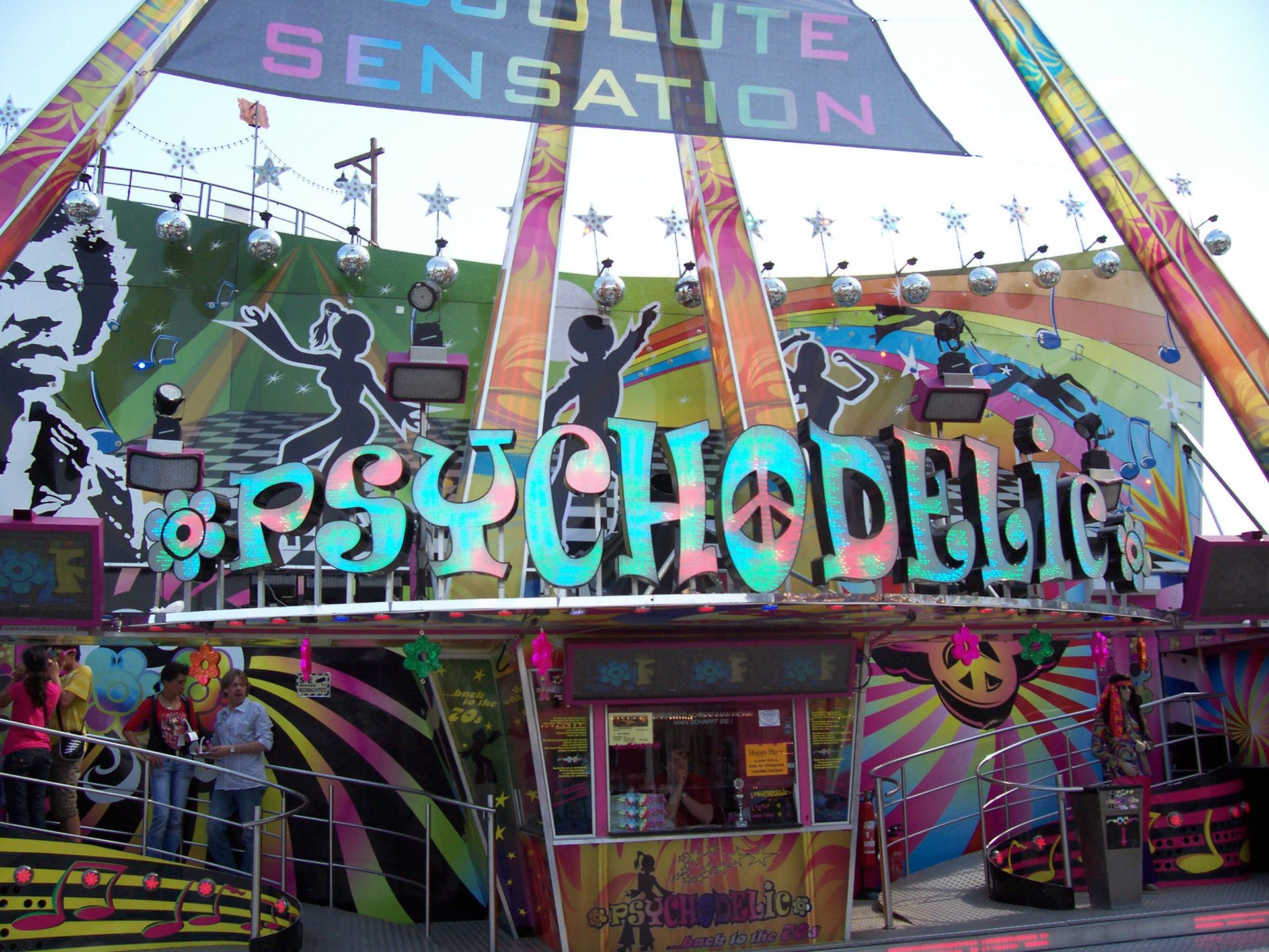 Gegenüber von Psychodelic findet man ein Doppelstock Pferdekarussell und eine alte Kirmesorgel.