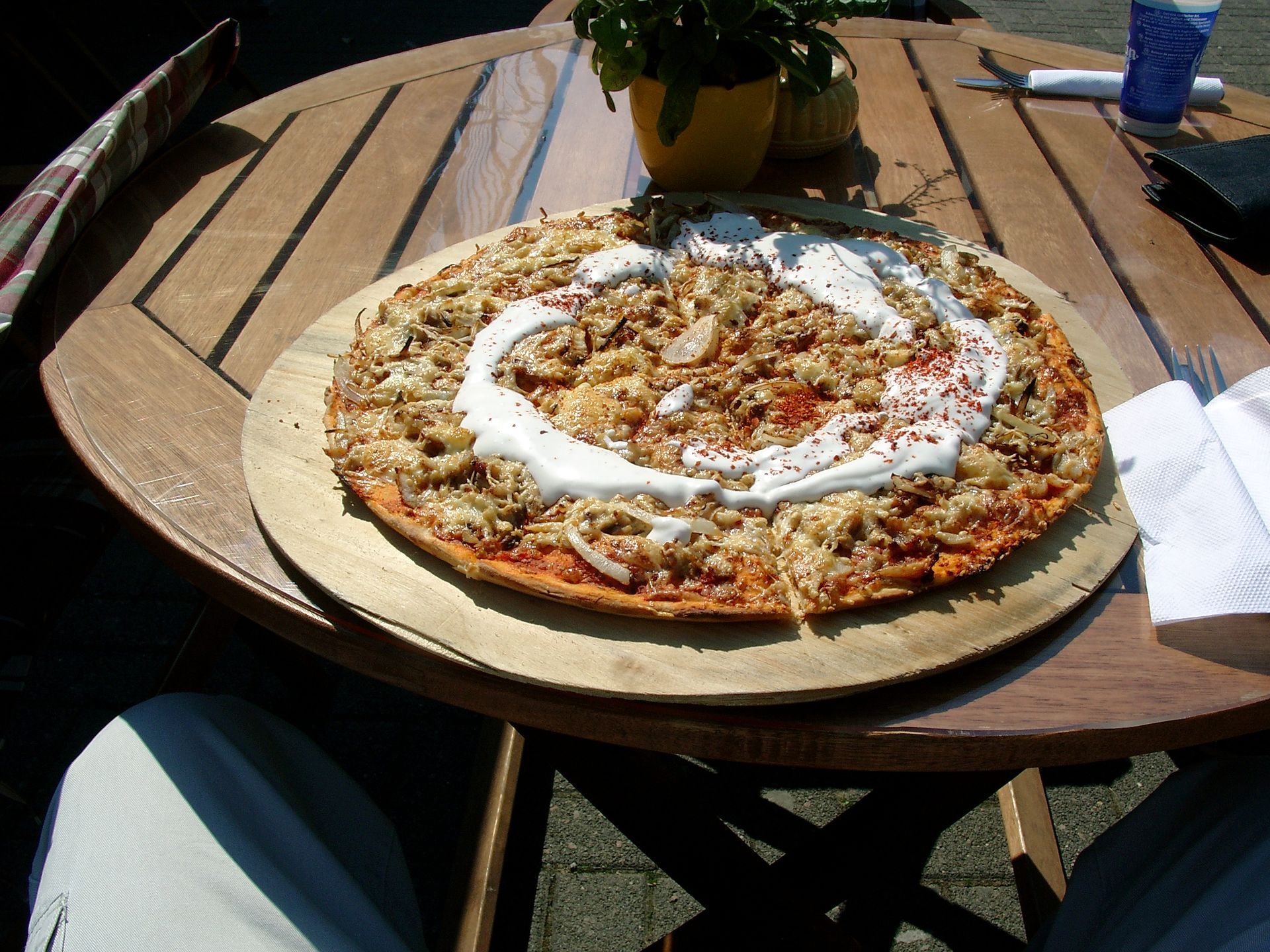 Das nenne ich mal Dönerpizza. Mit der Größe von einem 100er-Schild auf der Autobahn