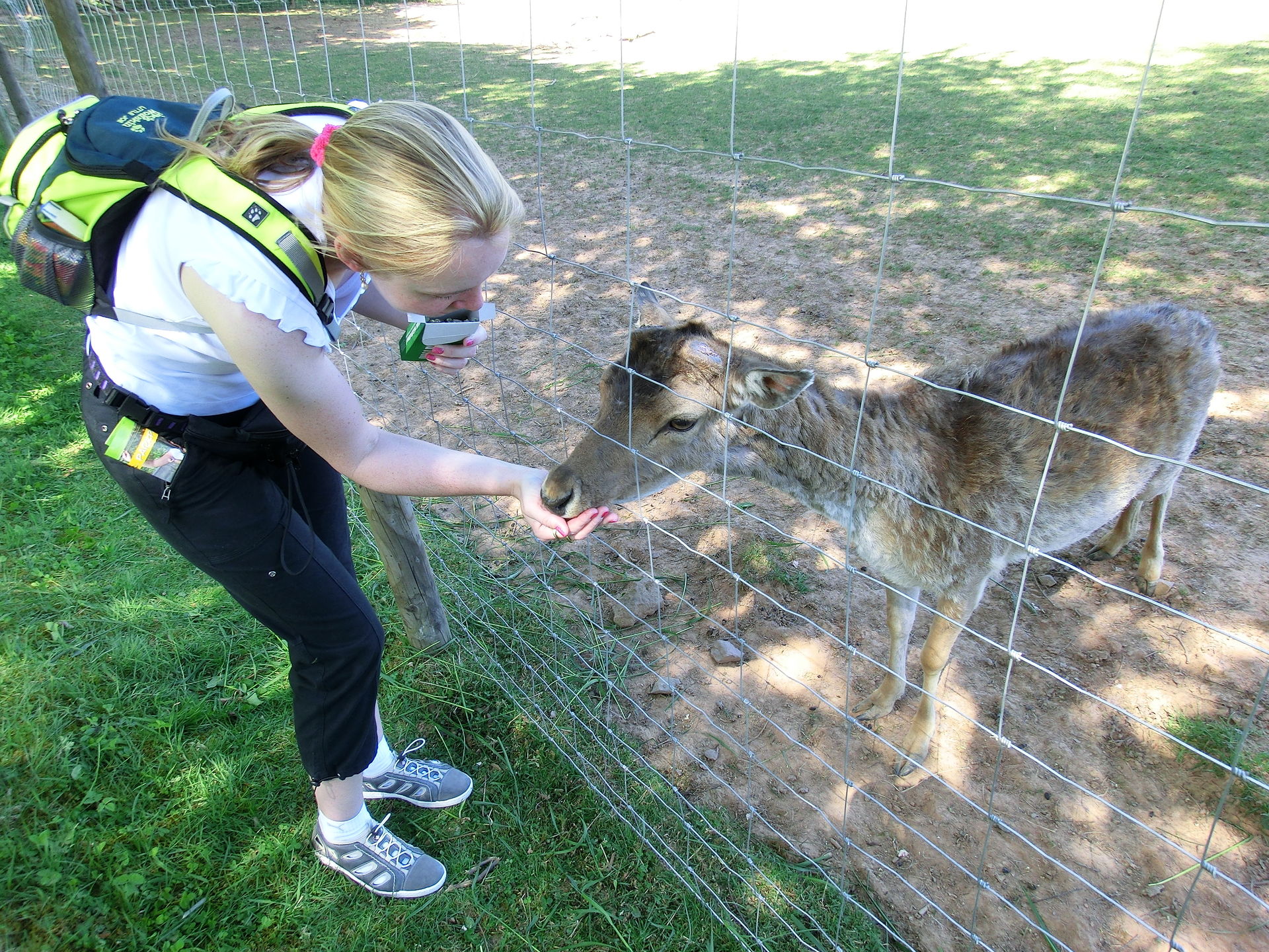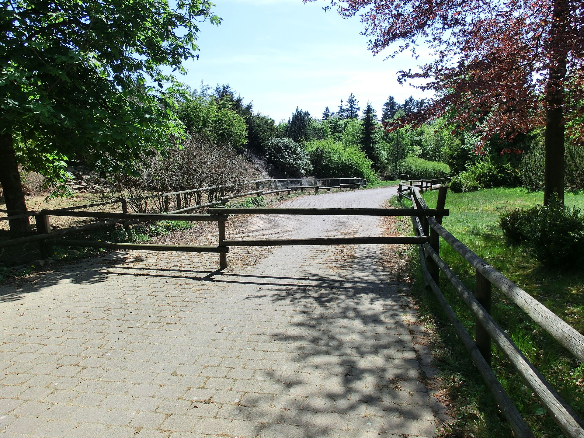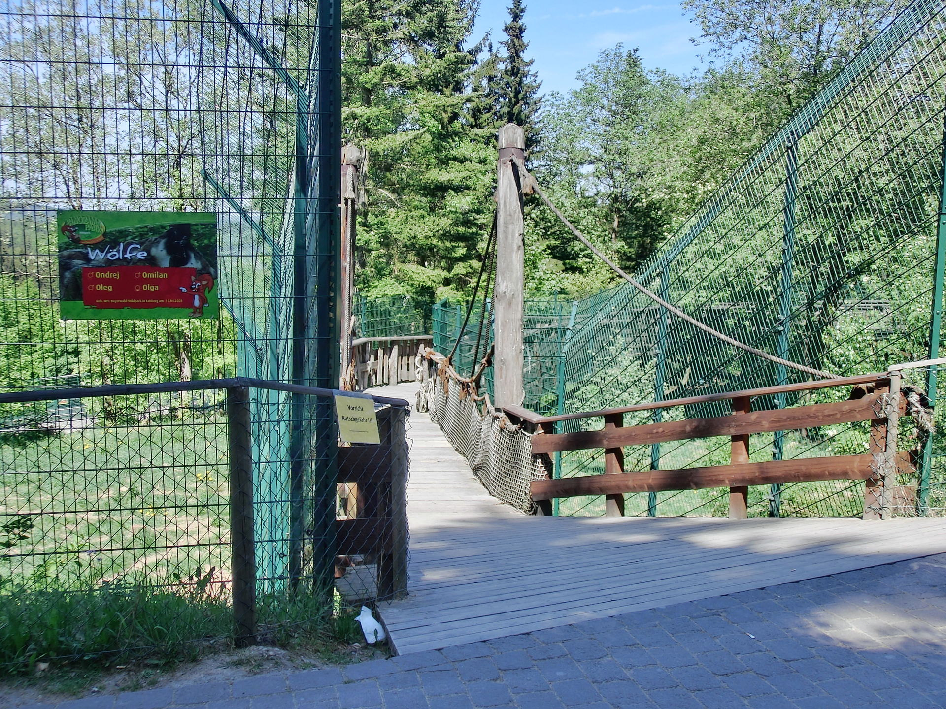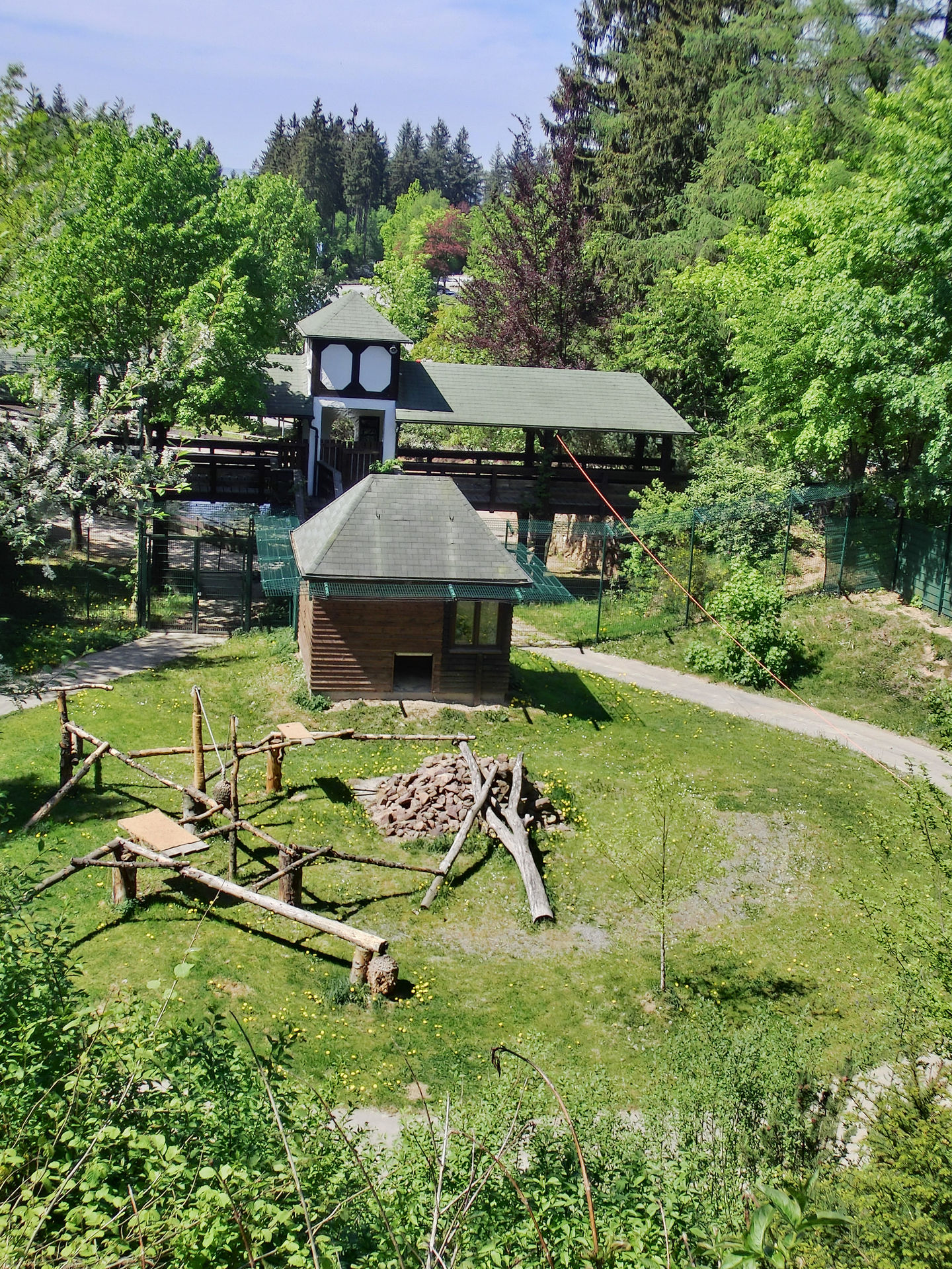 Das Wolfs- bzw. Luchsgehege kannte ich noch nicht und sind gut angelegt. Von den Luchsen war aber garnichts zusehen. Auch die Wölfe hielten sich unter Bäumen und Büschen versteckt was wohl an dem warmen Wetter lag.