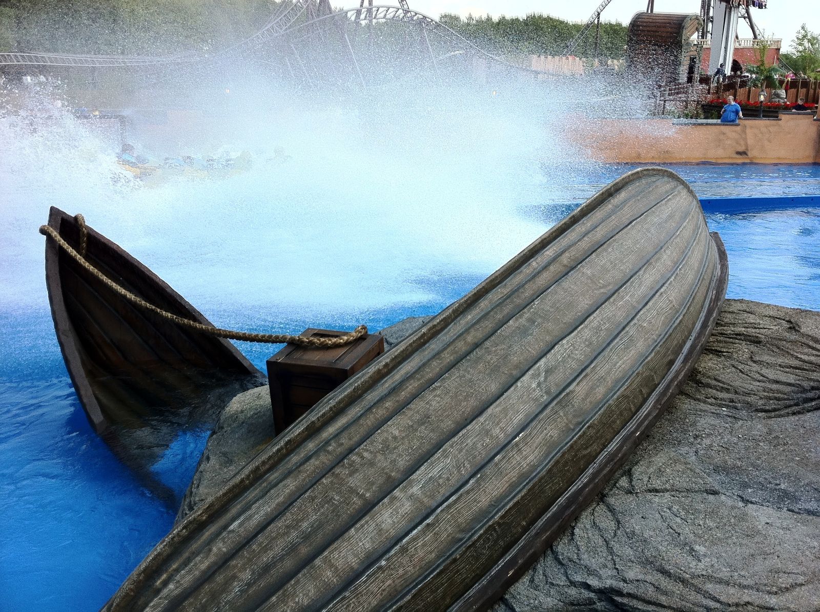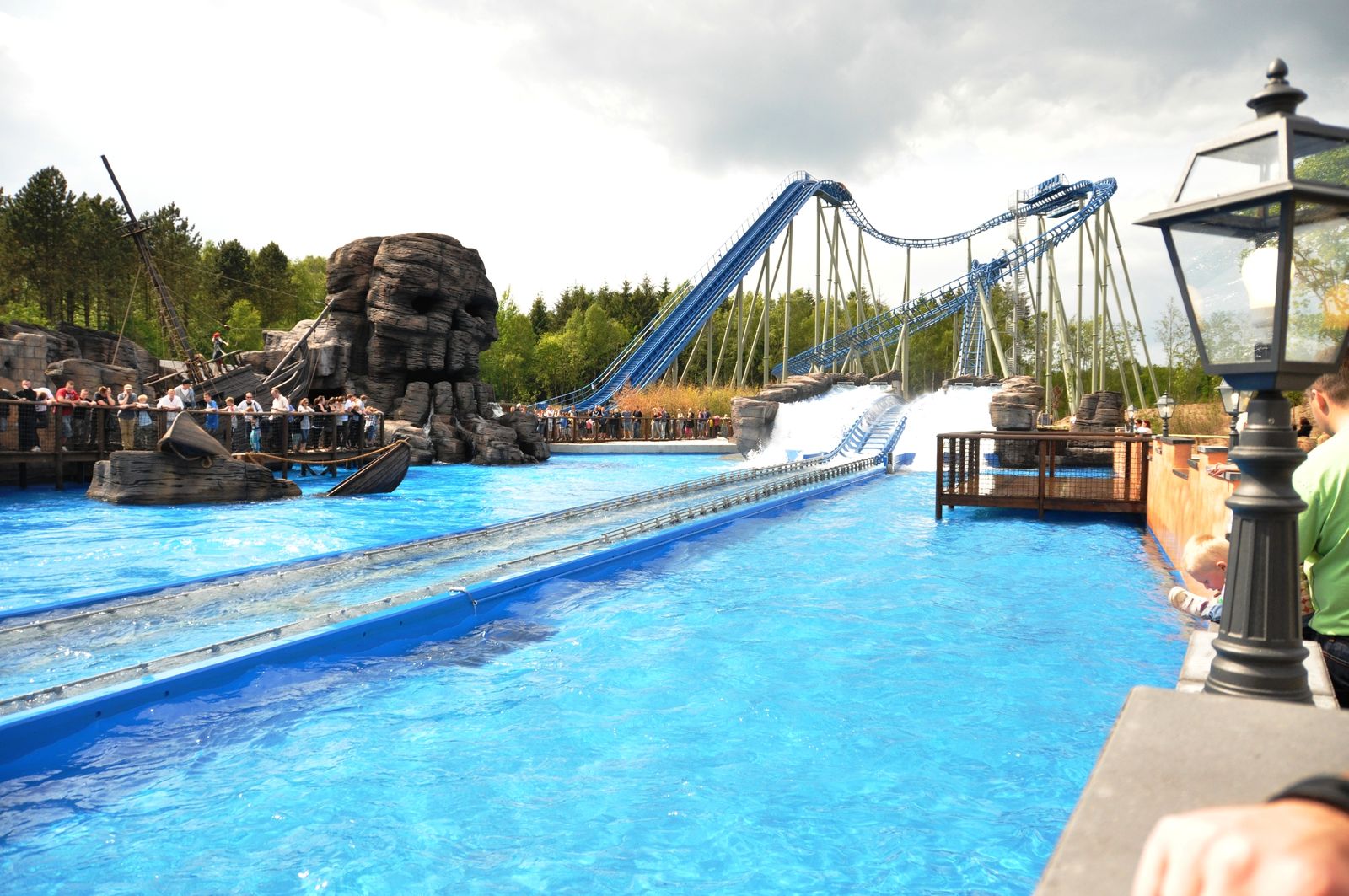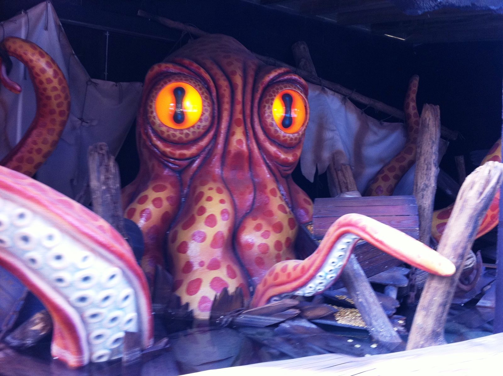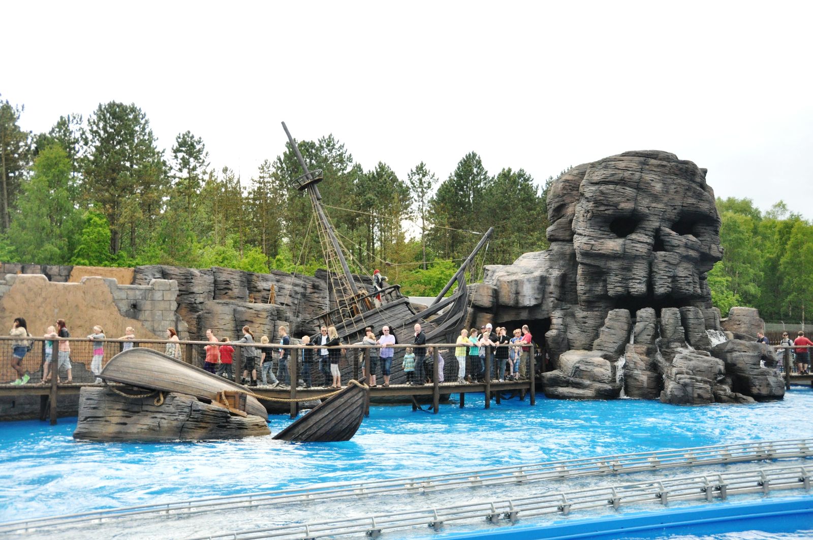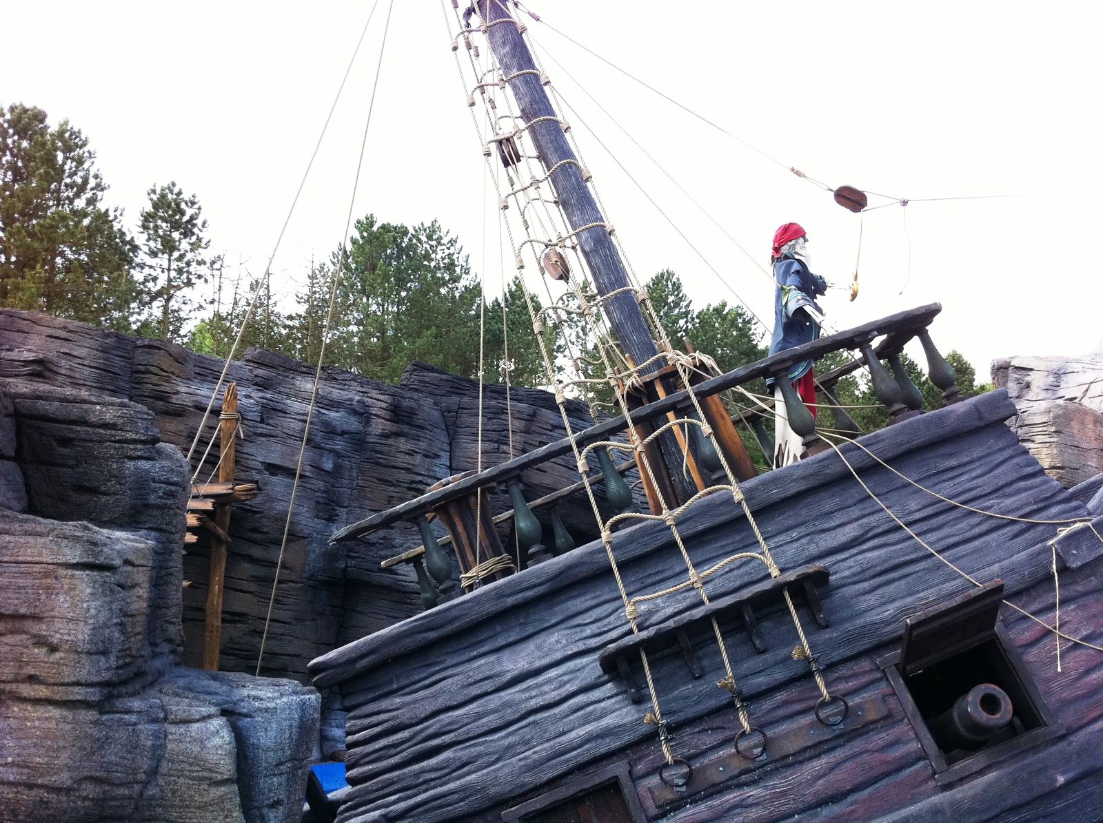 Der Wahnsinn ... Der gesamte Bereich sieht einfach nur genial aus. Highlight ist die Felsenlandschaft, in der auch einige gestrandete Schiffe zu finden sind, durch die auch die Queue geführt wird. Zwischen den Felsen kommt man vorbei an diversen gestrandeten Schiffswracks. Und auch die Station ist im Inneren mit vielen kleineren Objekten unheimlich authentisch gestaltet. Sehr genial ist auch, dass die Wartenden in der Queue einen Blick auf die Anlage und auf den Splash haben. Während der Fahrt durch die Felsen begegnet man einigen toten Piraten, und auch eine Krake läuft einem über den Weg.