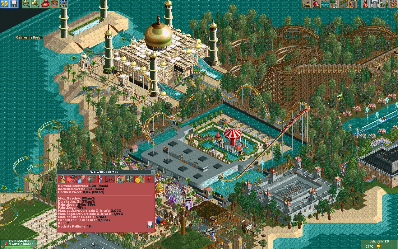An der Holzachterbahn wirst du wohl nichts ändern können bzw. du müsstest die Intensitätsrate noch um 1-2 drücken, dann könnte es klappen. Nächstes mal einfach den Punkt rauslassen, dass die Besucher nur langsame Fahrten mögen.