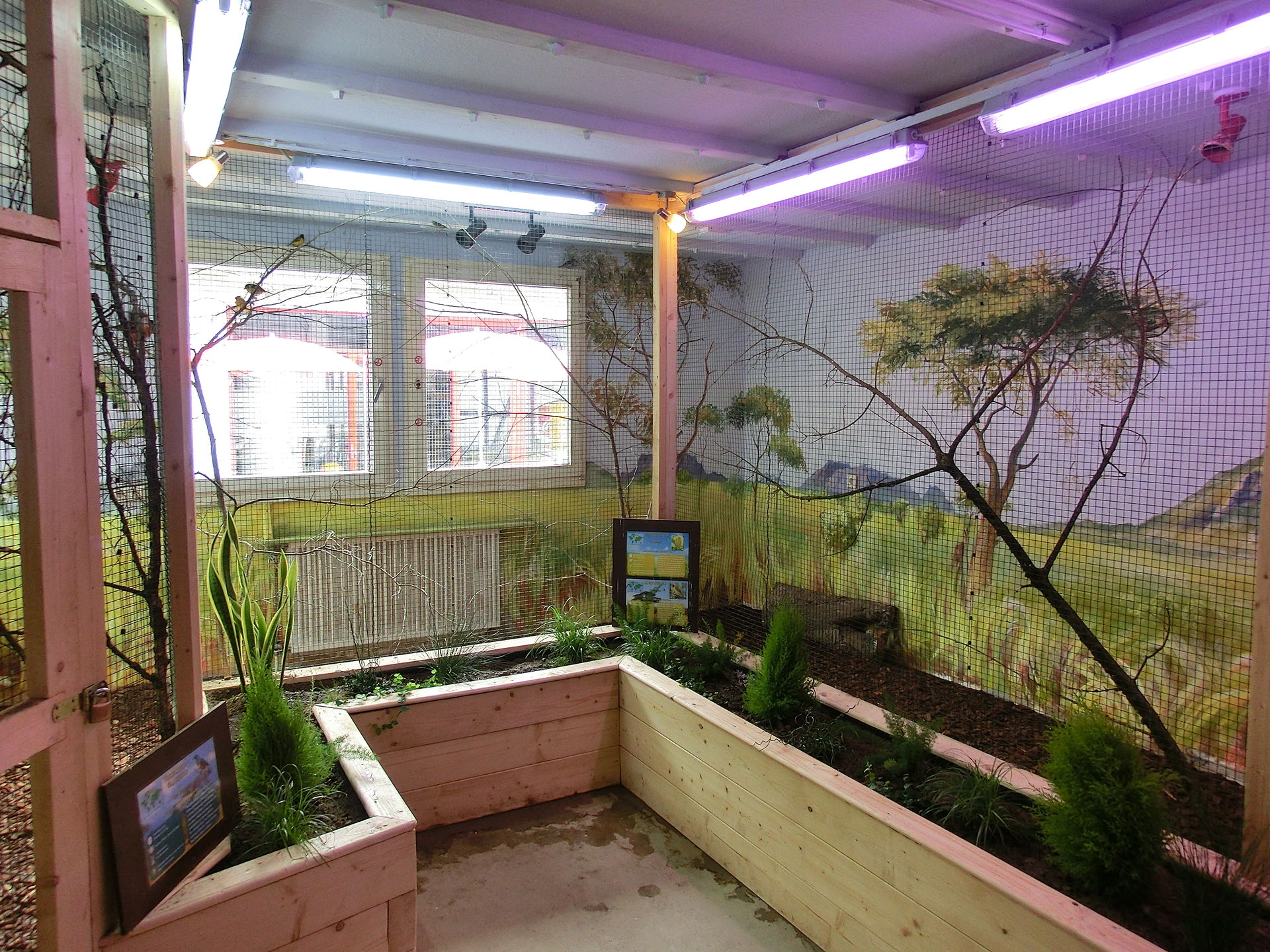 In der ersten "Tier-Halle" gab es einige Vogel-Volieren zu sehen und eine sehr kleine "Freiflug-Halle" zusehen mit nen paar Schildkröten und Federviech.
