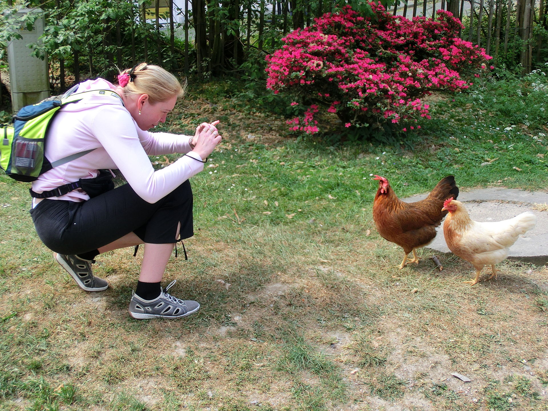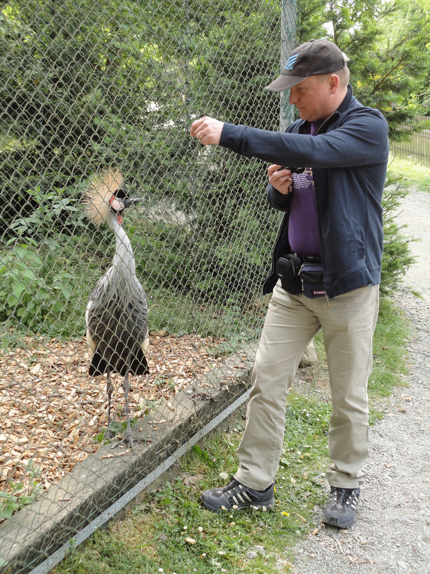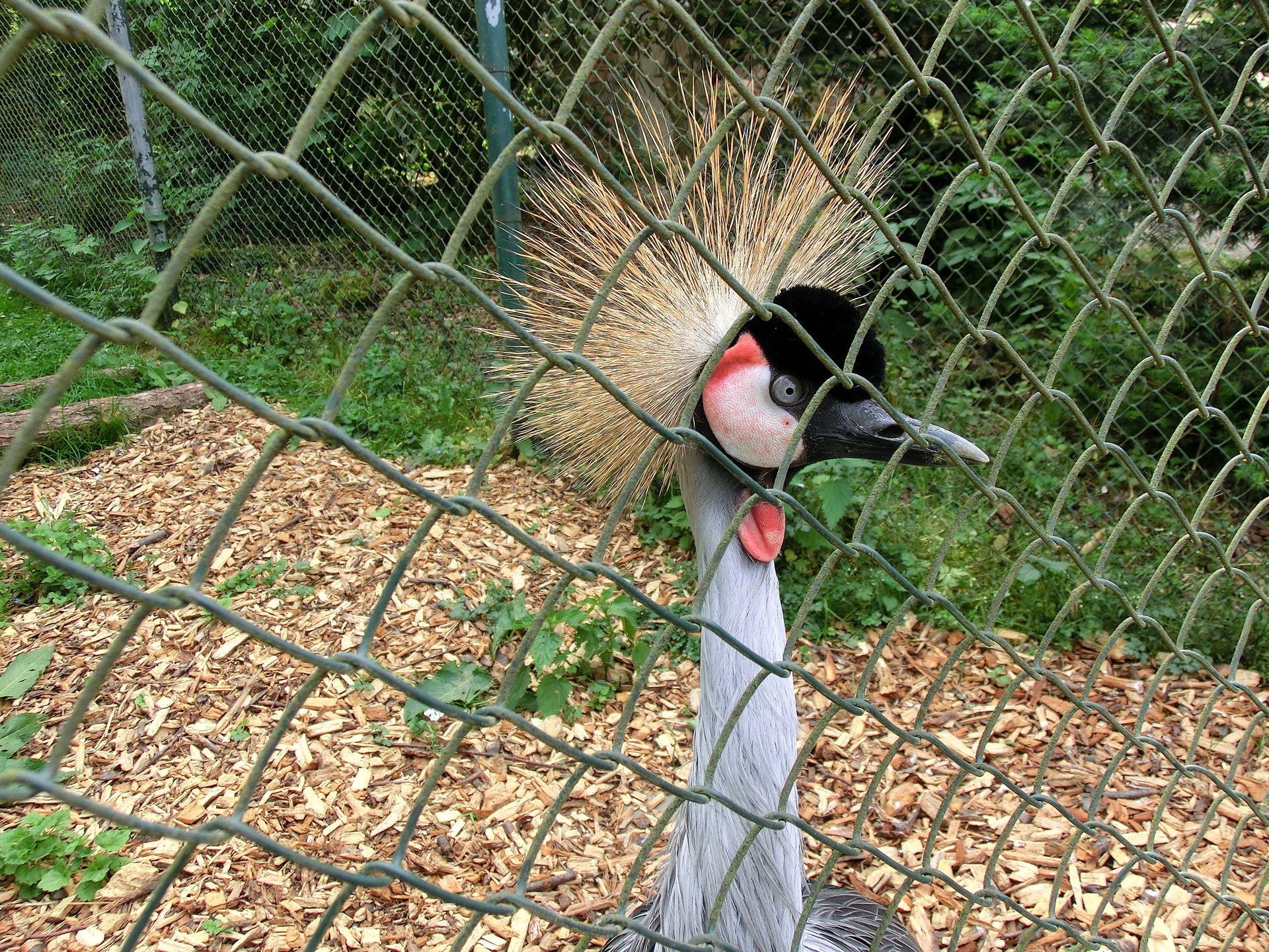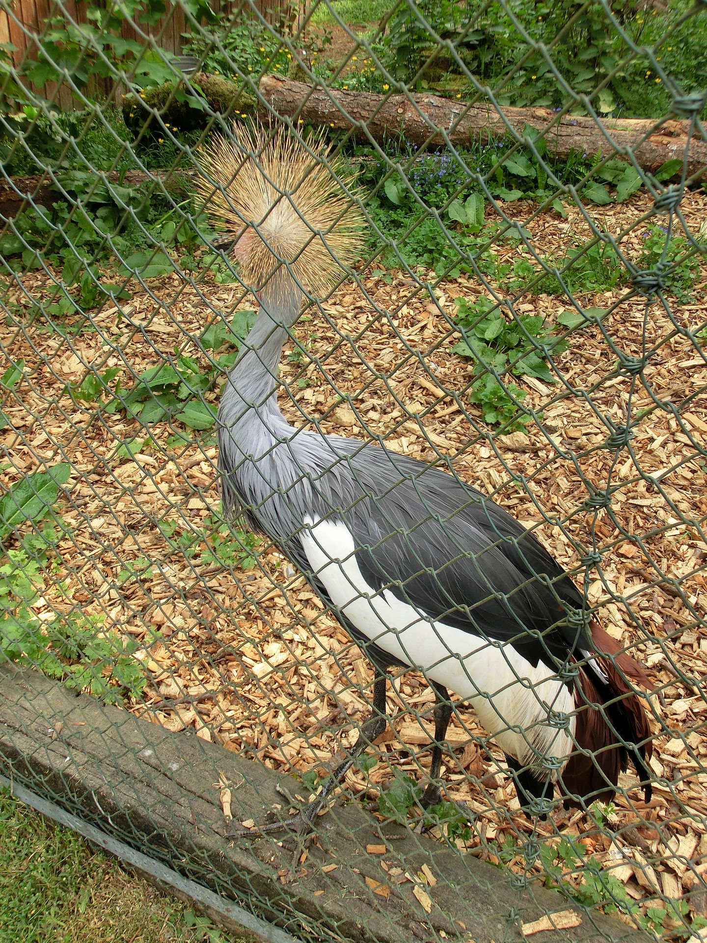 Der Kranich war ziemlich zutraulich und kam sofort auf uns zu als wir an den Zaun traten. Aber gekrault haben wir ihn nicht.