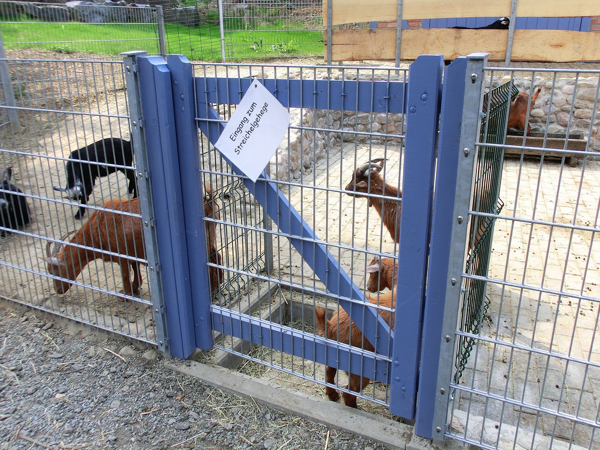 Das Streicheltier-Gehege scheint noch neu zu sein. Aber anscheinend war es zu schwierig das Schild bzw. Zettel gerade aufzuhängen.