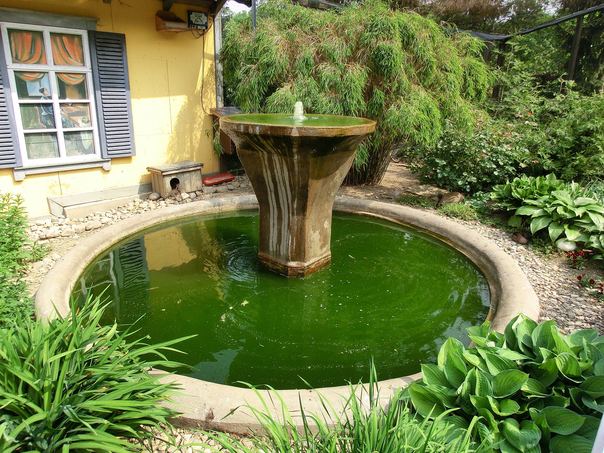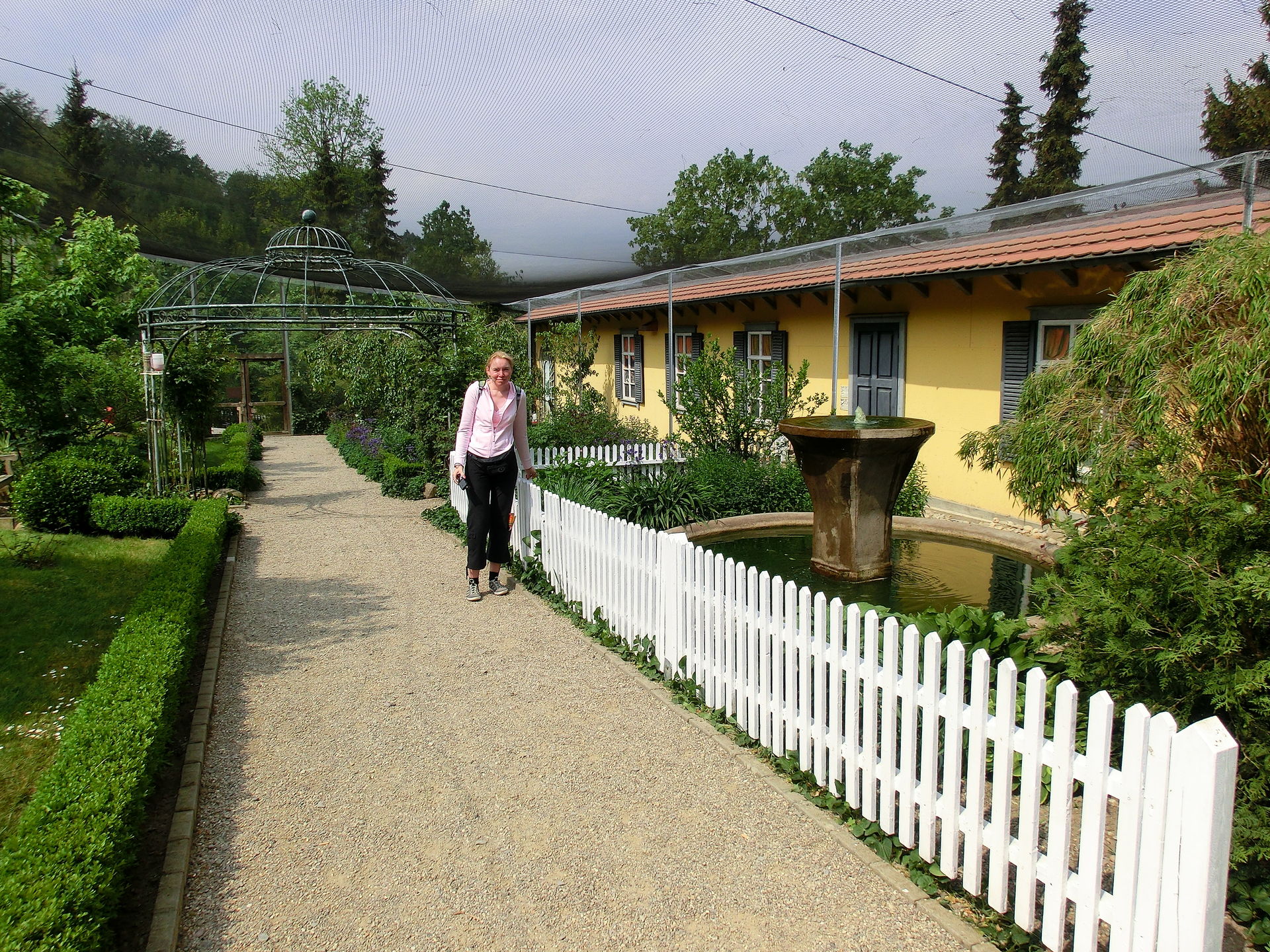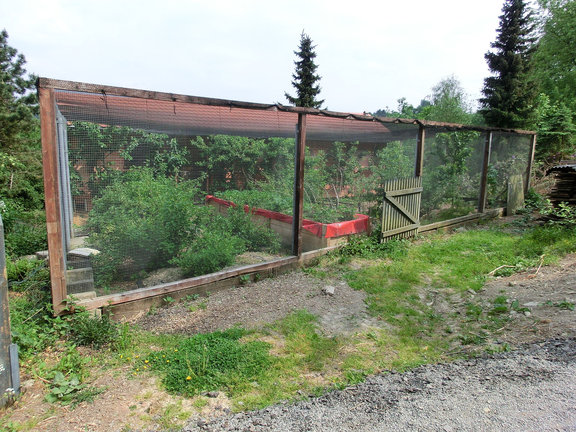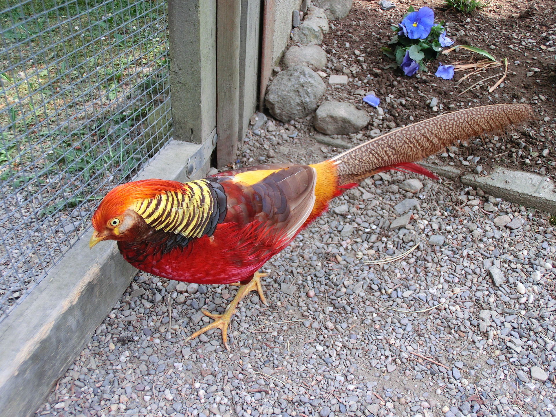 Eines der schöneren Gehege mit Tauben und Goldfasan.