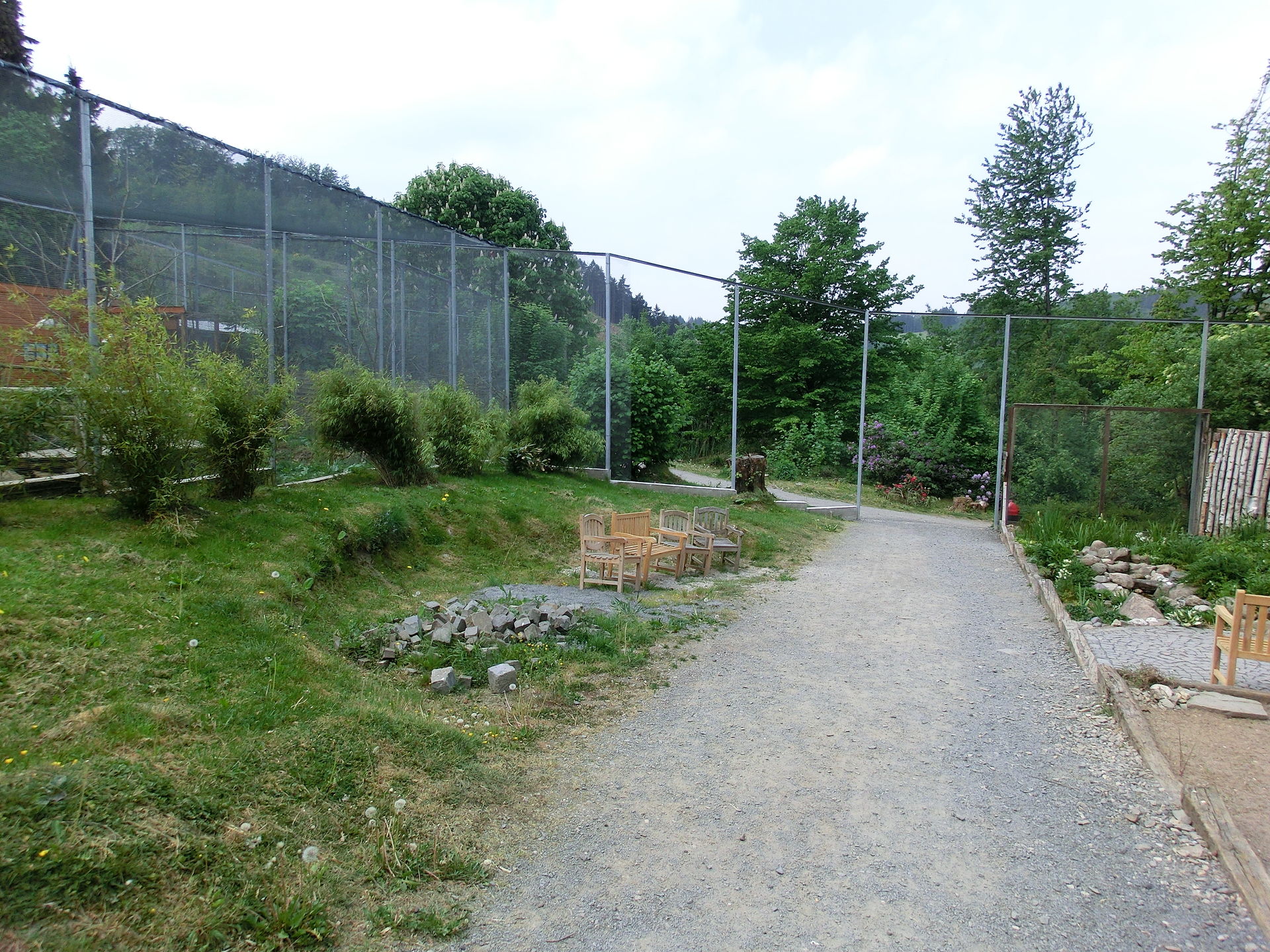 Das Eulen-Gehege sieht schon etwas heruntergekommen aus, kann aber auch sein das das so gewollt ist.