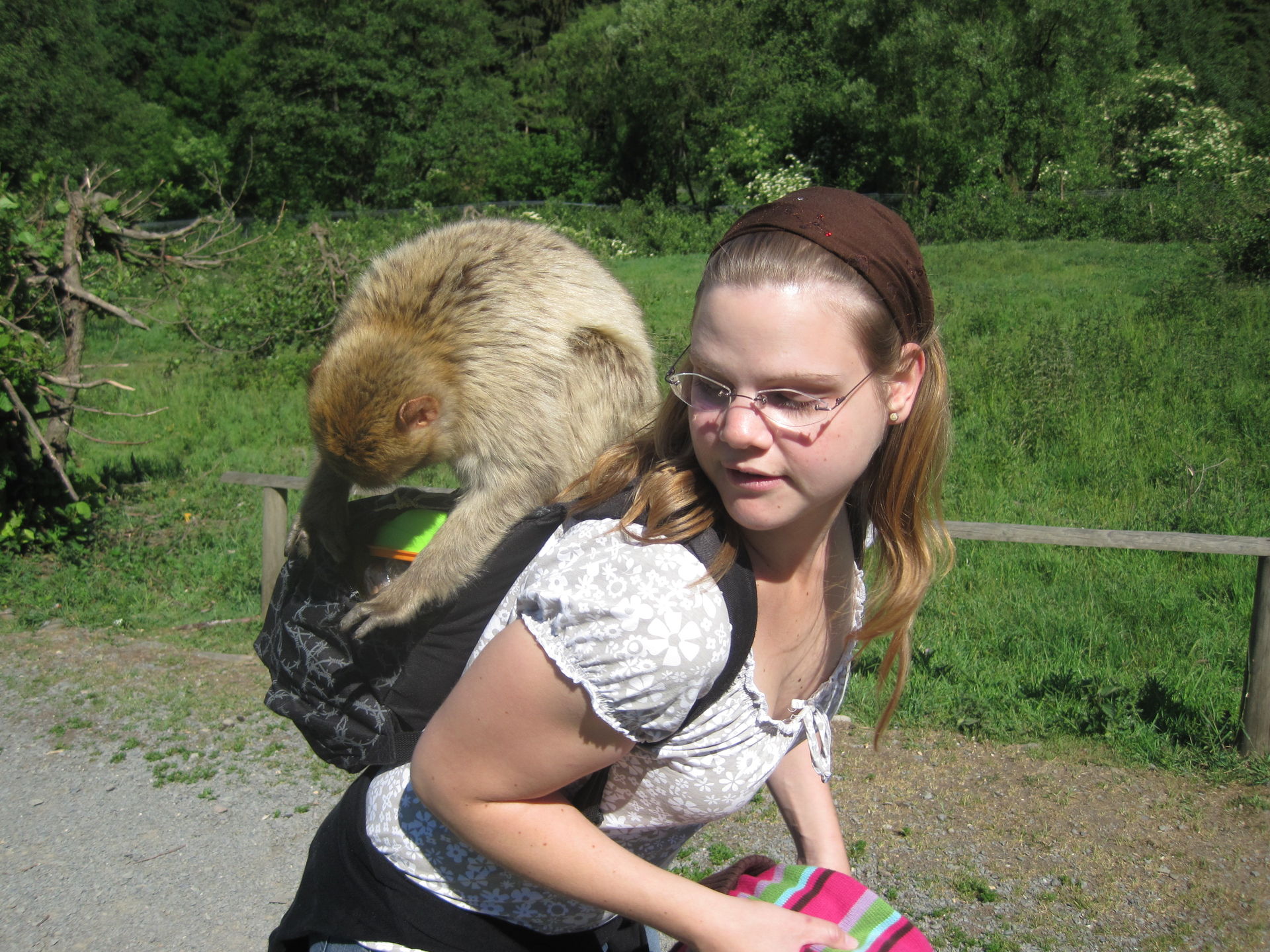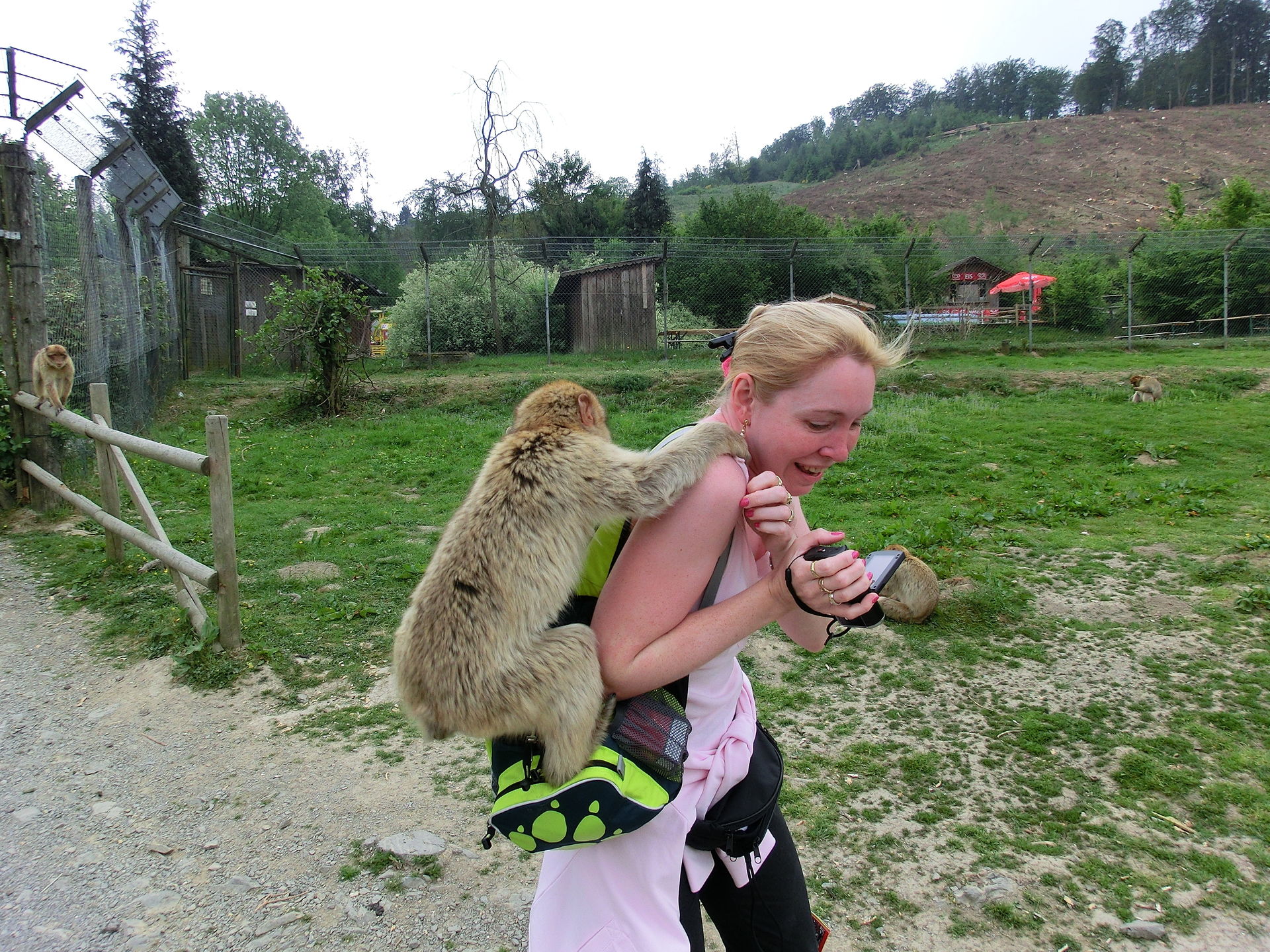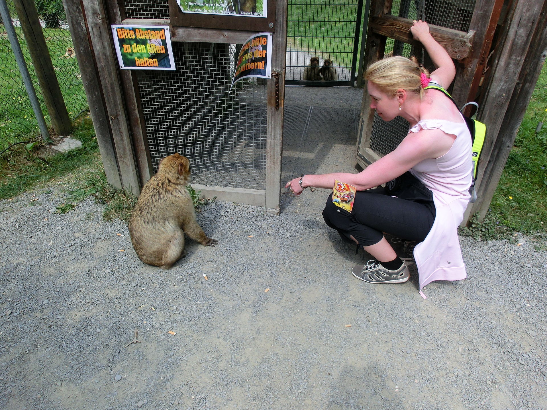 Im Affen-Freigehege kann man mit Affen auf Tuchfüllung gehen was Steffi wohl nicht so gefallen hat.
