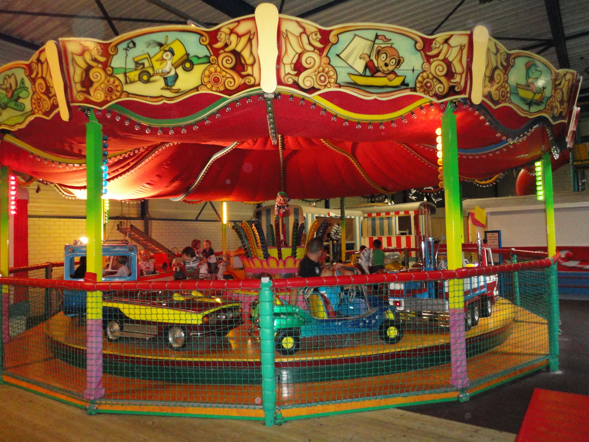 Nebenan in einer weiteren Halle gibt es einen Kinderspielpark auch mit einigen Kiddie-Rides wie Karussel, Turm, Rutsche sowie einen Gastronomie-Bereich.