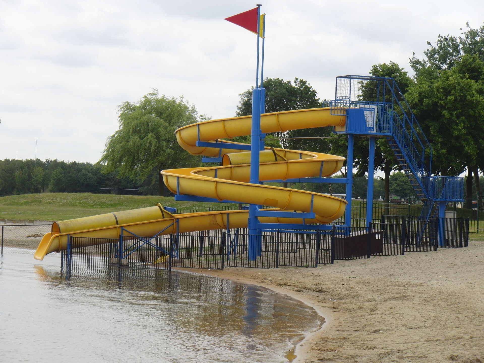 Rechtsseitig das Strandbad inkl. kleiner Wasserrutsche.