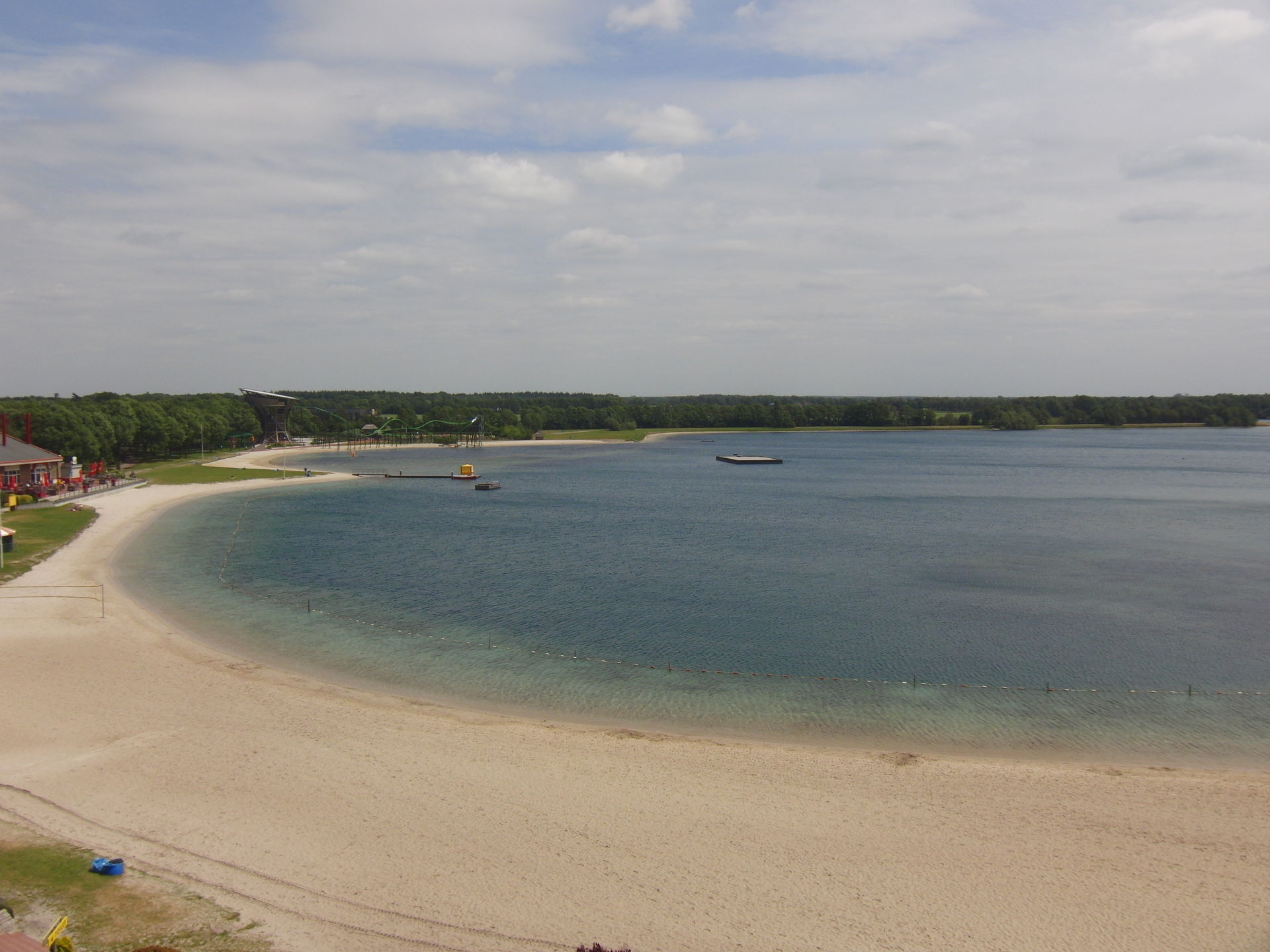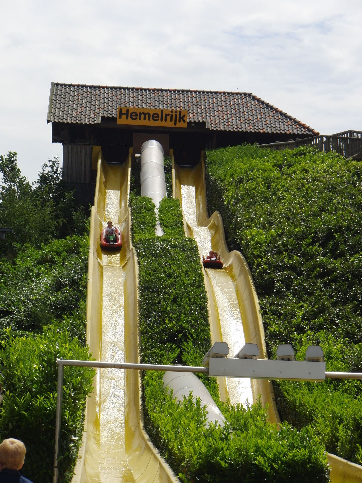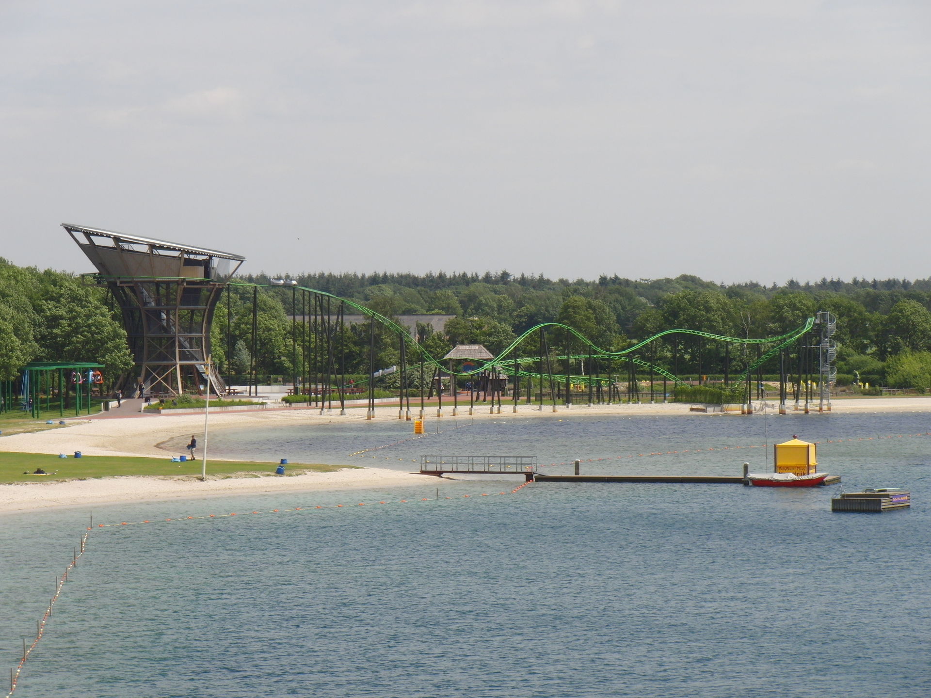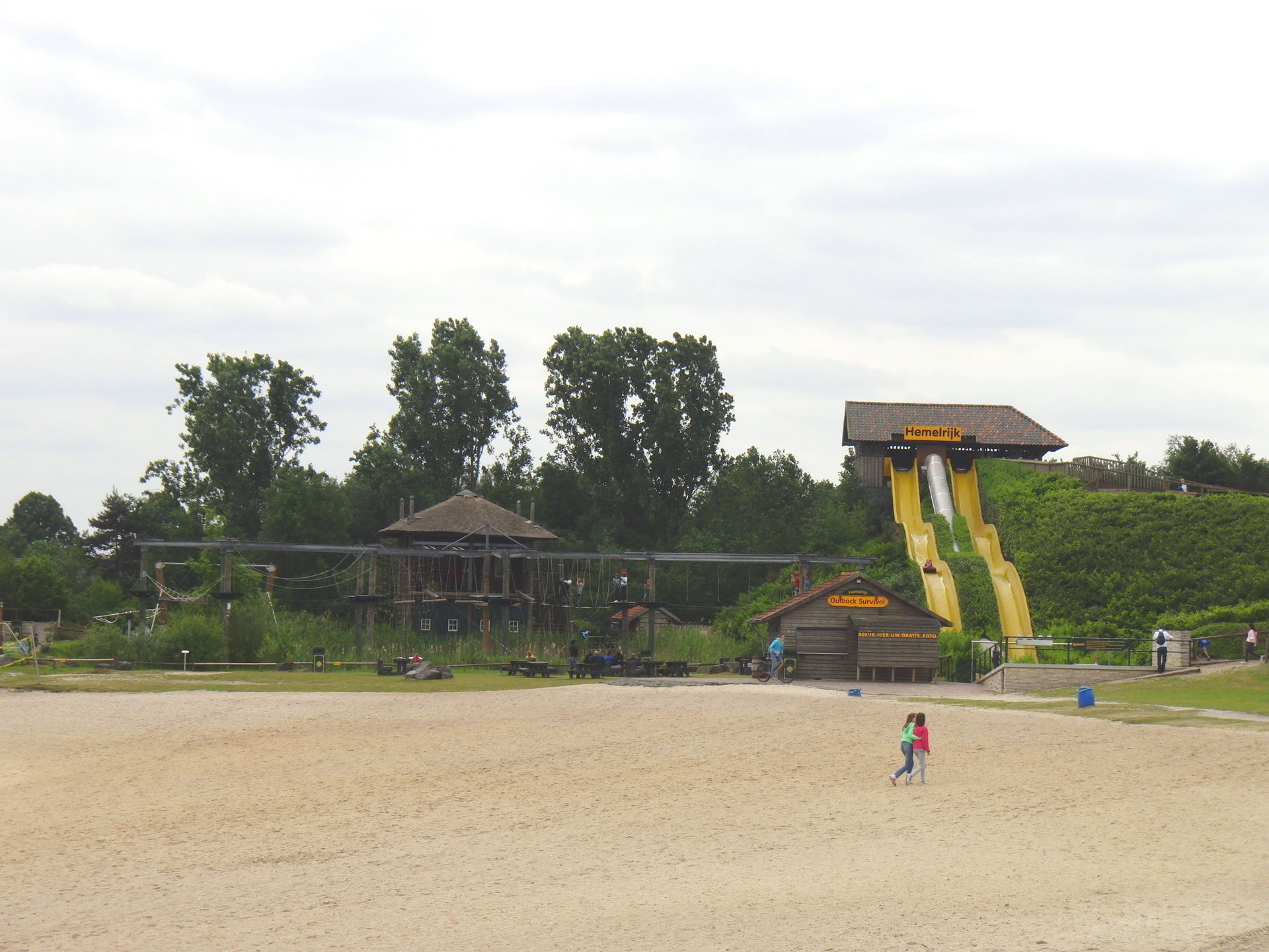 Hier zusehen links neben der Wasserrutsche der Kletterpark.