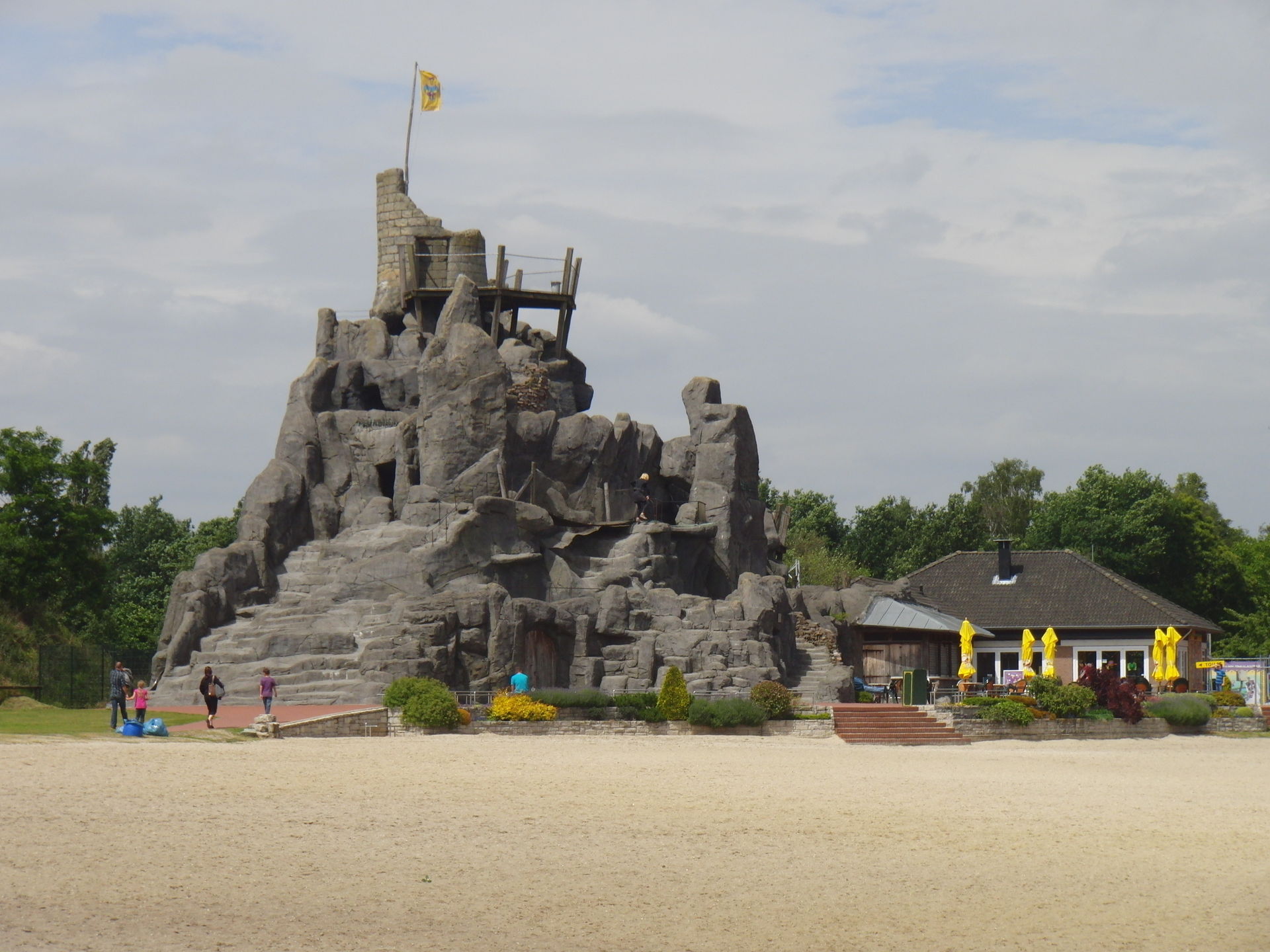 Vom Parkplatz aus gut zu sehen die "Kletterburg".