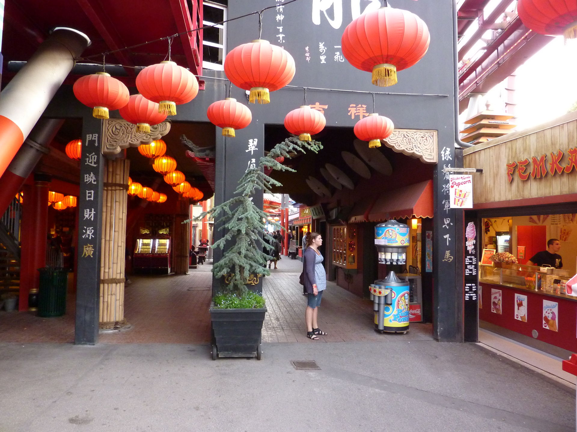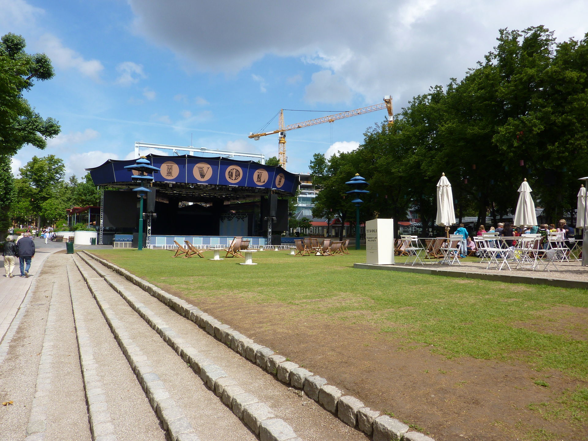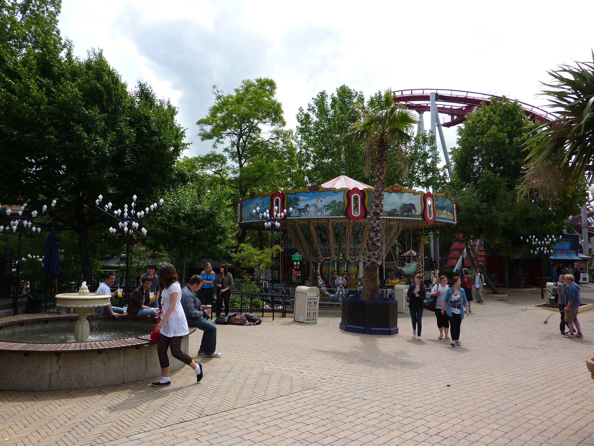 Wenn man den Park durch den Haupteingang betritt sieht man erstmal viele Restaurants und Bühnen, auf denen regelmäßig Konzerte und andere Veranstaltungen stattfinden.