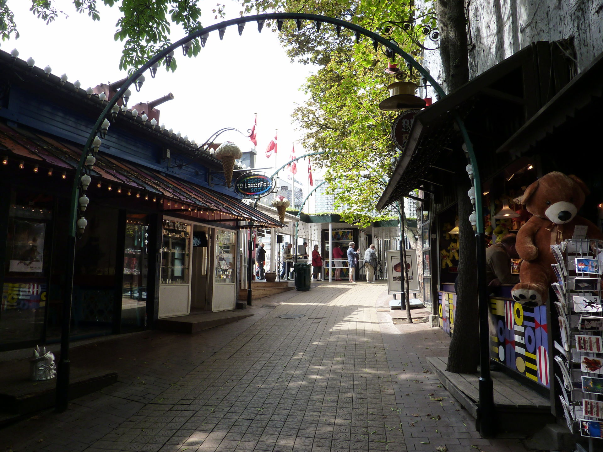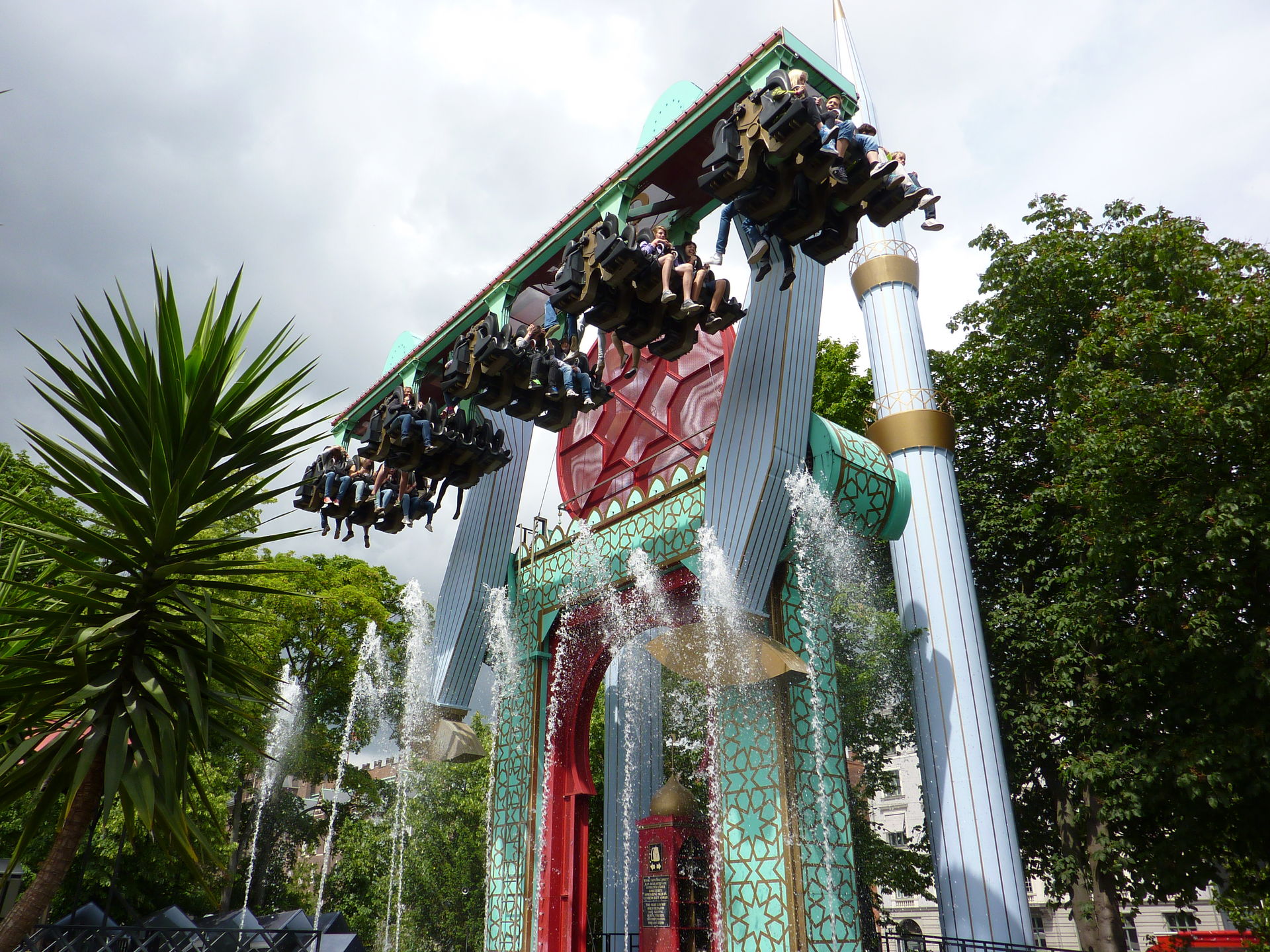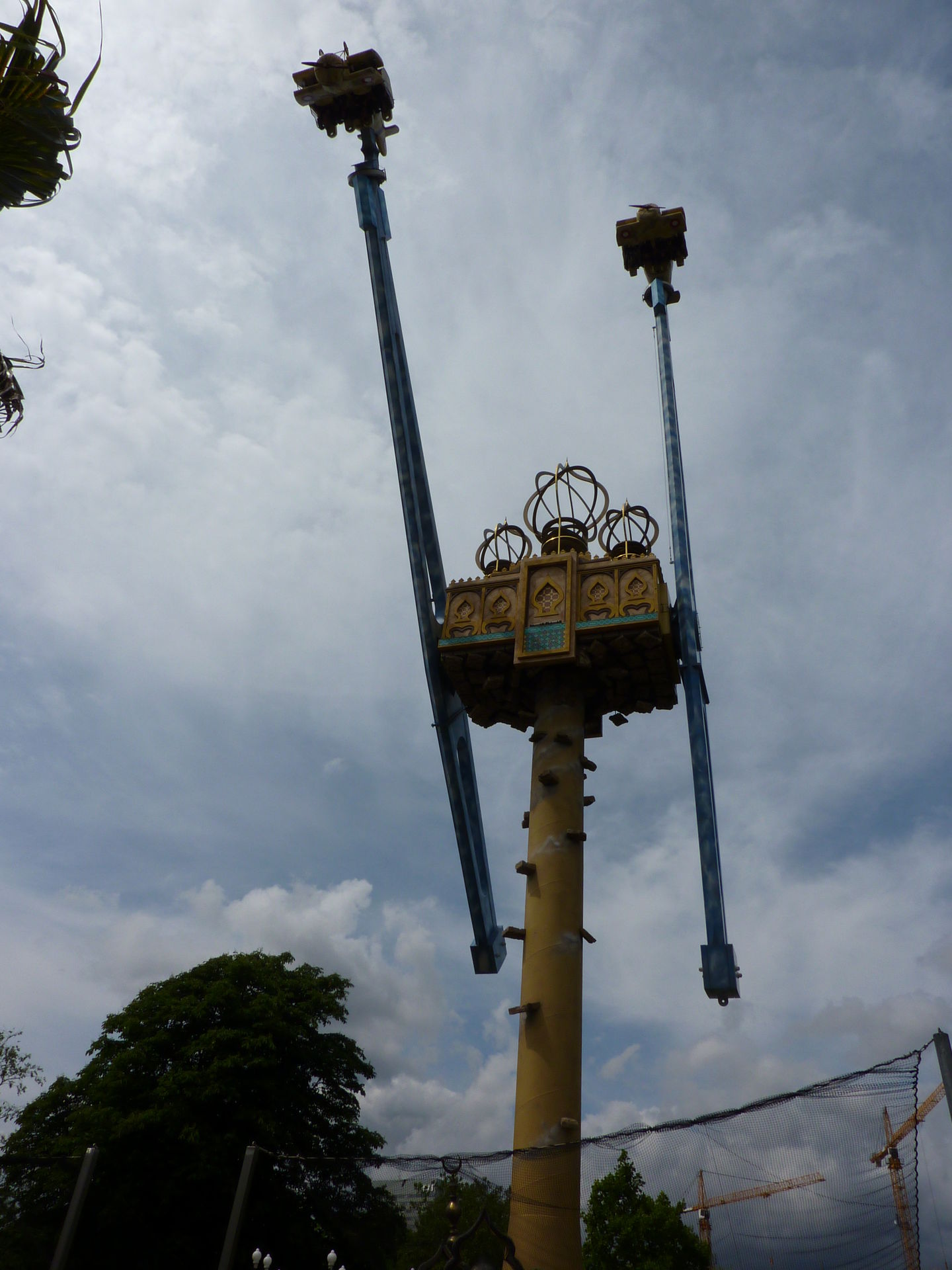 Wenn man den Park durch den Haupteingang betritt sieht man erstmal viele Restaurants und Bühnen, auf denen regelmäßig Konzerte und andere Veranstaltungen stattfinden.