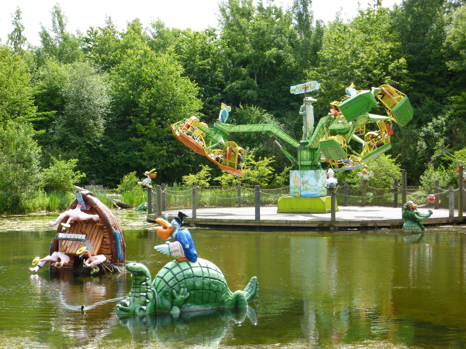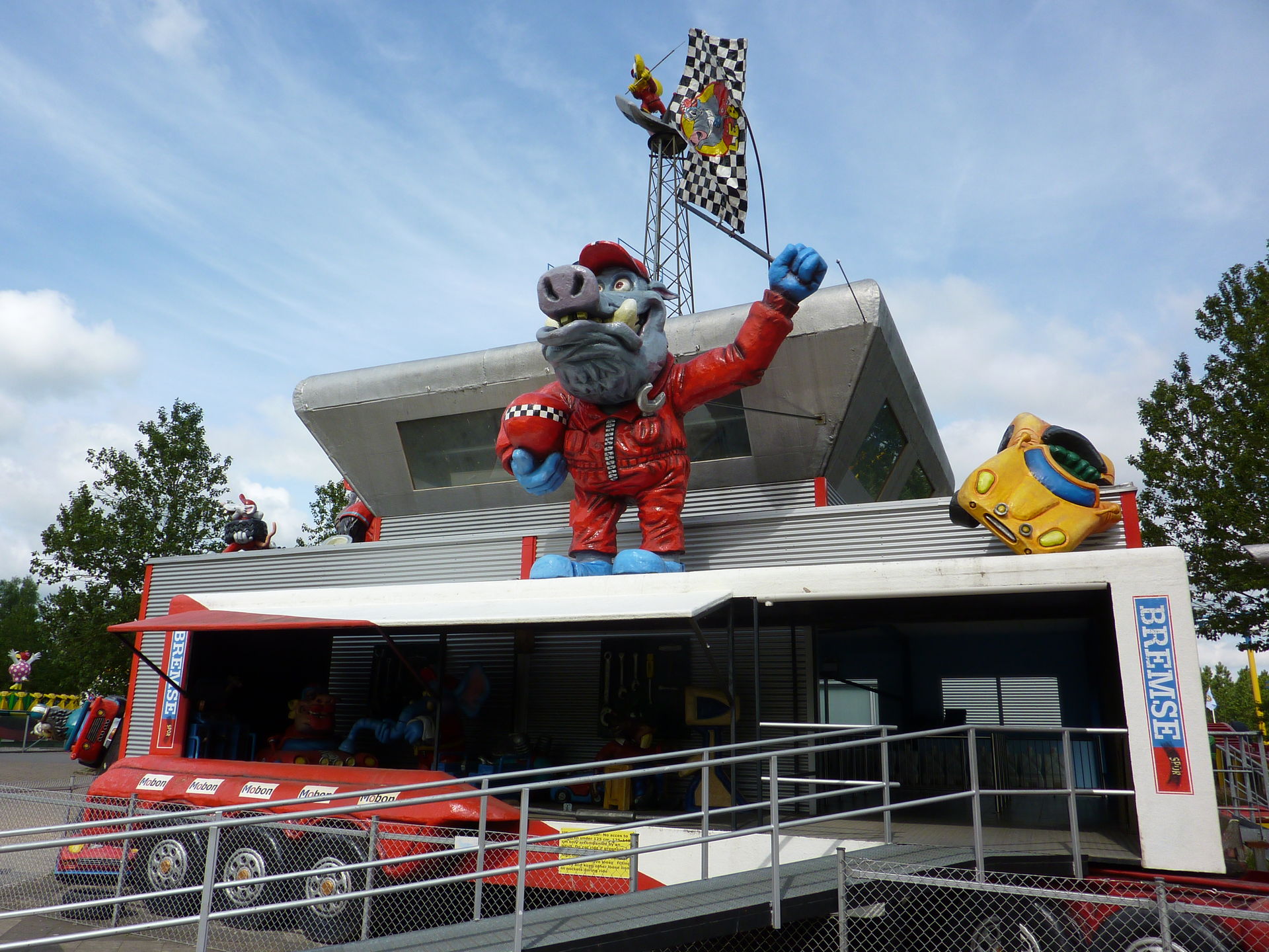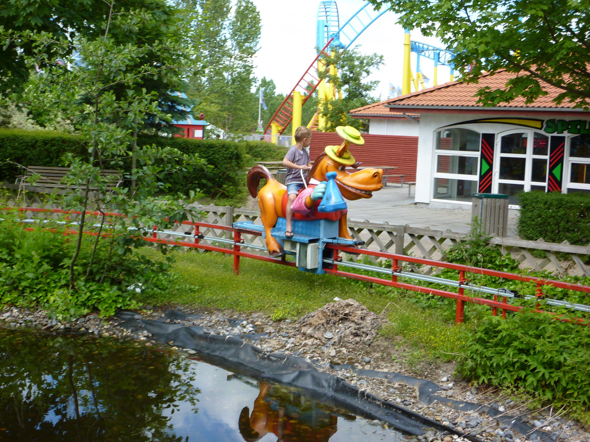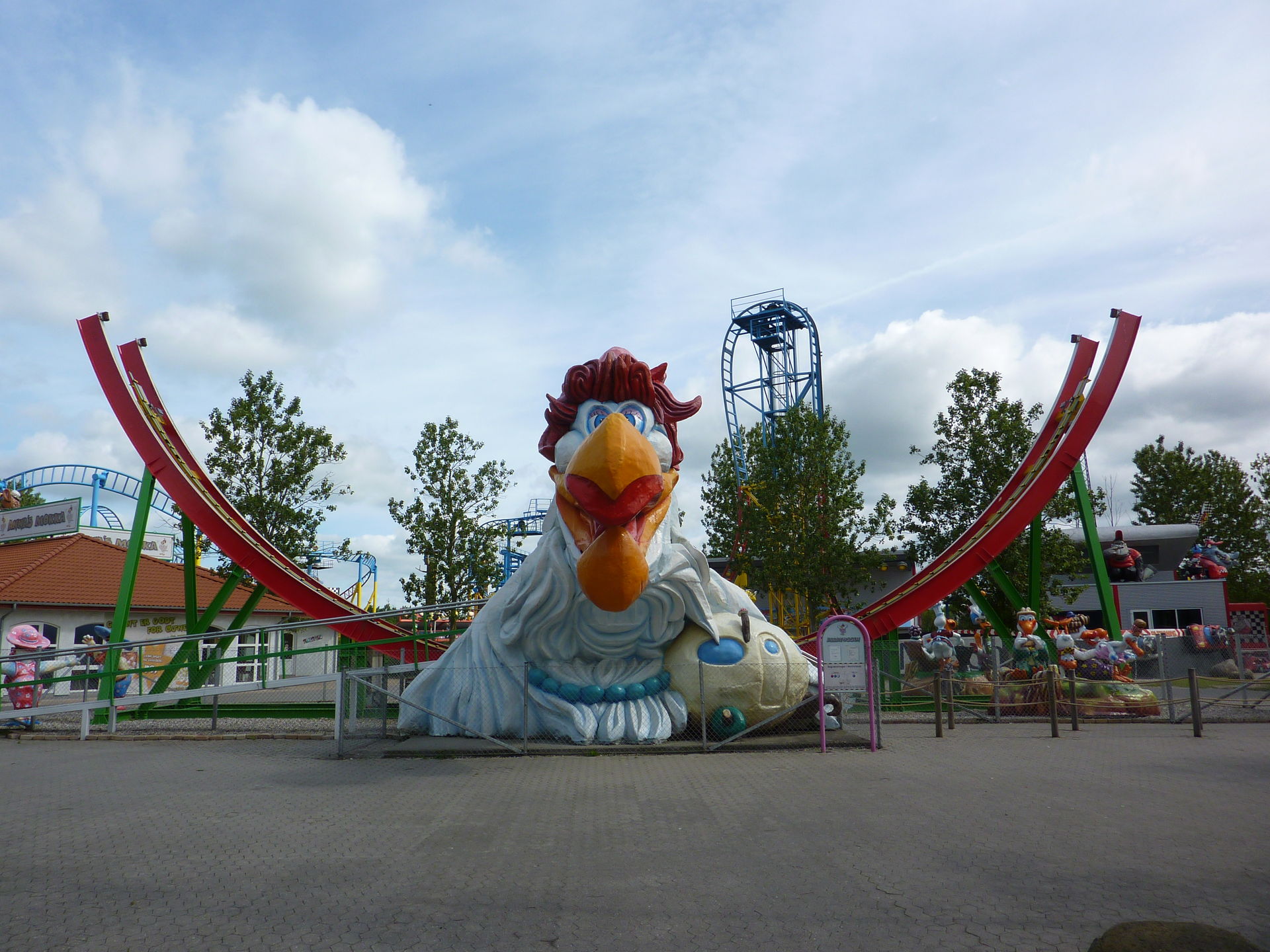 Von einer Achterbahn in deren Innenraum grade ein überdimensionaler Hund sein Bein hebt bis zu einem Eurofighter dessen Name Wildschwein bedeutet findet man hier viele "andere" Themingansätze. Aber durchaus eine nette Abwechslung zu den sonst bekannten Themen wie "Wild West" oder "Chinatown".