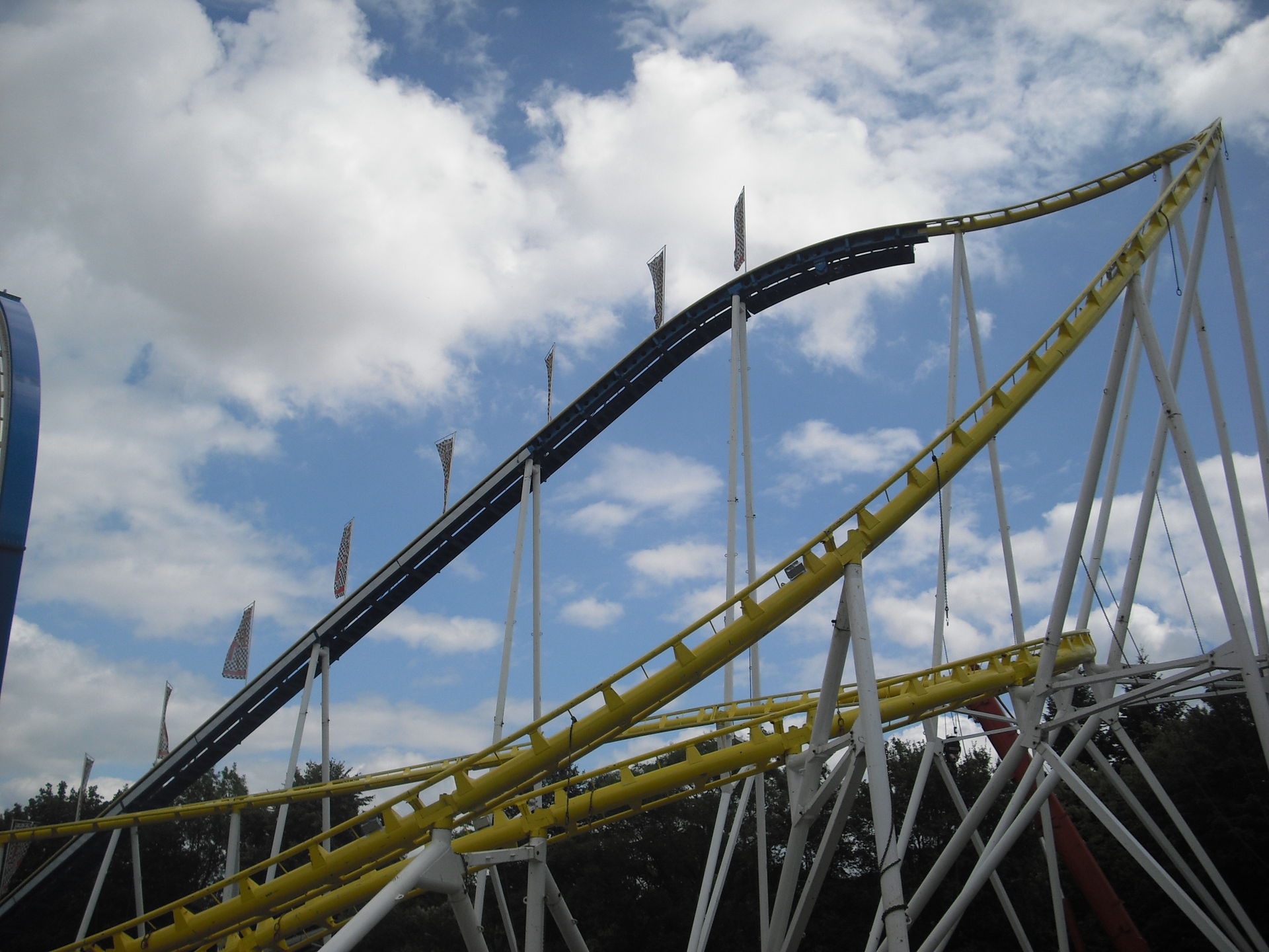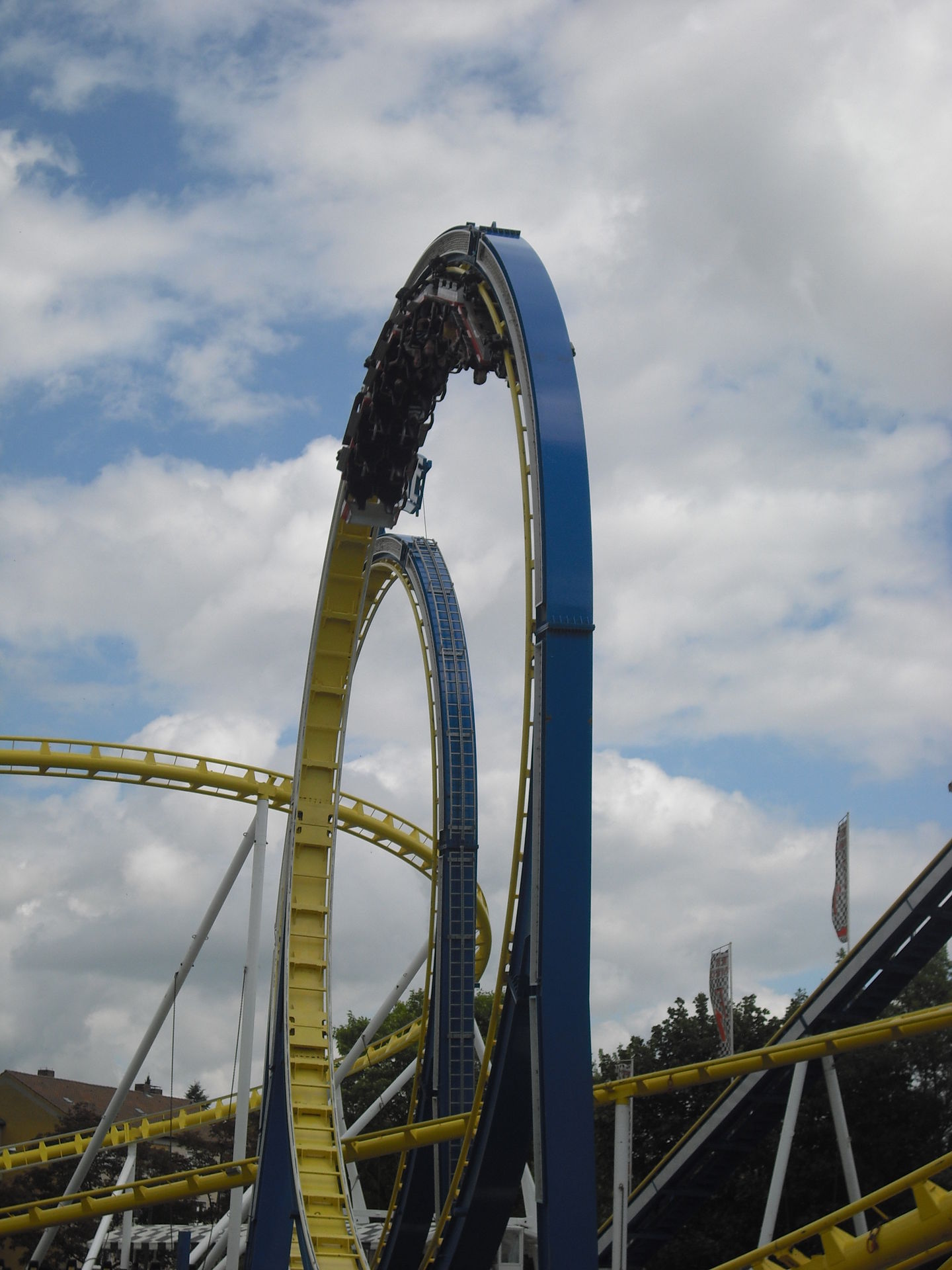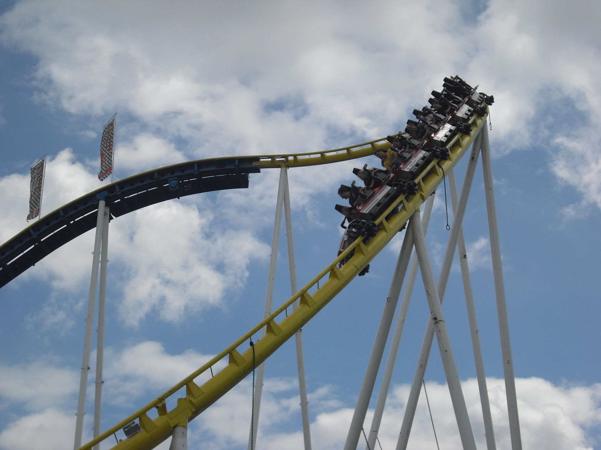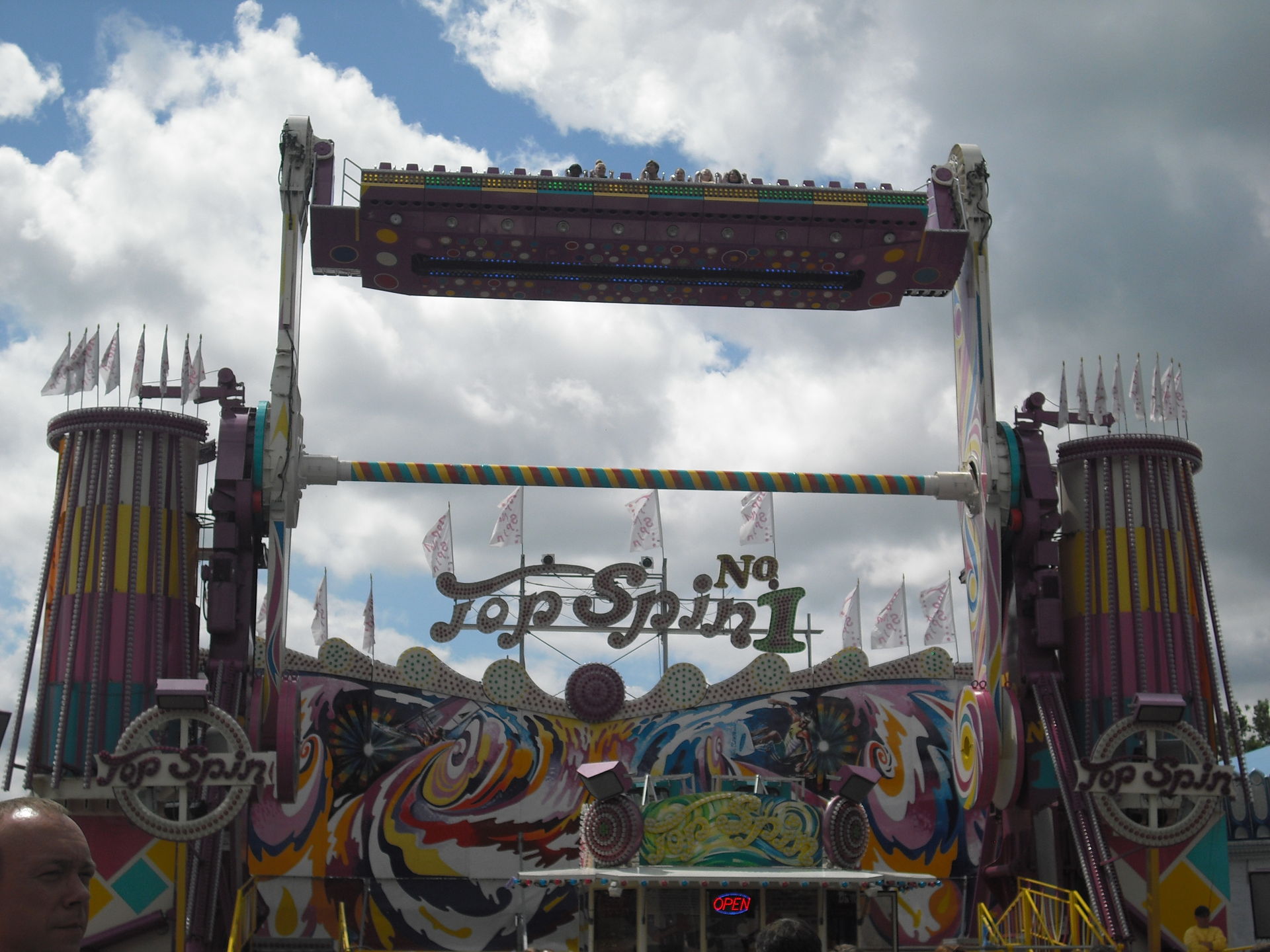 Zum 2.Mal in Schweinfurt; das 30 Meter hohe Überkopffahrgeschäft "High-Energy" von Kaiser.