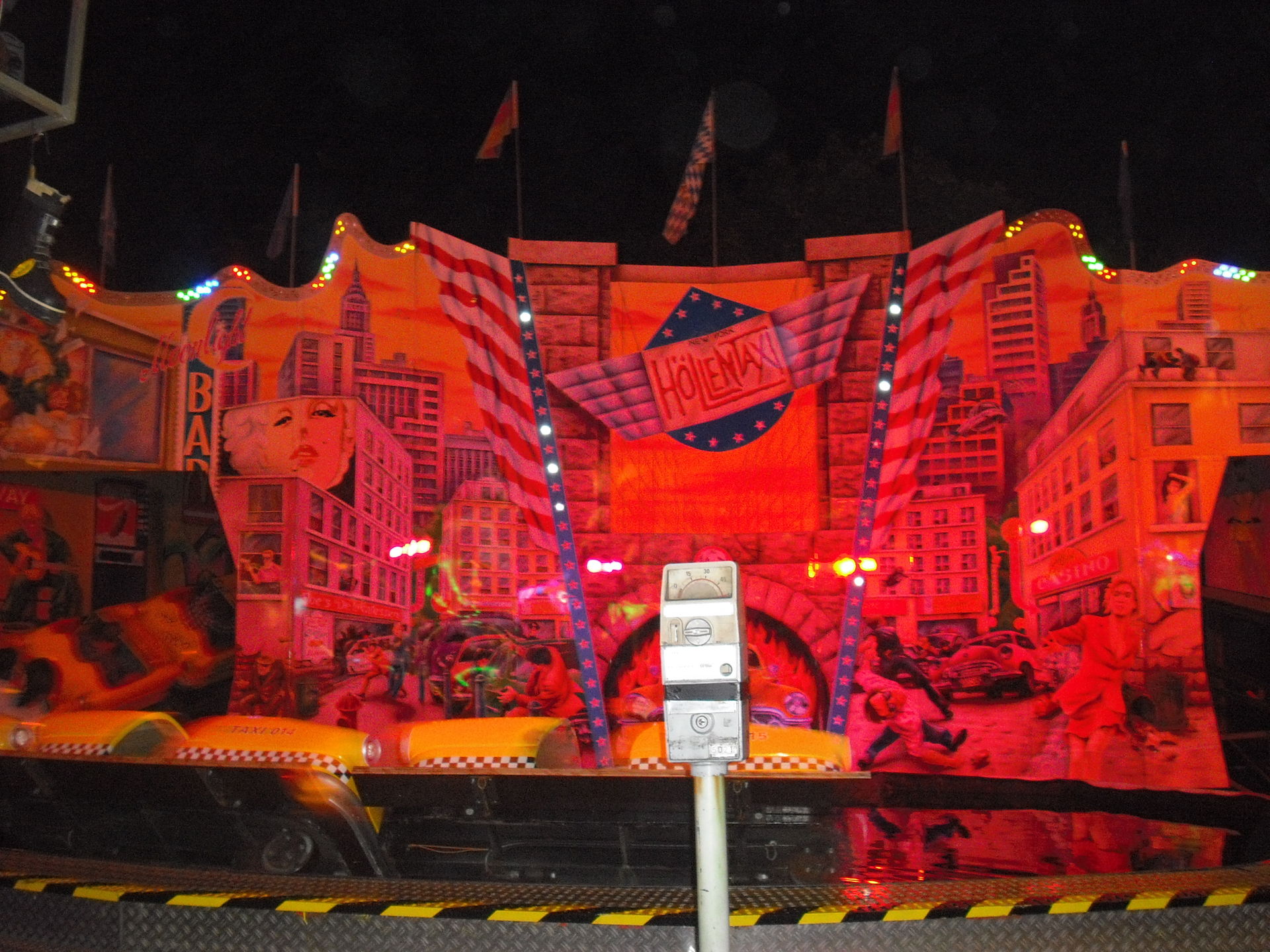 Neuheit; das "Höllentaxi" von Senk mit seinen vielen Effekten (Wasser, Feuer und Nebel).