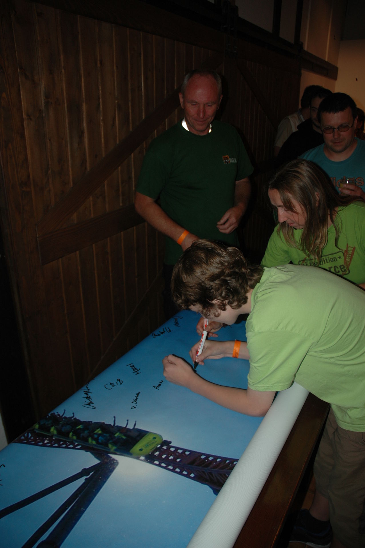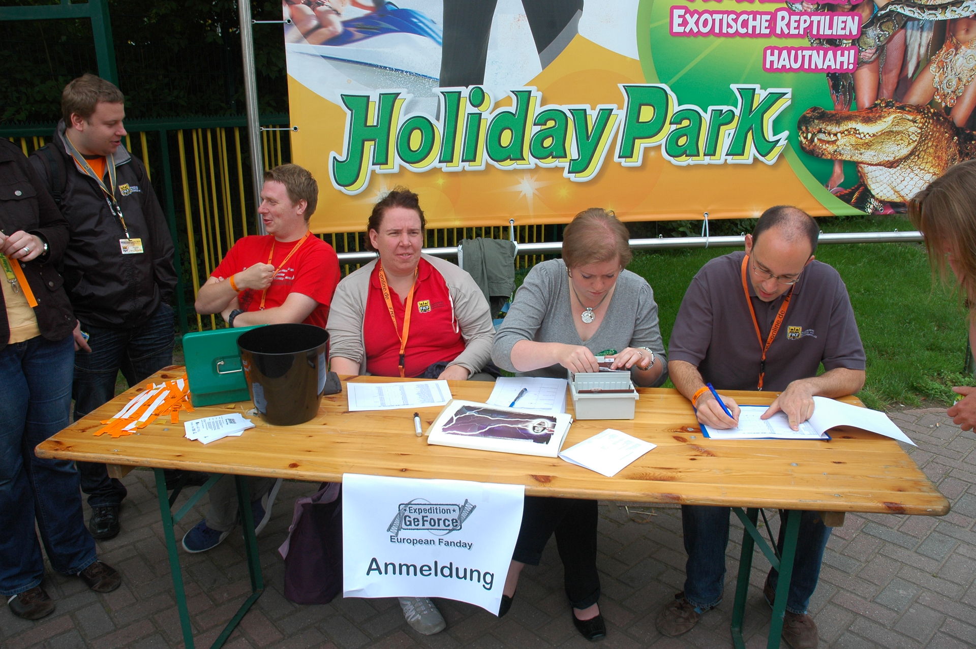 Am 25. Juni 2011 trafen sich rund 90 Teilnehmer um am European FanDay im Holiday Park teilzunehmen. Als Anlass galt das 10 jährige Jubiläum des Megacoasters "Expedition Geforce" und der 40. Geburtstag des Holiday Parks. Ankunft der Teilnehmer lag zwischen 10 und 12 Uhr, dort erhielten sie Gutscheine und gegebenenfals ihre Eintrittskarten. Um 12.30 Uhr fand das gemeinsame Mittagessen im Selbstbedinungsrestaurant "Pfalzgraf" statt. Dort konnten die Teilnehmer ihre zehn Plopsa-Euro´s als Mittagsmenü einlösen. Nach der Stärkung im Pfalzgraf stand der nächste Treffpunkt um 14.40 Uhr am Aquastadion auf dem Programmpunkt, um gemeinsam die Wasser-Stunt-Show zu begutachten. Direkt nachdem die Show zu Ende war, fand um 16.30 Uhr in der Burgscheune die Gesprächsrunde mit Herrn Mallasch statt. Dort erfuhren die Teilnehmer von Herrn Mallasch das komplette Konzept von Studio 100 und erhielten einen kleinen Einblick ins kommende Jahr 2012. Natürlich wurden auch offen stehende Fragen von Herrn Mallasch beantwortet. Nach dem die Gesprächsrunde beendet war, wurden vom Holiday Park gestiftete Geschenke, wie zum Beispiel; Bücher, Wickie & Biene Maja Plüschfiguren und DVD´s, verlost. Als Hightlight wurden zwei Figuren aus der ehemaligen Einschienenbahn "Tour des Fleurs" verlost. Als Abschluss erhiehlt der Holiday Park von allen Vereinen, Community´s und Informationsseiten eine überdimensionalen Geburtstags-Geschenkkarte, die von allen Teilnehmern zum Sektempfang unterschrieben worden ist. Anschließend folgte die ERT (Extra Ride Time) mit zwei Zügen um so schnellst wie möglich mehrmals die Bahn fahren zu können.