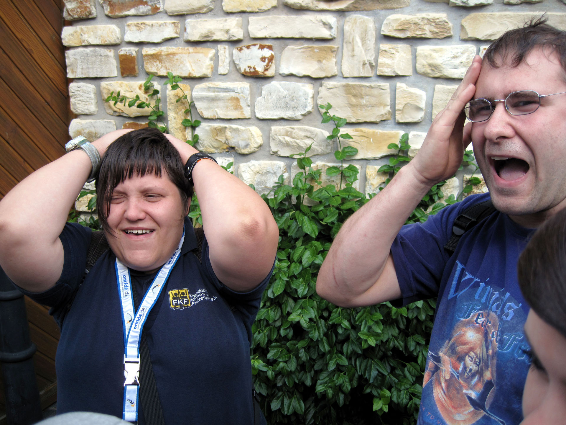 Warten auf das Event Maze für uns! Annika scheint besorgt. Wohl berechtigt. Ausgerechnet die Boo-Crew wartete auf uns!