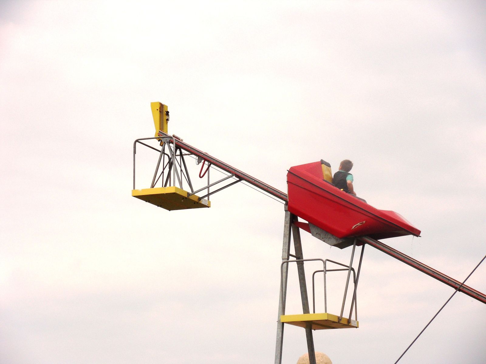 …vom Prinzip also eine Schiffschaukel auf Schienen. Die ganze Geschichte gibt es mit höherer Geschwindigkeit und hübscheren Anstrich auch ohne Schienen. Die Komet-Schaukel darf sich dann allerdings nicht Count nennen…