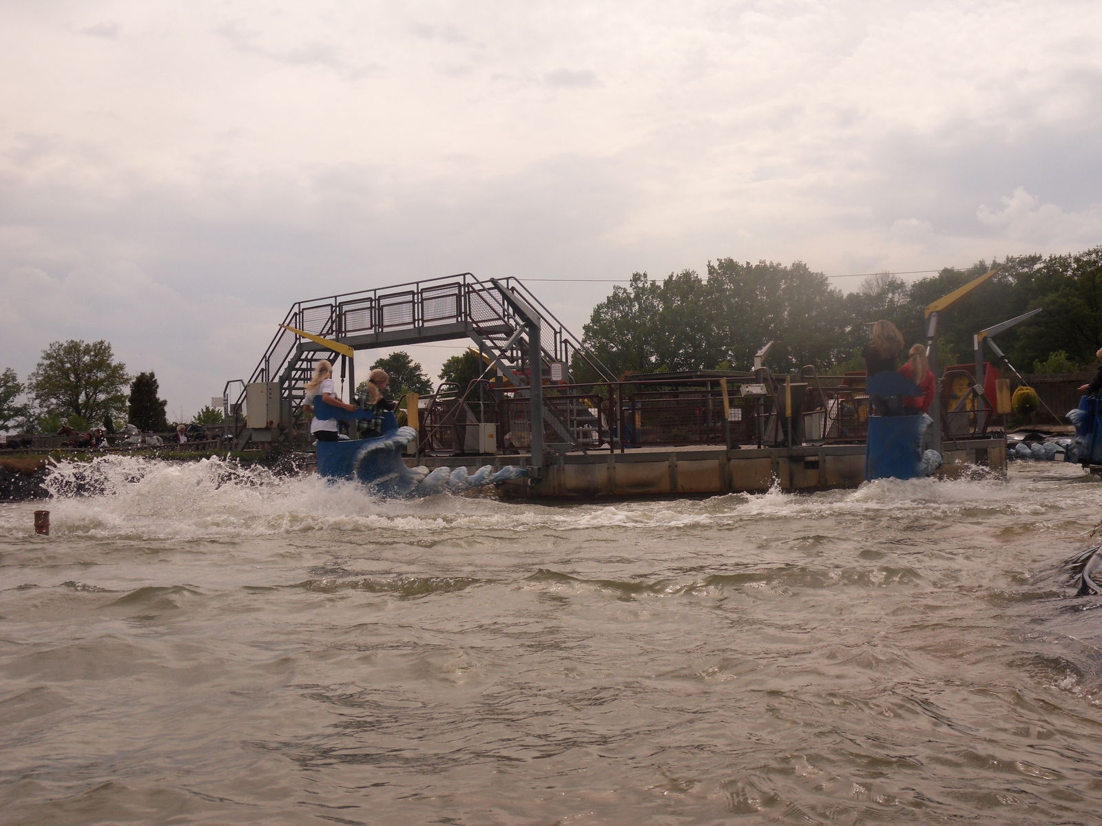 …welcher aber immer wieder Spaß macht! Eigentlich ist die Idee hinter den Wildwasserrondell-Karussells ziemlich simpel, aber die Ausschwünge und „Wer-spritzt-am-weitesten-vielleicht-sogar-bis-auf-den-Weg“-Wettbewerbe machen diese Anlage hier auch trotz 08/15-Aufmachung zu einer wahren Fun-Maschine!