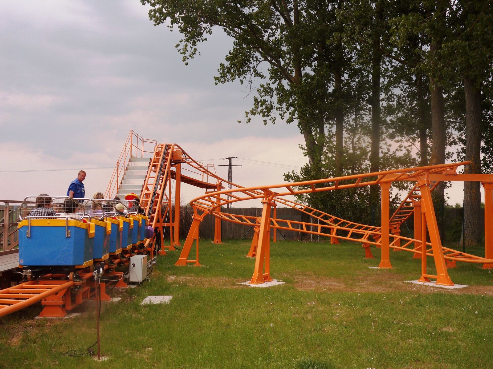 Die orangefarbene Familienachterbahn von Zamperla wurde im August letzten Jahres eingeweiht und der Parkbesitzer ist mächtig stolz darauf, endlich eine „richtige“ Achterbahn in seinem Garten stehen zu haben.