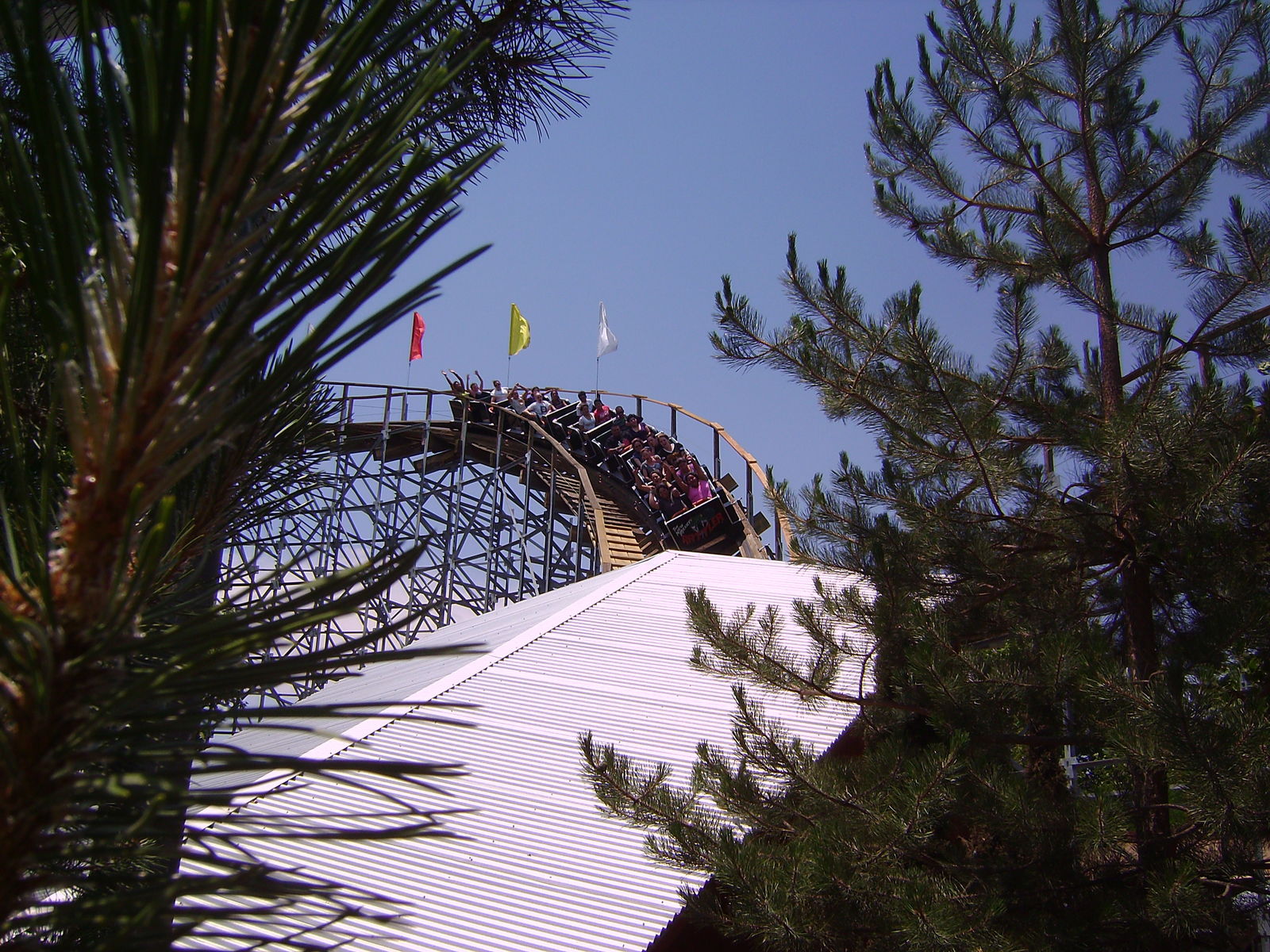 Wie fast immer zieht es uns zuerst zu den Achterbahnen. Den Vortritt bekommt heute das Exemplar aus Holz. Das Besondere an dieser CCI Bahn ist, dass sie insolvenzbedingt nur halb vom Hersteller fertig gestellt wurde. Den Rest hat der Park komplettiert. Für einen Park dieser Größe eine Meisterleistung und man merkt es der Bahn beim Fahren nicht an!