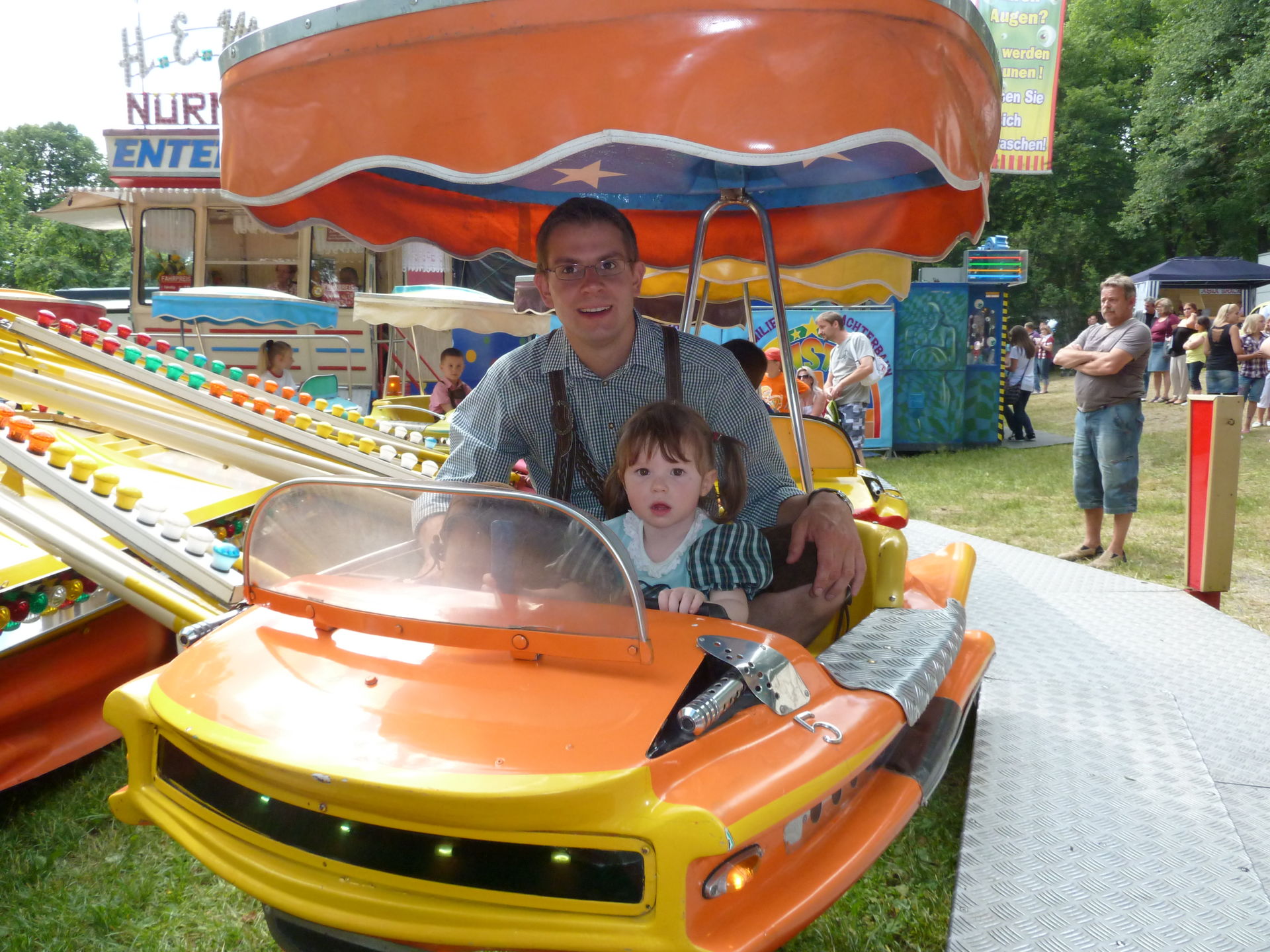 Das Fahrgeschäft steht schon jahrelang in Selb, fürs "Patenkind" kann man sich auch mal opfern S