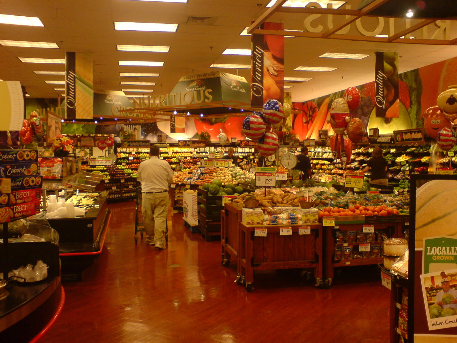 Nachdem wir in einer Econo Lodge eingecheckt hatten, beherzigten wir den Tipp von Dragster und Der Der Dongt aus ihren letzten Berichten und machten uns auf zu einem nahe gelegenen Farm Fresh-Supermarkt, wo es ja Kindertarif-Gutscheine für Busch Gardens geben soll. Leider hatten sie keine, aber sowohl die Dame am Kundendienst als auch der Junge bei den Selbstbedienungskassen meinte, sie würden im späteren Verlauf des Sommers vielleicht nochmals welche kriegen - diesen Tipp ab der Hochsaison also nicht ausser Acht lassen! Und ganz umsonst ist ein amerikanischer Supermarktbesuch auf einem Roadtrip wie diesem ja ohnehin nie, besonders wenn man da einen so schönen Gemüse- und Obstbereich vorfindet: