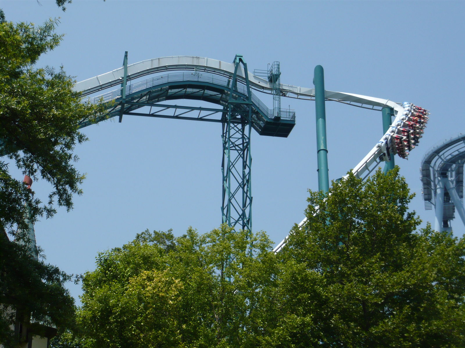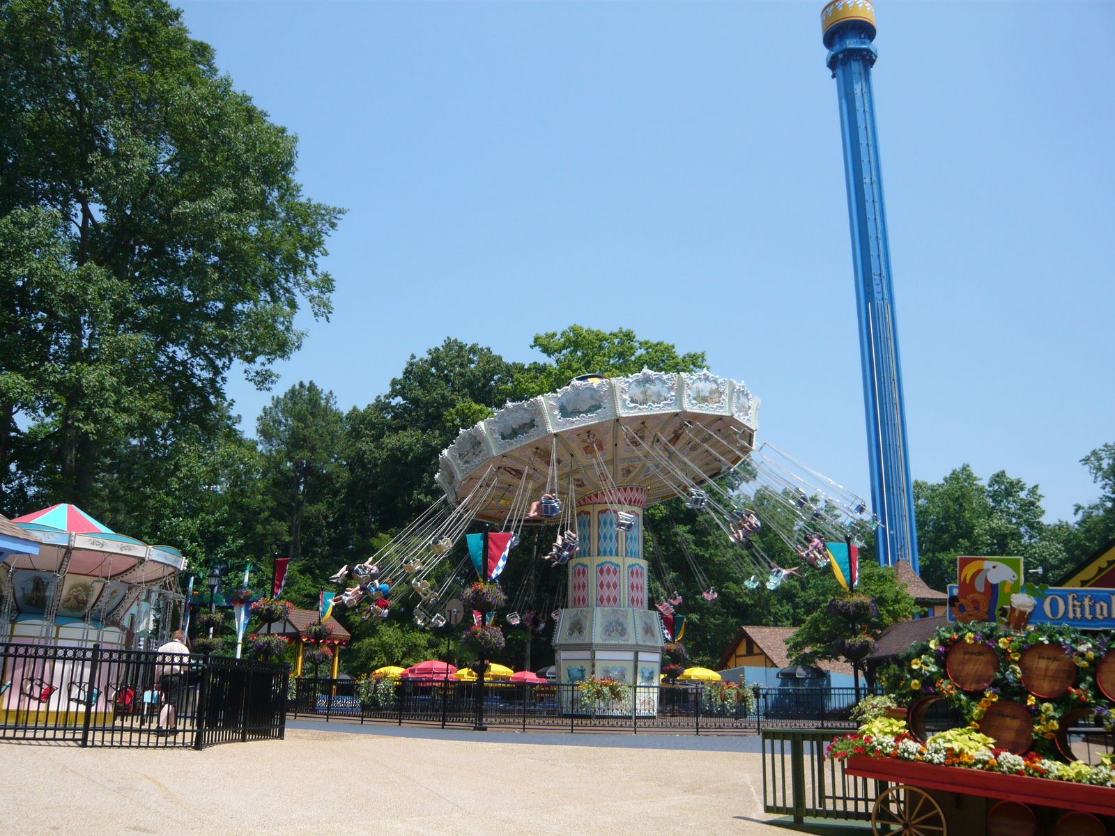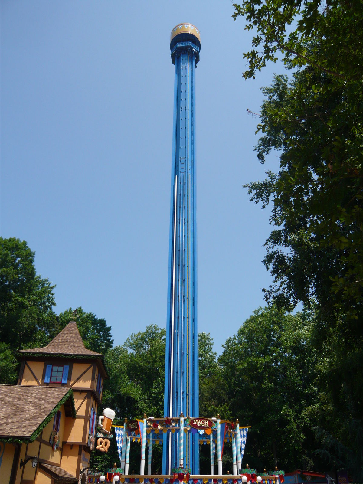 Der neue Mäch Tower war bei unserem Besuch noch geschlossen. Anscheinend hat man die Probleme damit bis heute noch nicht in den Griff bekommen. Aber dieser Verlust ist verkraftbar, wenn mit dem Drop Tower 70 Meilen weiter westlich ein höheres Modell eines anderen Herstellers und erst noch grösserer Kapazität steht.