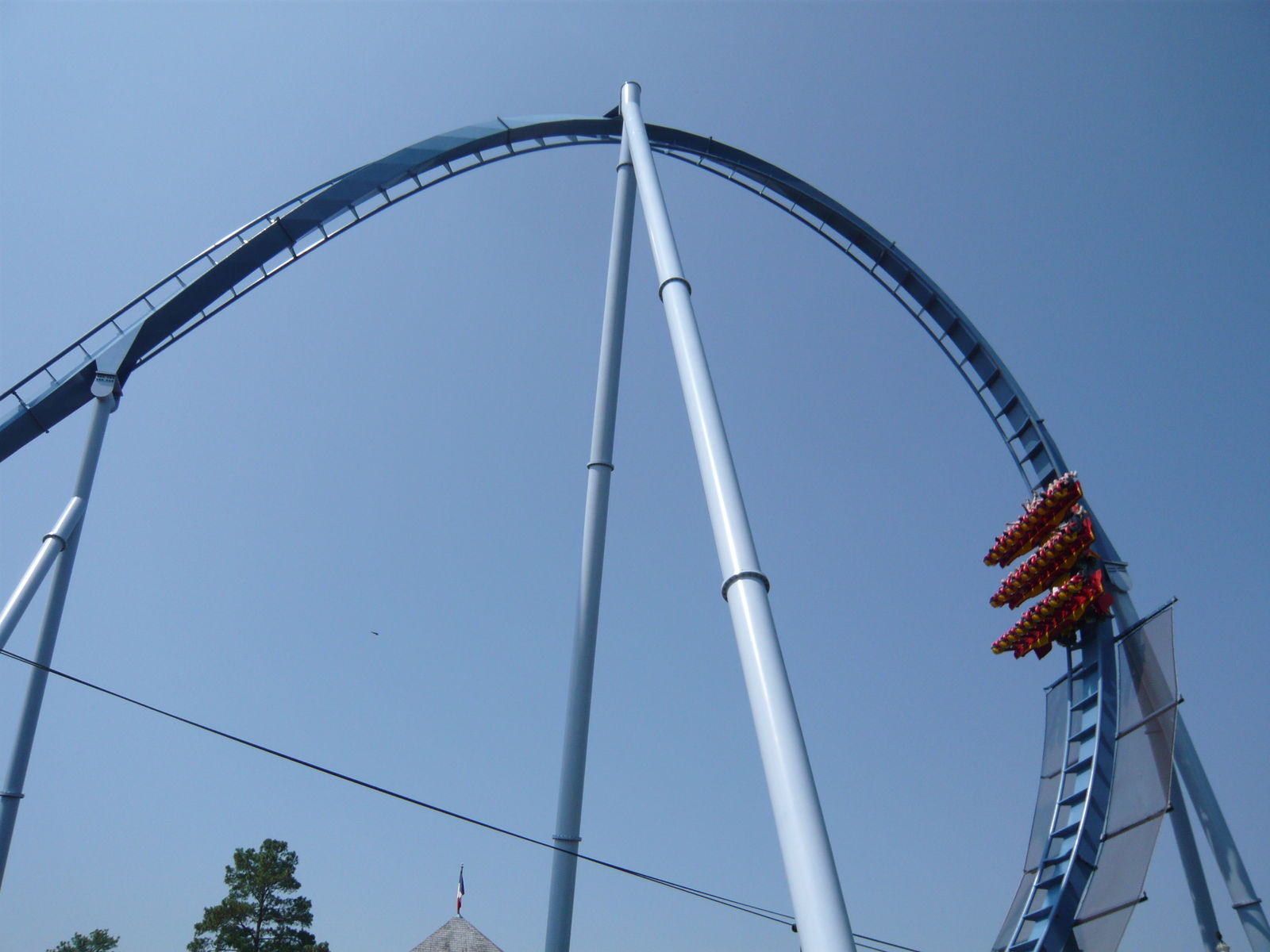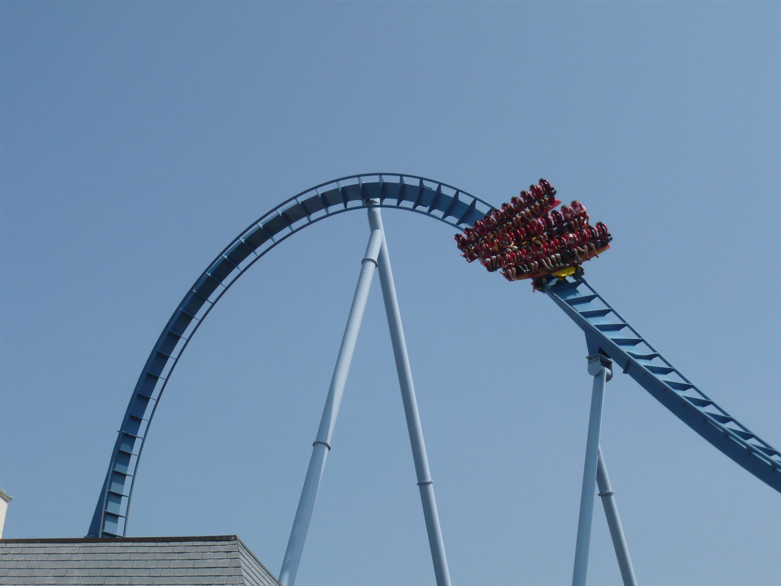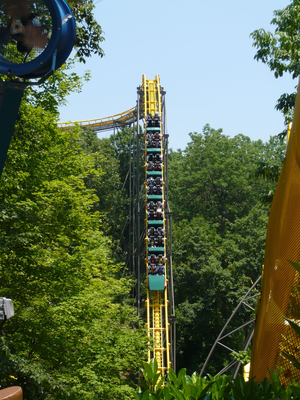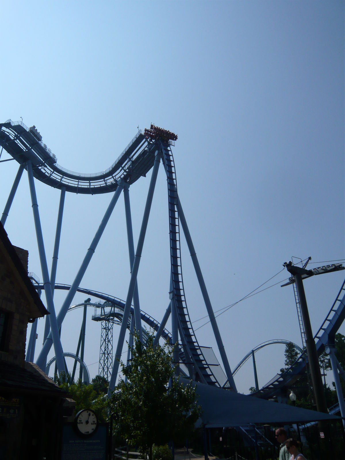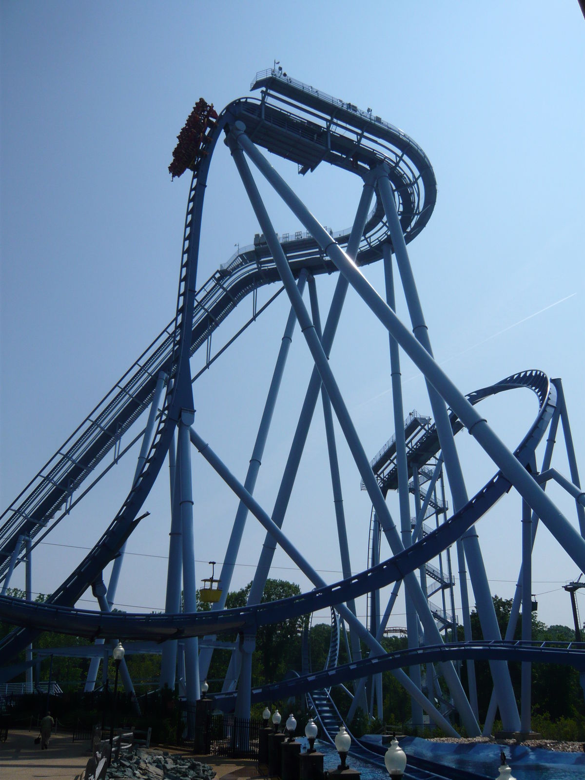 riesigen Fahrzeuge mit drei Zehnerreihen und der steile Lifthill machen selbst die Vorbereitungsphase des Abenteuers einfach einzigartig! Auch die Aussicht von ganz oben ist beeindruckend, allerdings vornehmlich in der Kurve vor dem ersten Sturz, wo man auf einen Arm der Meeresbucht südlich des Parks blicken kann. Beim Sturz selber fällt der Blick leider auf mehrere hässliche Hallendächer - wenn man denn geradeaus schauen will, nach unten ists ja eh viel spannender!
