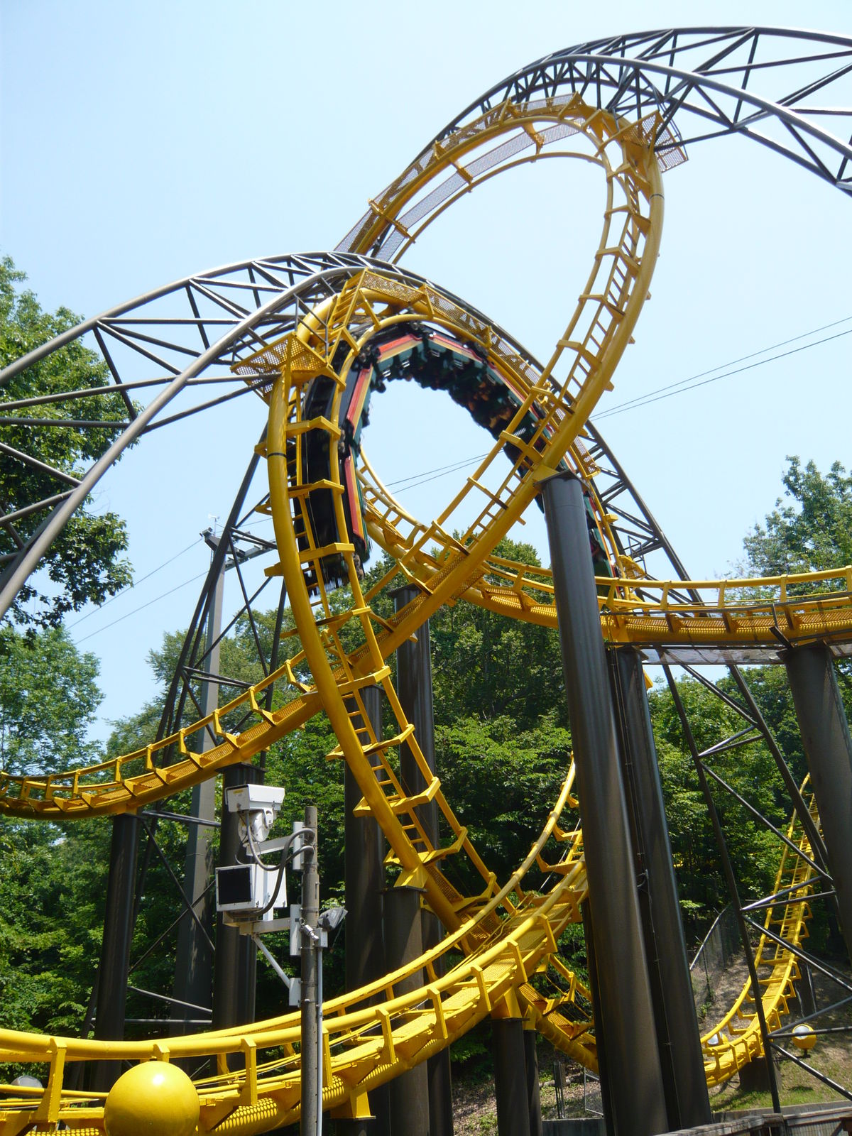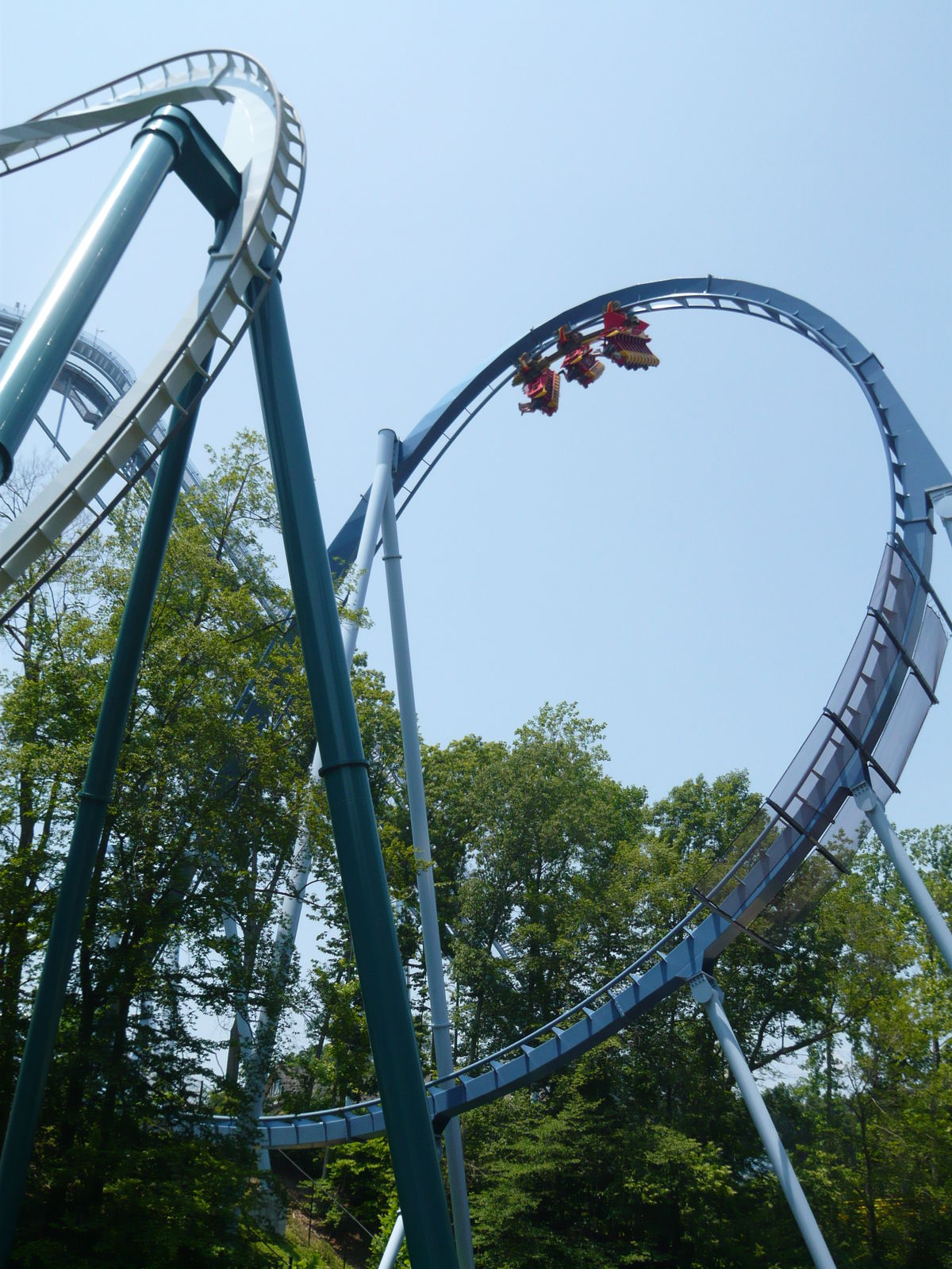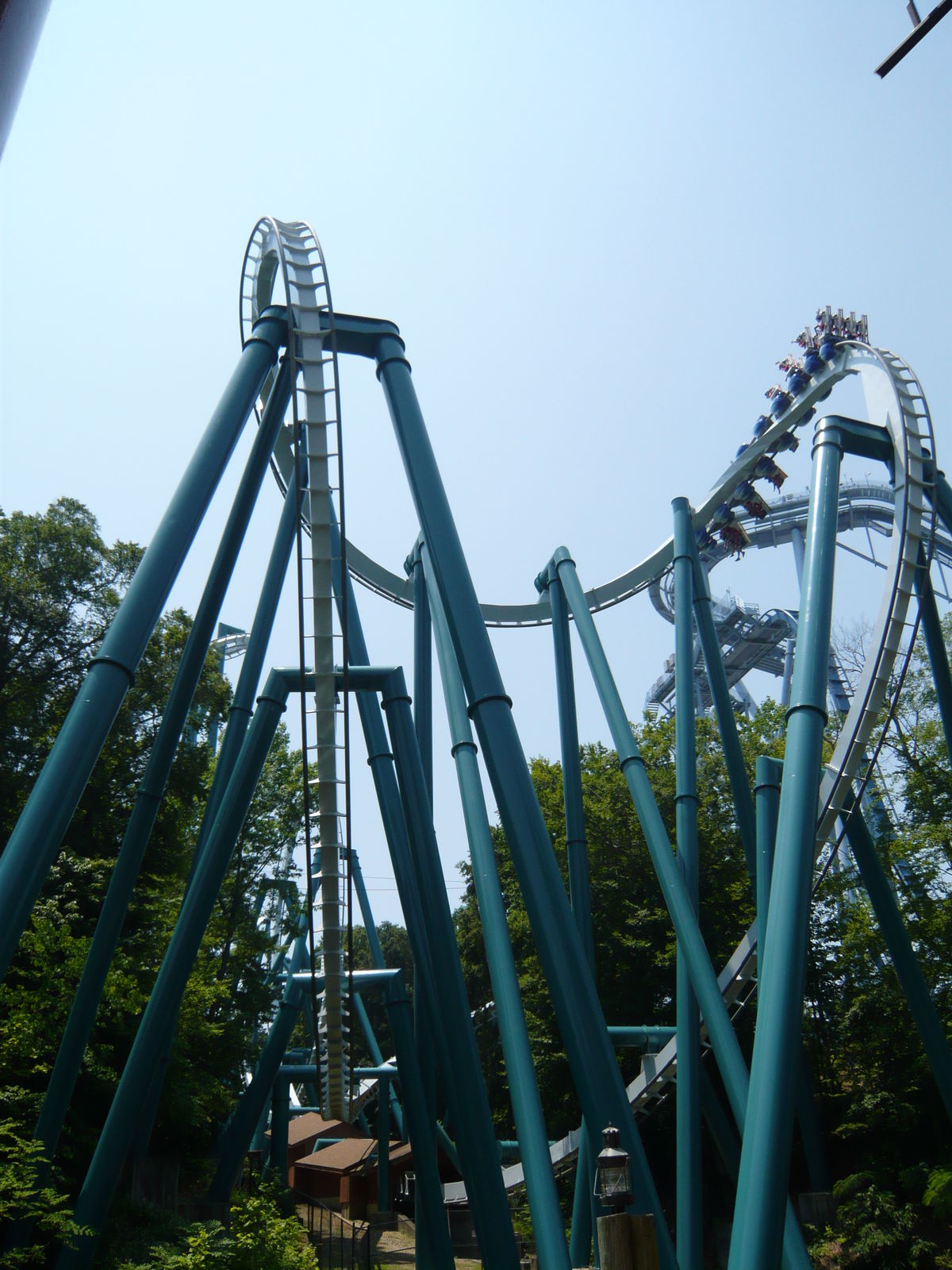 B&M Inverter immer sehr zugesagt, und dieser hier hat erst noch Ausmasse, dass man schon fast wieder von einem Hyper-Looper sprechen kann. Am höchsten Punkt schwebt man nämlich knappe 60 Meter über dem Boden, 52 davon donnert man davon wieder runter, bevor man die sechs riesigen Inversionen absolviert. Ich war überzeugt davon, dass dies mein neuer Lieblings-