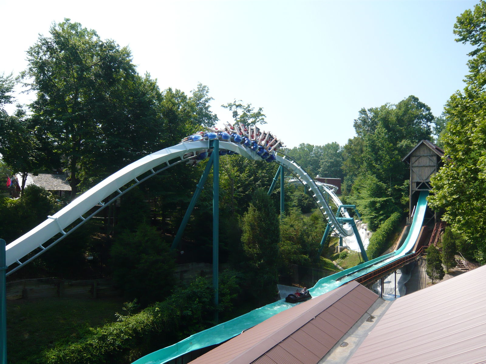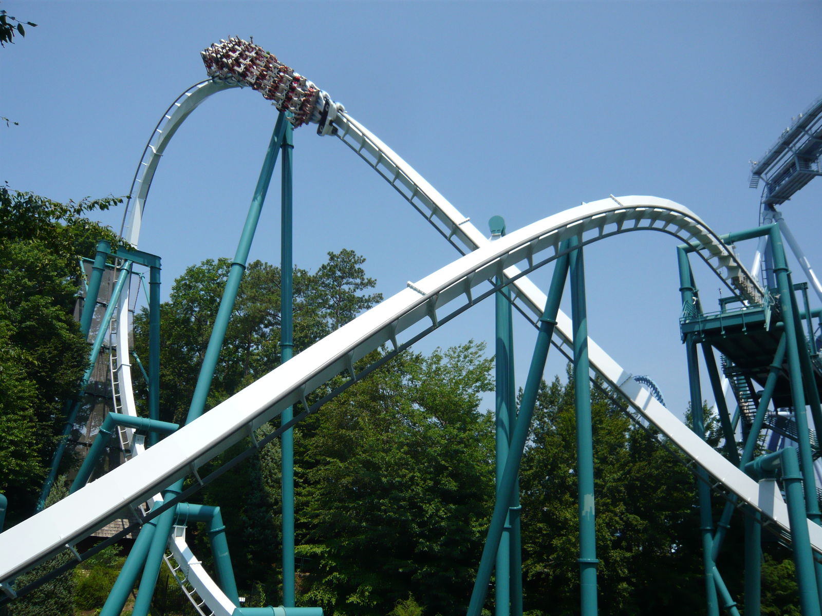 Helix bei SheiKra. Ausserdem interessant: das Spritzwasser beim Splashdown trifft immer auf die Schienen, die der Zug gleich danach überquert - diese Stelle muss bestimmt in jeder Off-Season gut gepflegt werden!