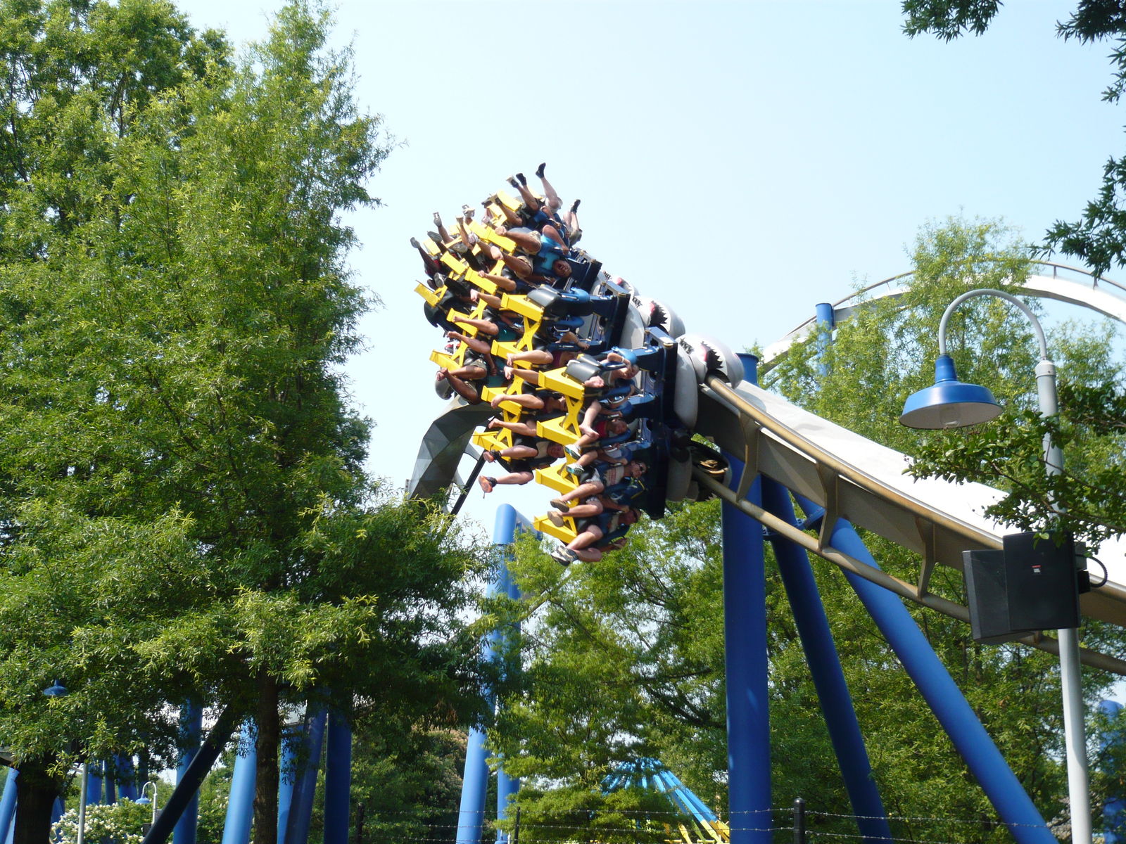 Aus etwa 34 Metern Höhe holt man Schwung, dann werden mit unglaublicher Smoothness in rasantem Tempo sechs Inversionen von stattlichem Ausmass abgespult: